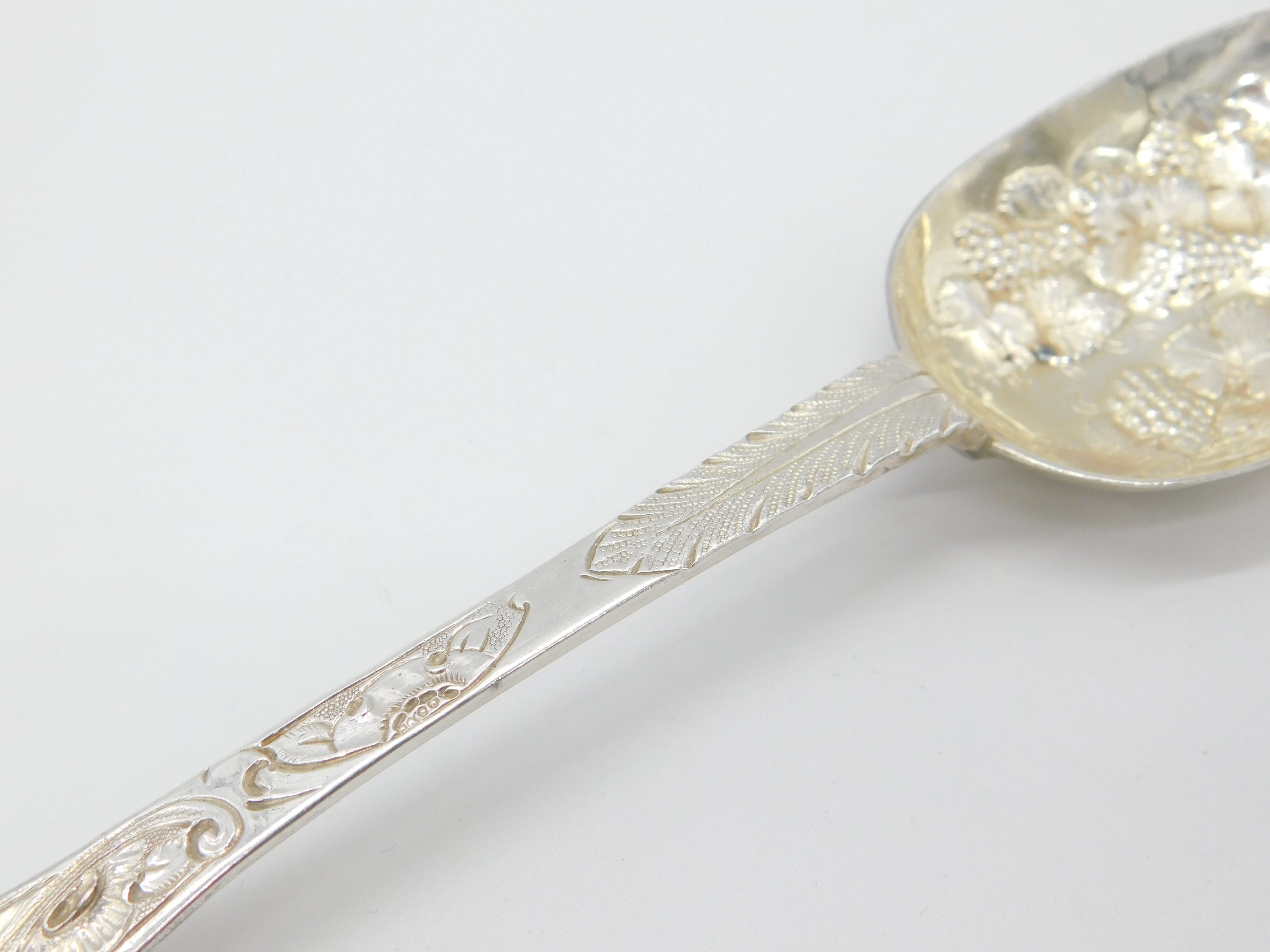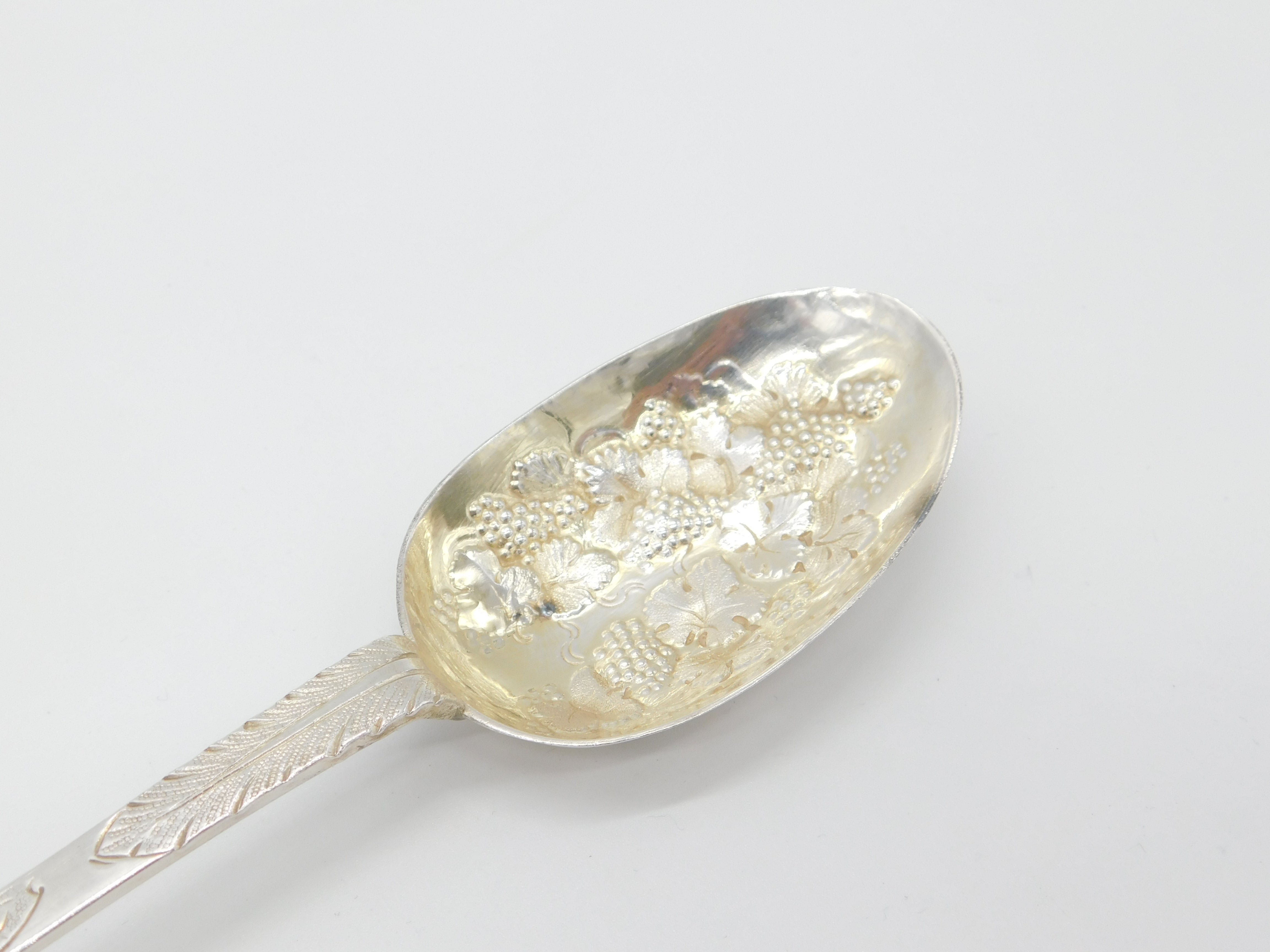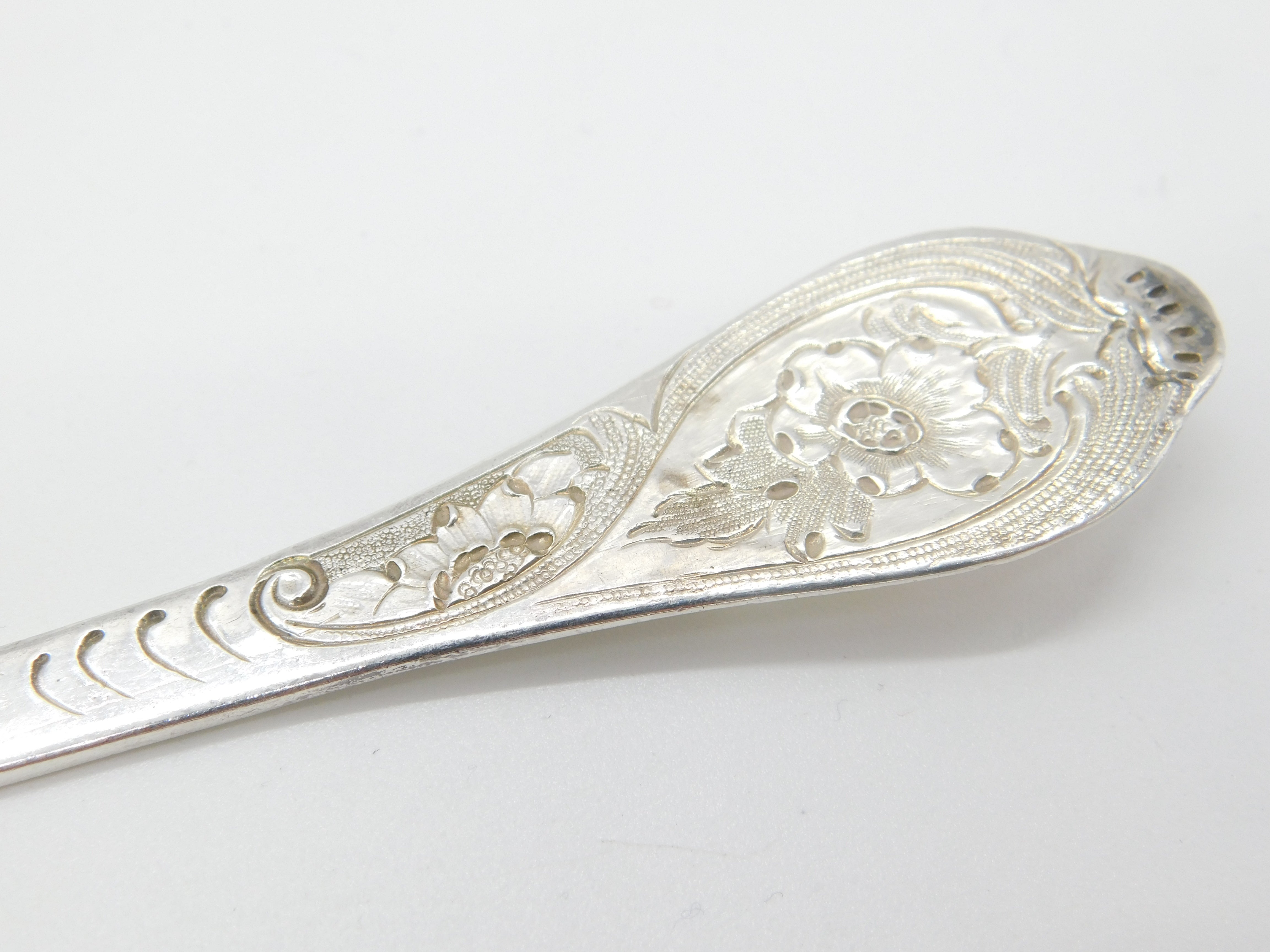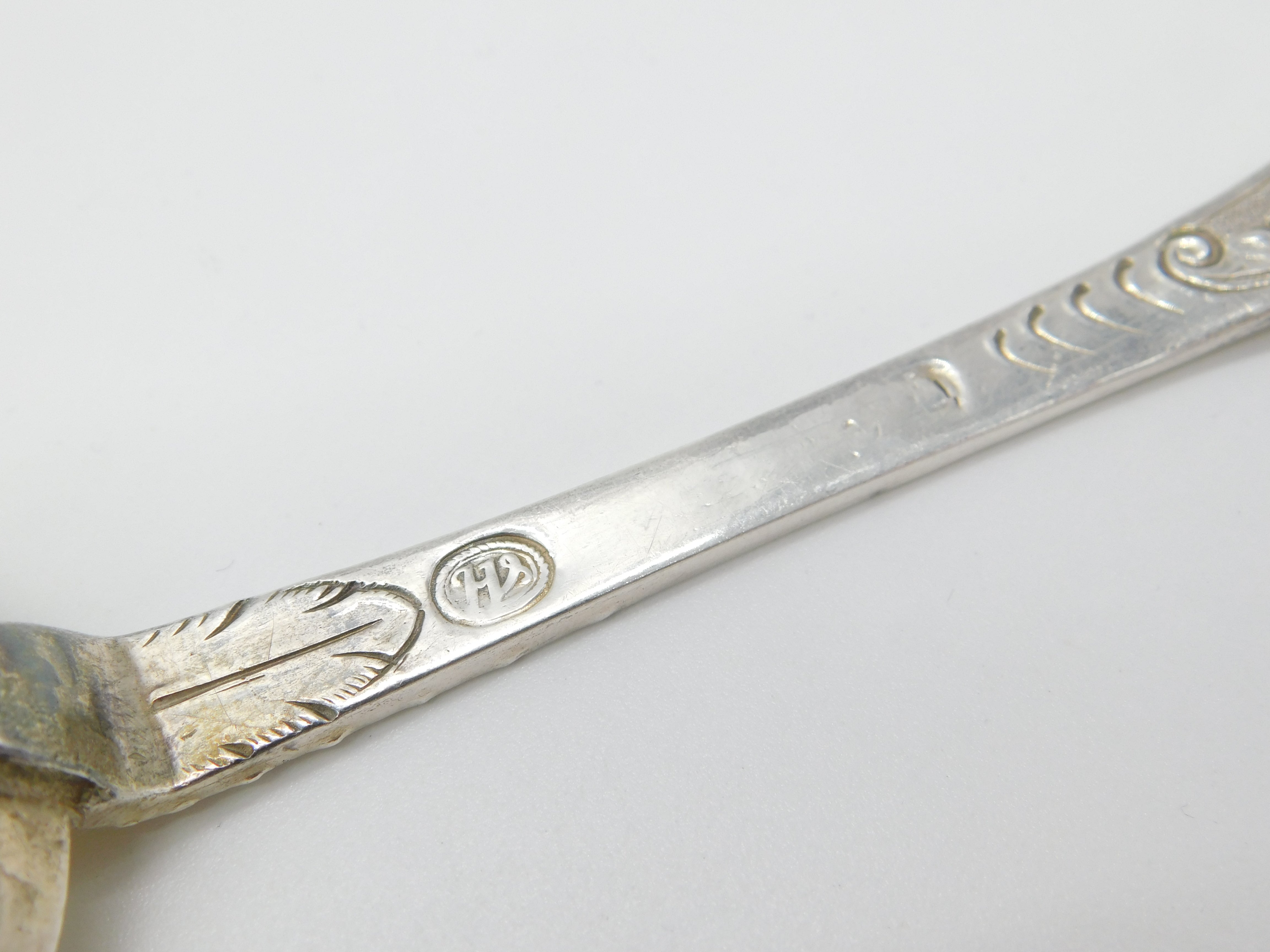 Details: A fantastic and wonderfully designed early Britannia silver Queen Anne period dog nose spoon with floral patterns throughout hallmarked clearly with the makers mark of Richard Hutchinson of Colchester c1708 although the rest of the mark is rubbed. The Hutchinsons were an eminent East Anglia silversmithing family of the late 17th and early 18th centuries. Very minor bend to the bowl. This is a wonderful item that would make a perfect gift or addition to any collection. The BOX pictured is for PRESENTATION ONLY and is NOT included in the listings but used to frame the pictures unless specifically stated otherwise.
