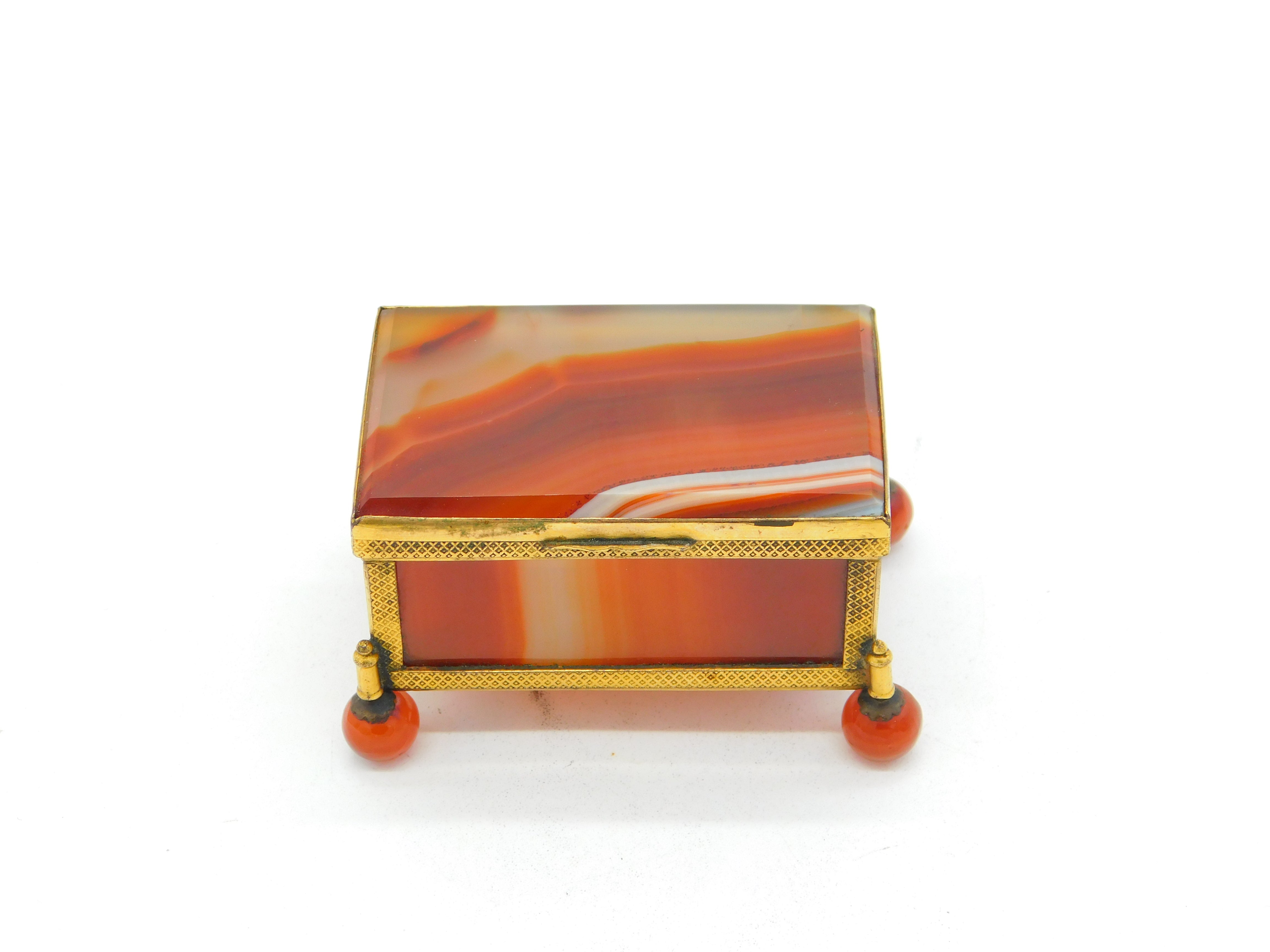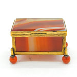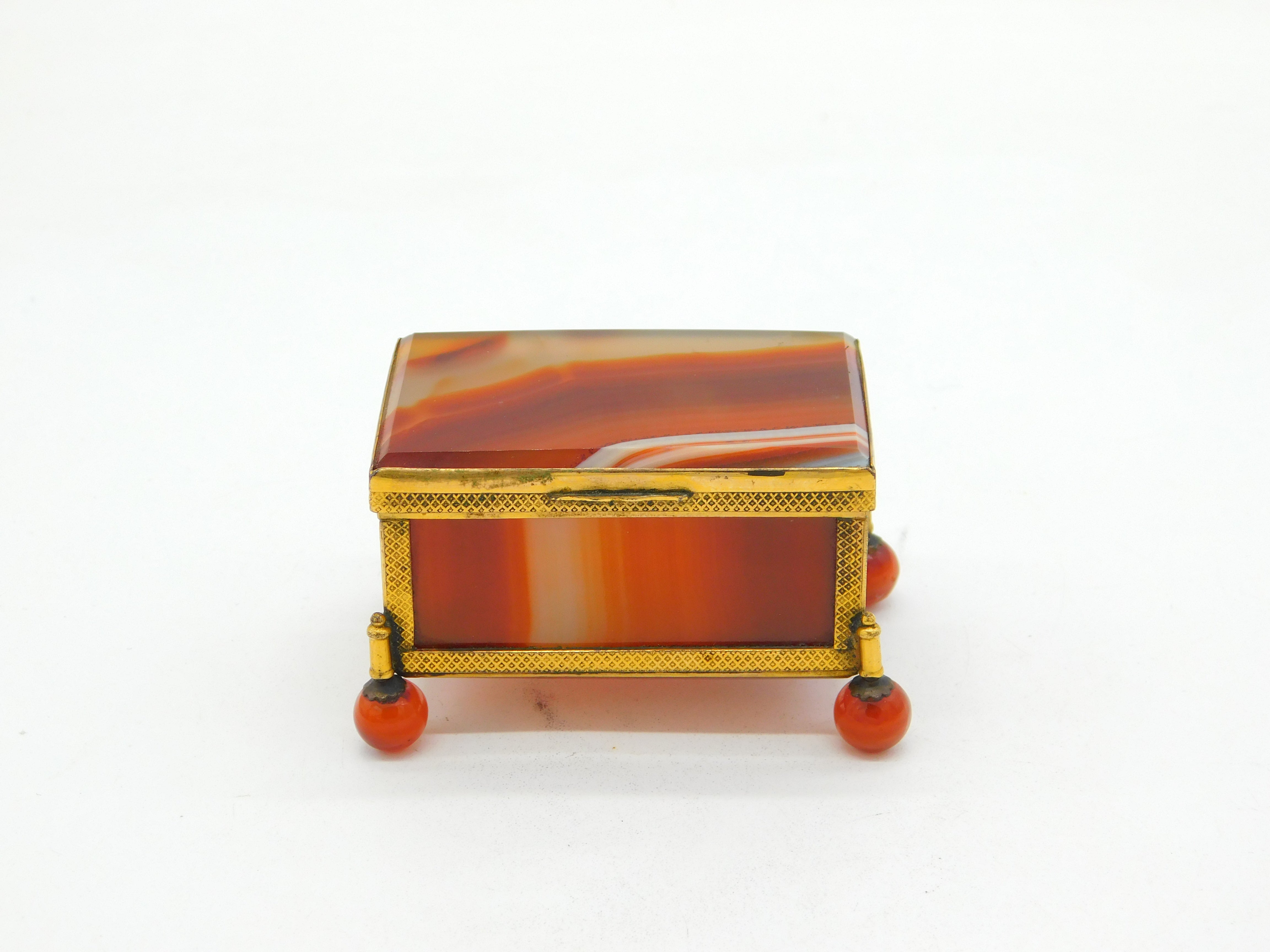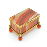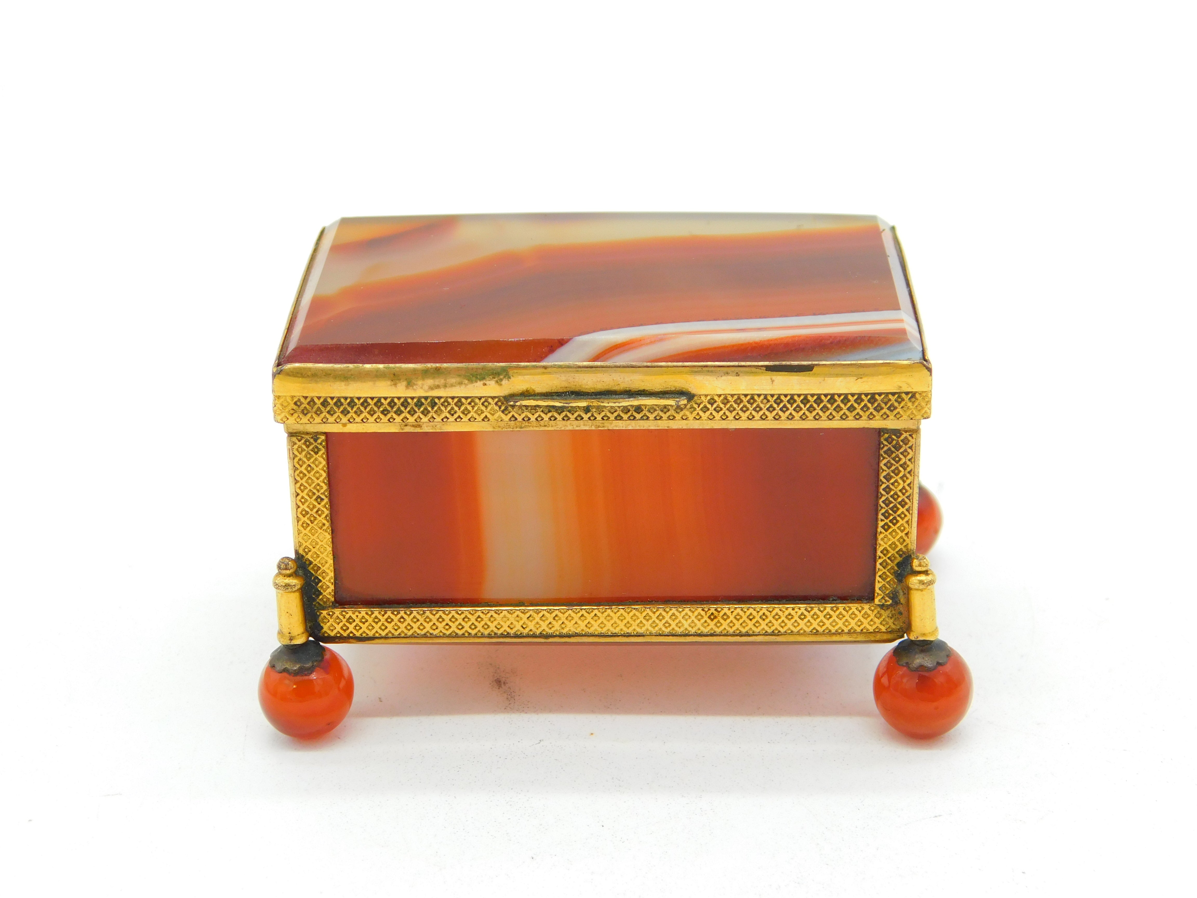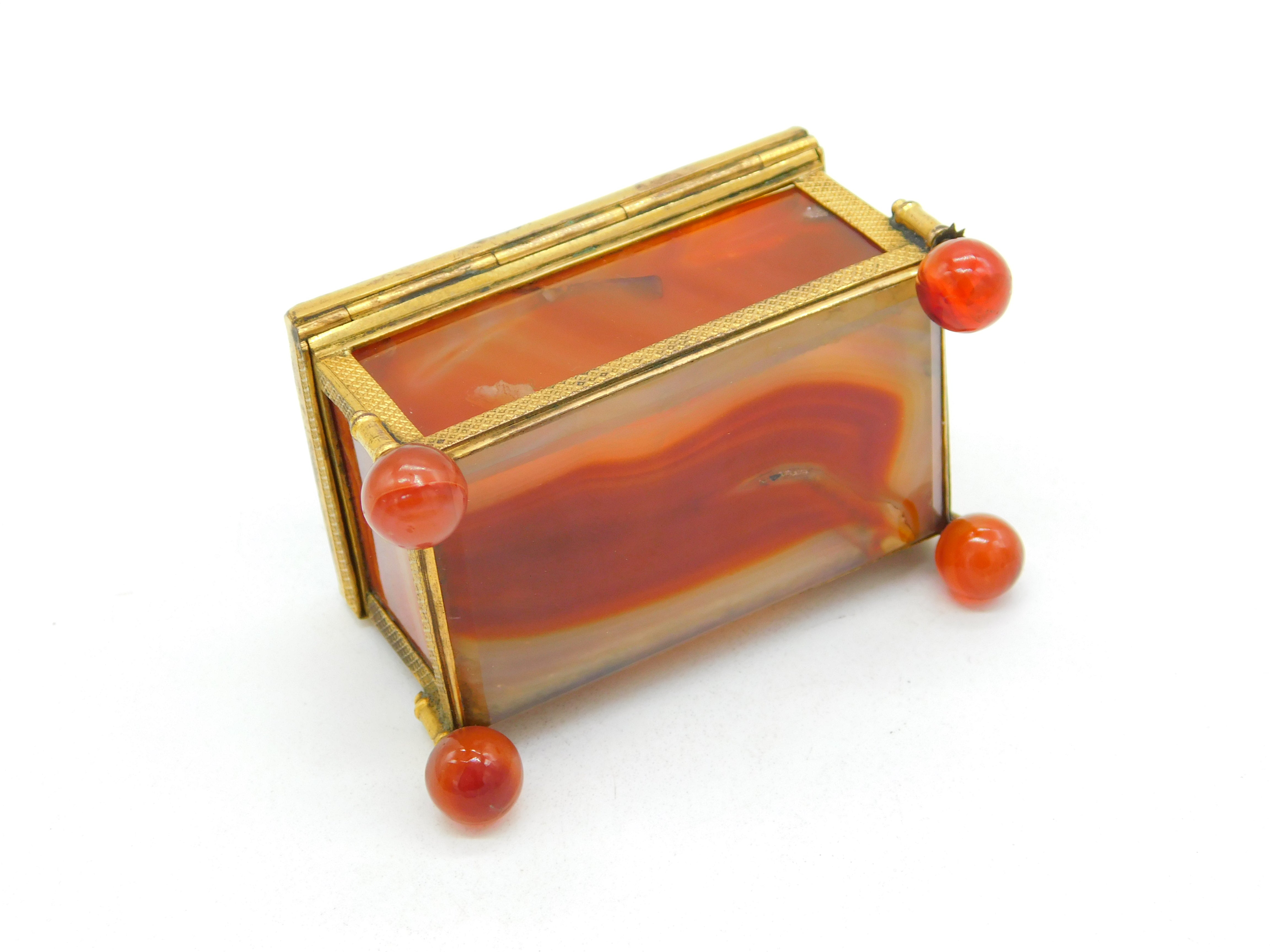 Details: A fantastic and wonderfully designed antique georgian regency period gilt metal mounted red banded agate jewellery box on charming balled agate feet c1830, finished with superior quality and detail, no obvious cracks or damage. This is a wonderful item that would make a perfect gift or addition to any collection. We are more than happy to provide XRF reports for items upon request.