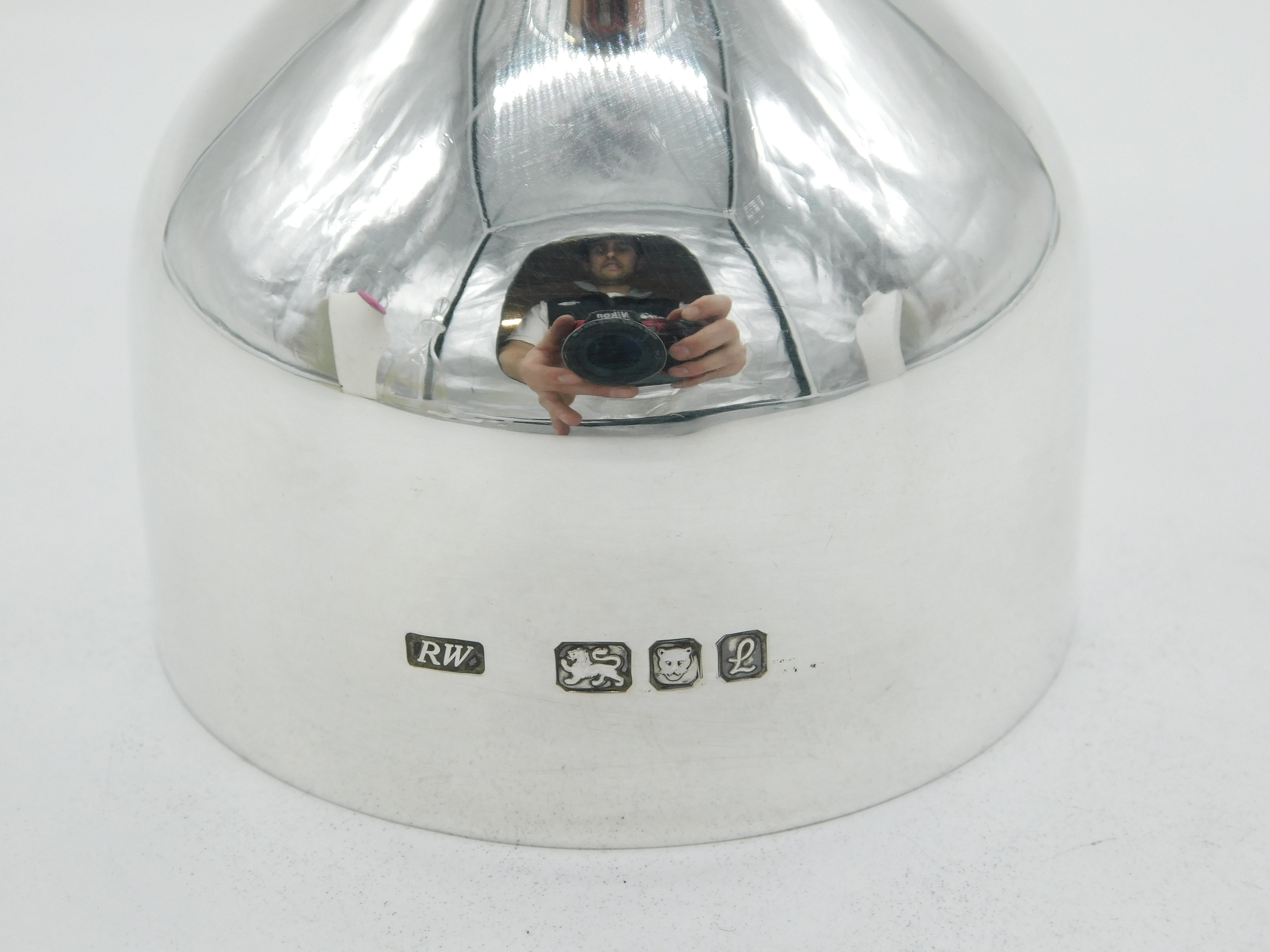 Details: A fantastic and wonderfully designed vintage modernist sterling silver candlestick or tealight holder with superior quality and detail hallmarked London 1985 by important maker Robert Welch. This is a wonderful item that would make a perfect gift or addition to any collection. We are more than happy to provide XRF reports for items upon request.