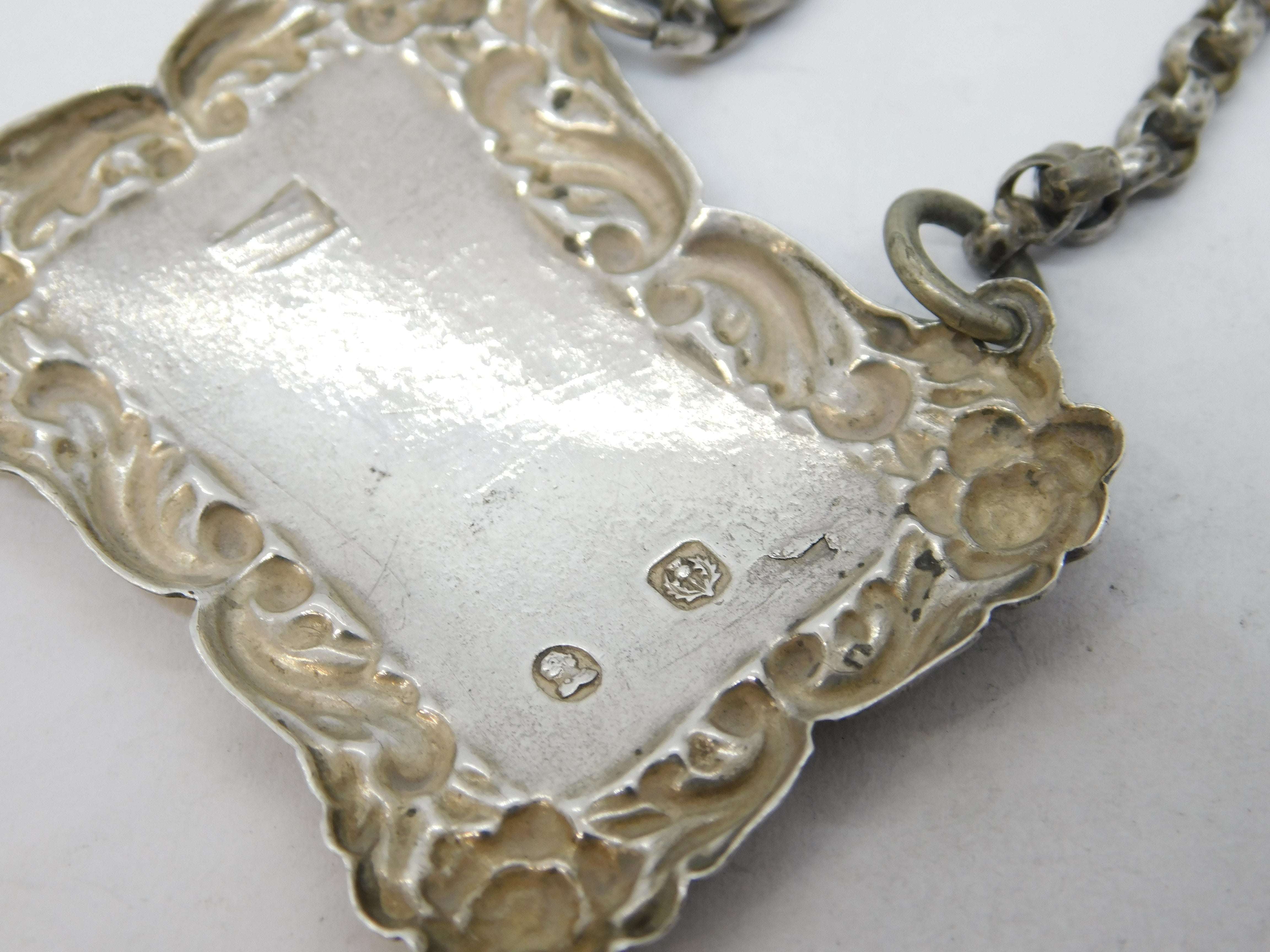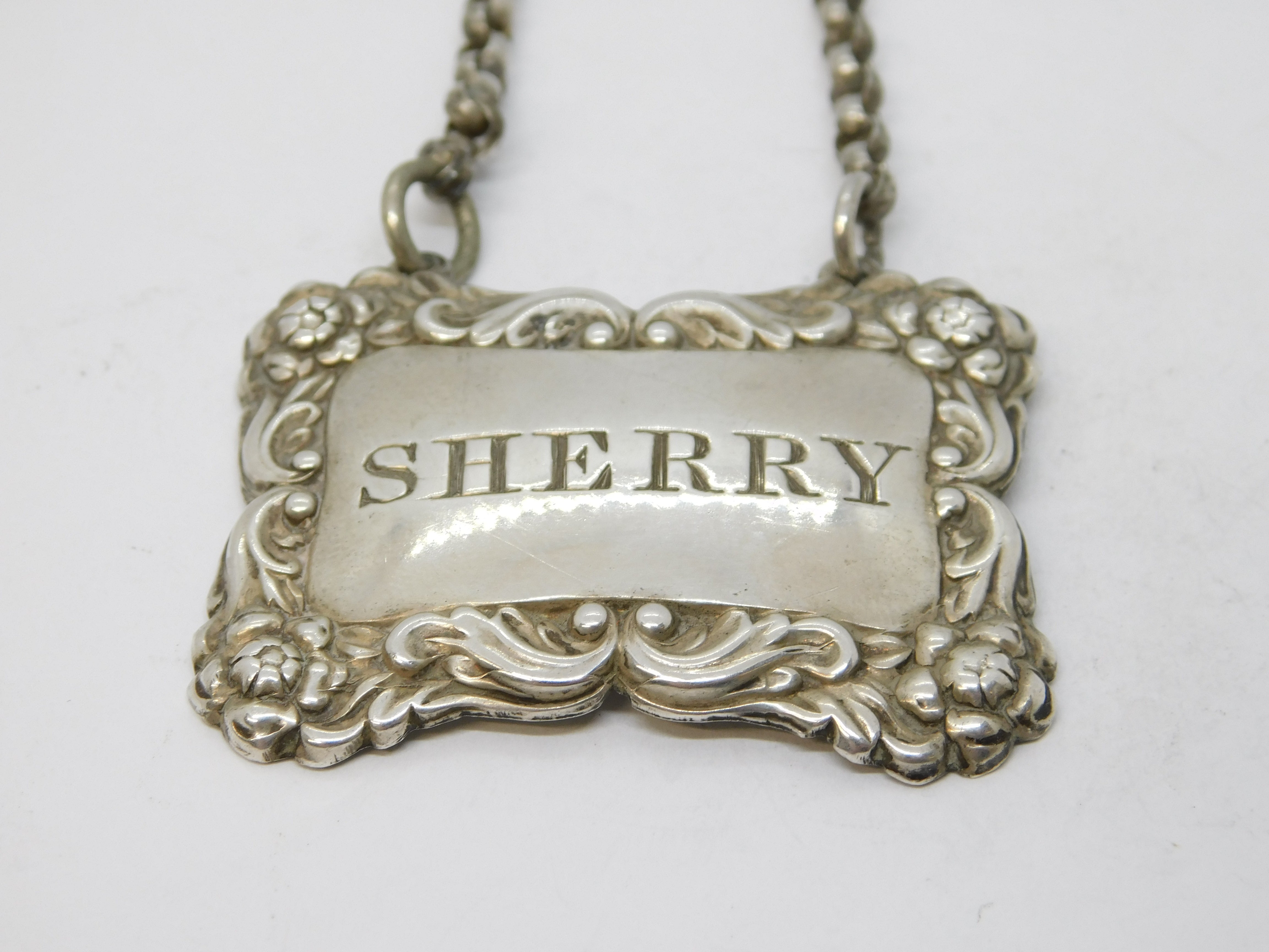 Details: A fantastic and wonderfully designed antique georgian Scottish provincial sterling silver floral sherry decanter label with lovely detailing nicely hallmarked to the reverse c1800. This is a wonderful item that would make a perfect gift or addition to any collection. We are more than happy to provide XRF reports for items upon request.