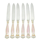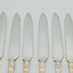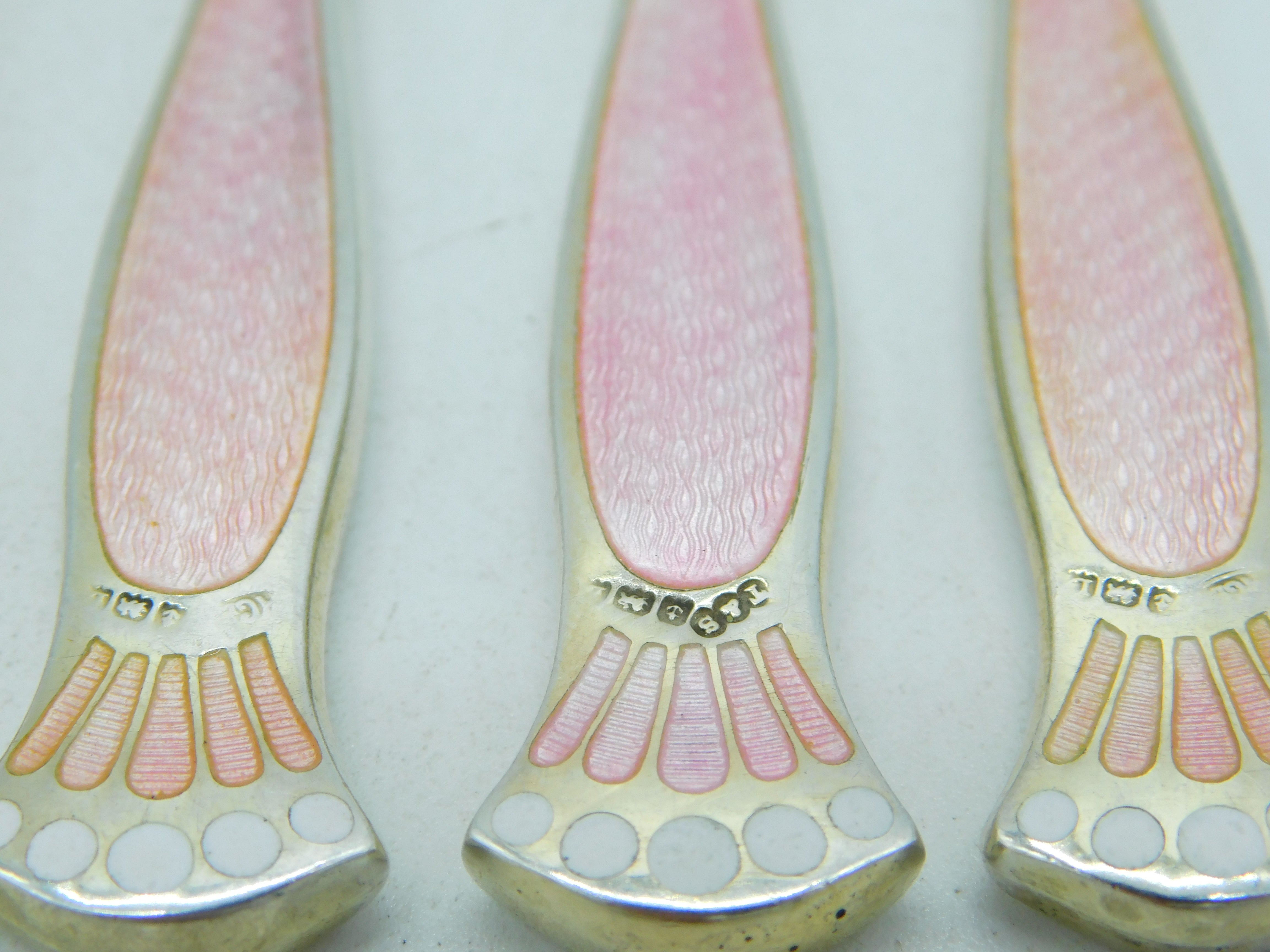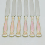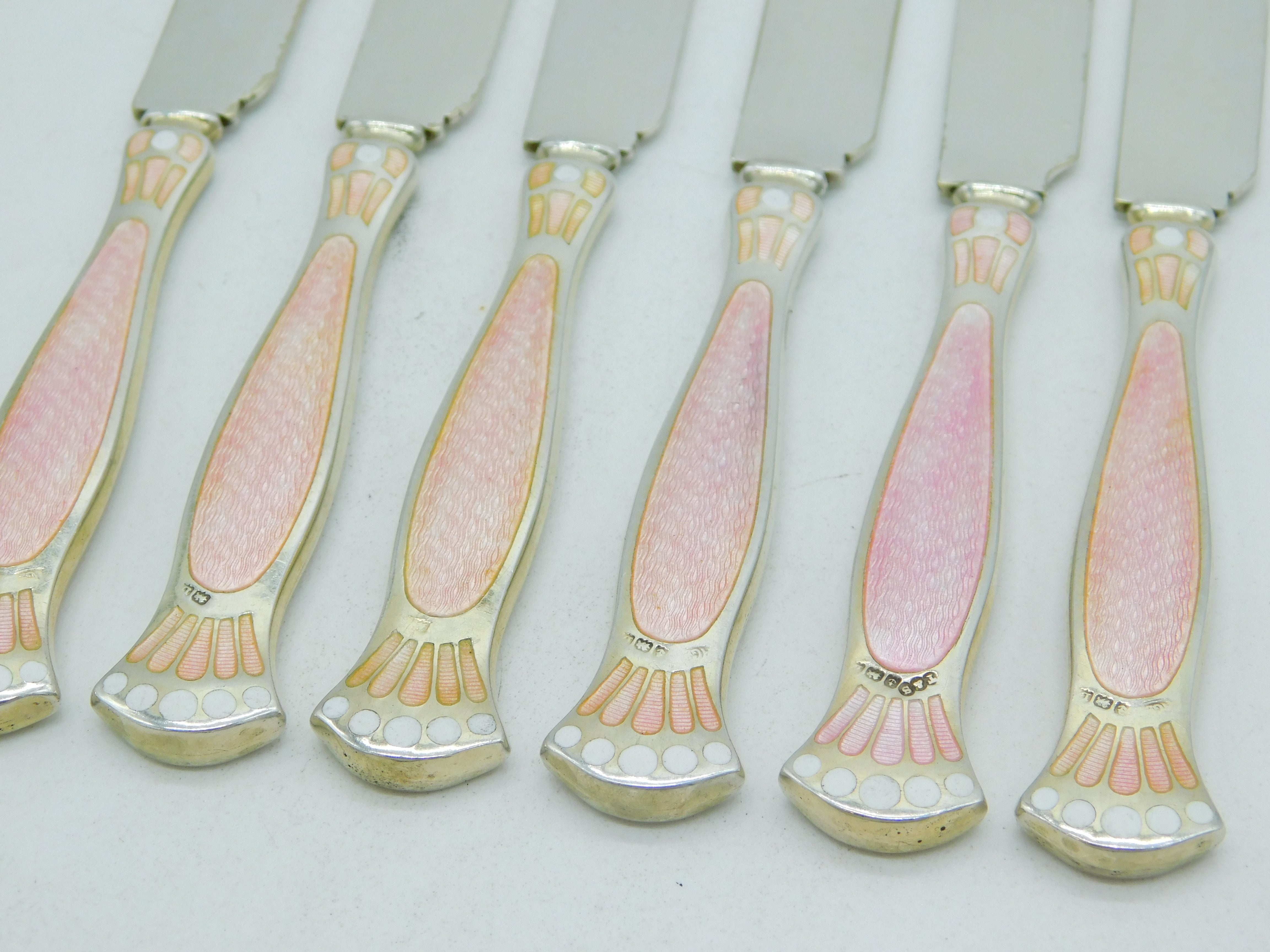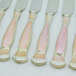 Set of Sterling Silver Pink Enamel Ladies Cake Knives Antique 1935 Birmingham Art Deco