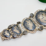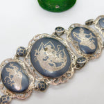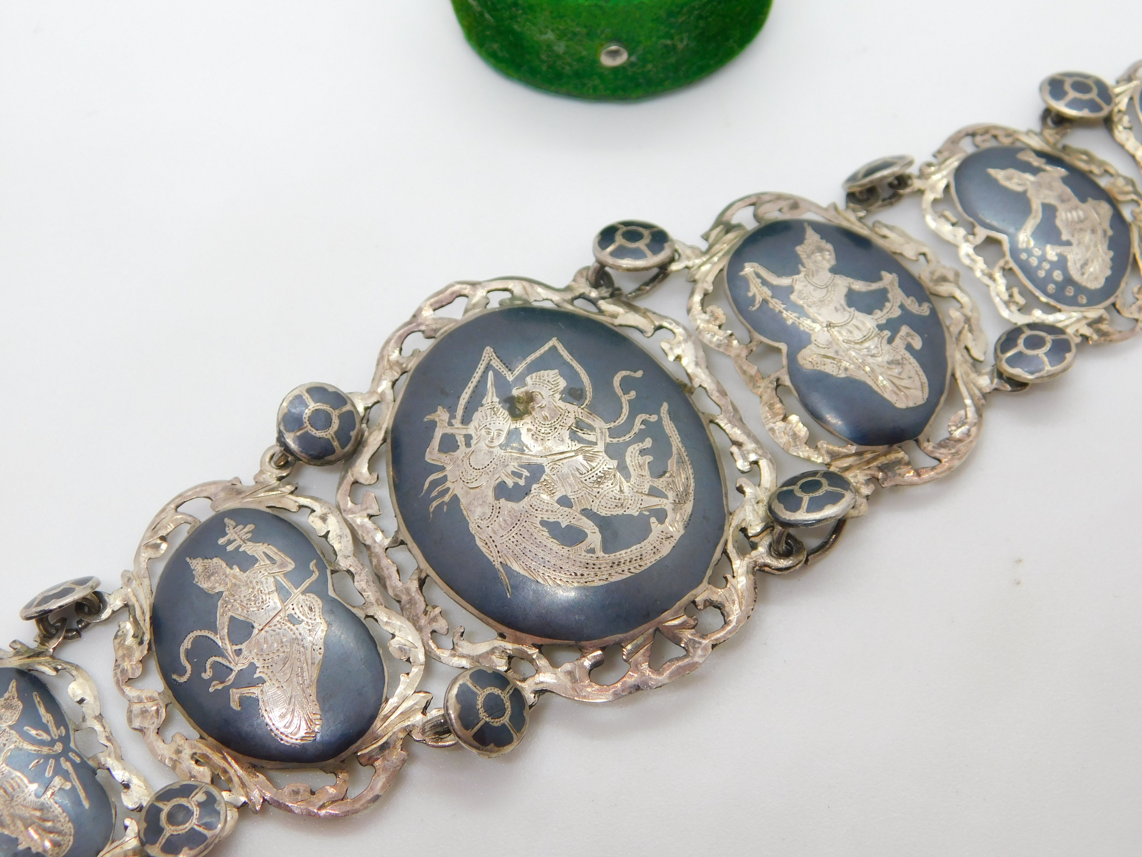 Siam Sterling Silver Niello Enamel Graduating Godess Bracelet Antique c1920