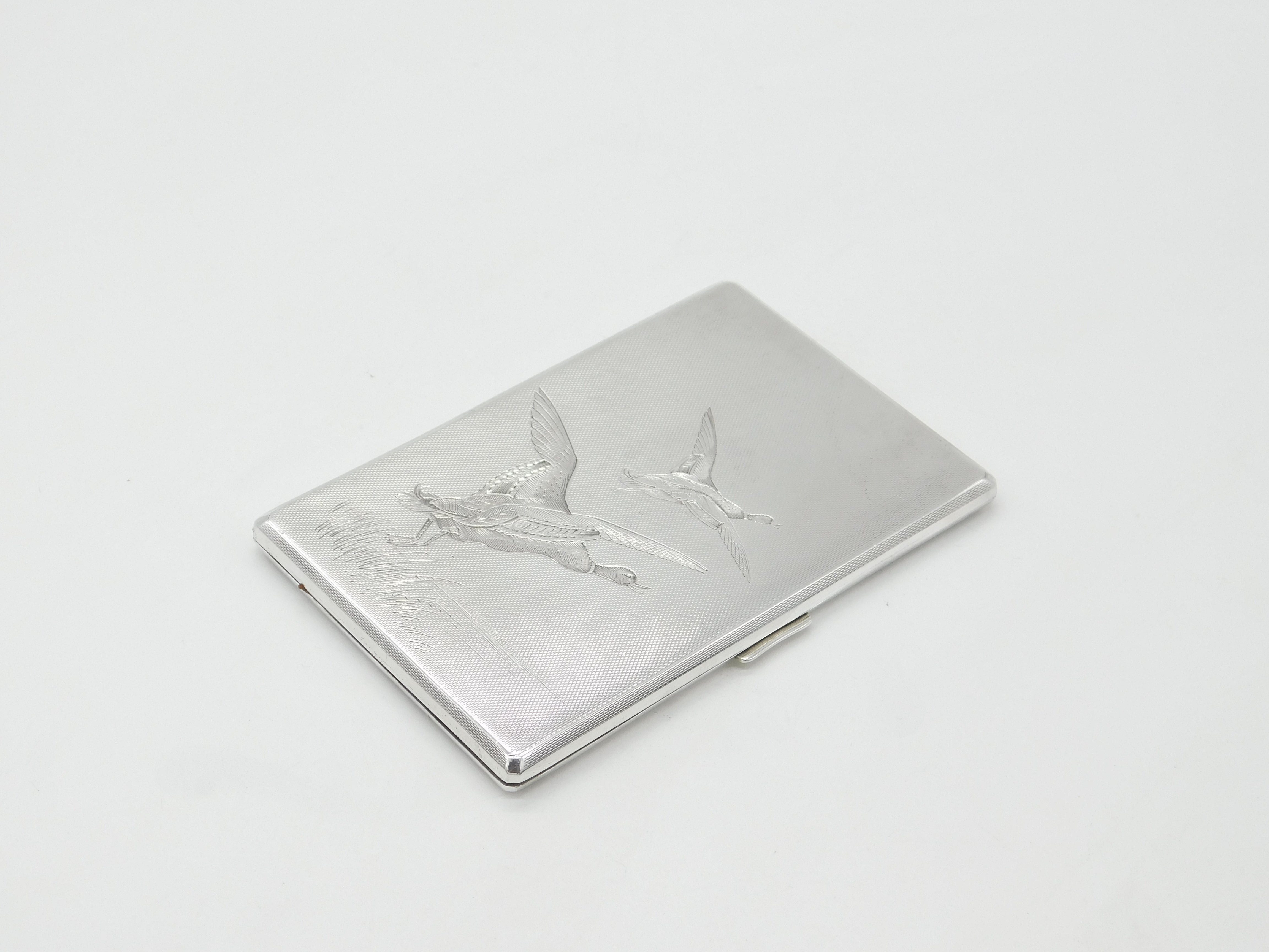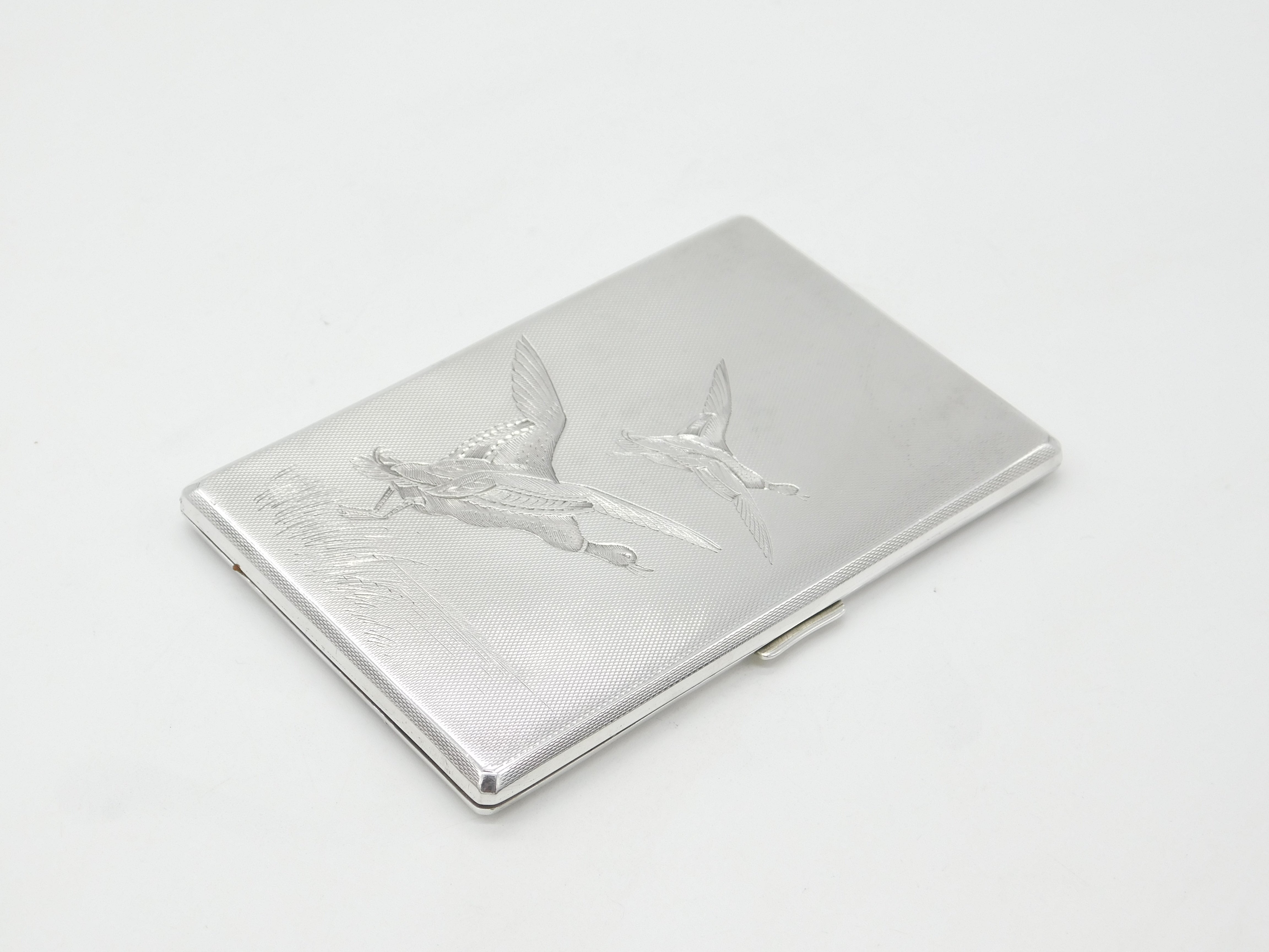 Sterling Silver Aesthetic Flying Duck Pattern Cigarette Case 1938 Birmingham