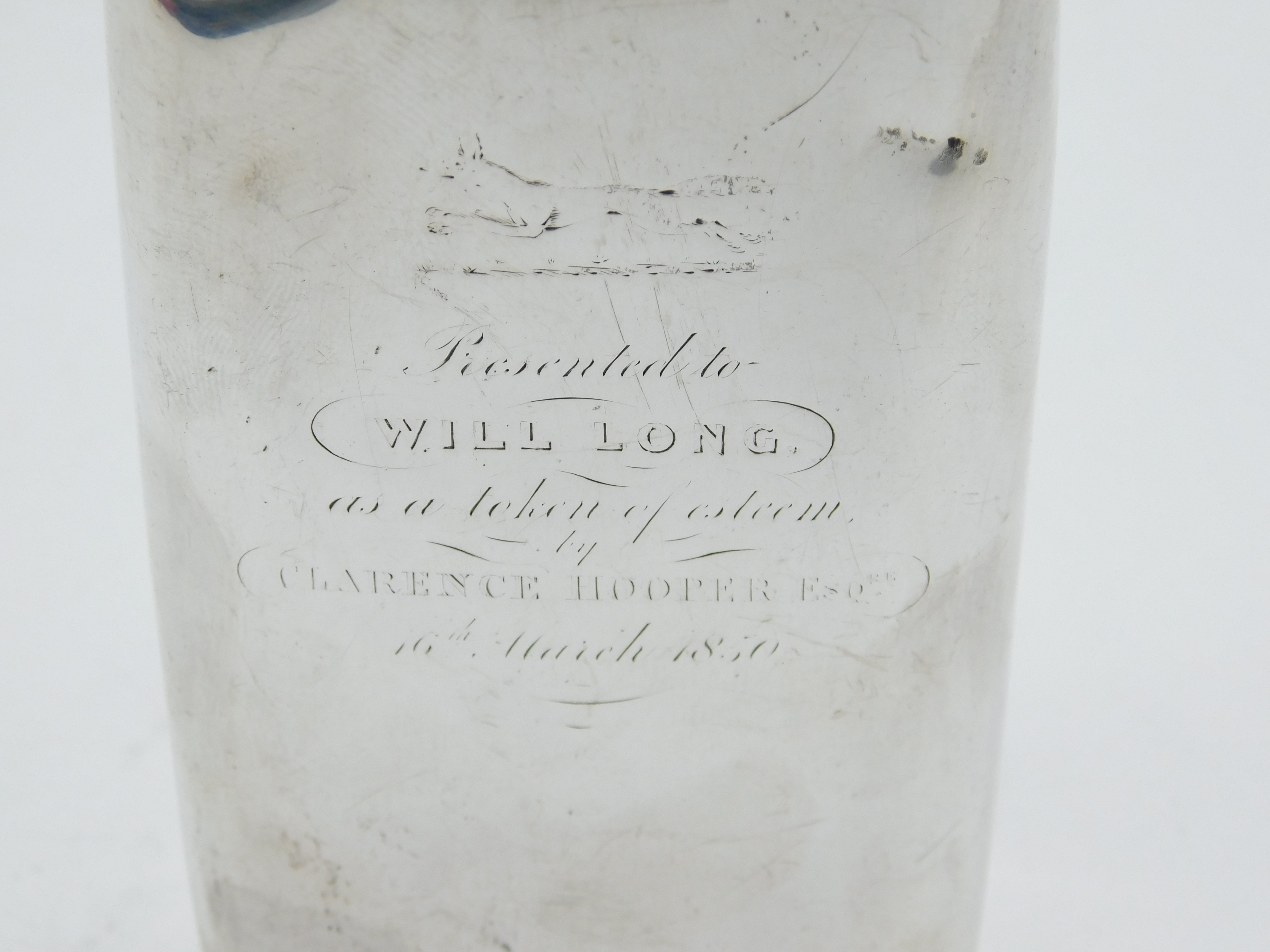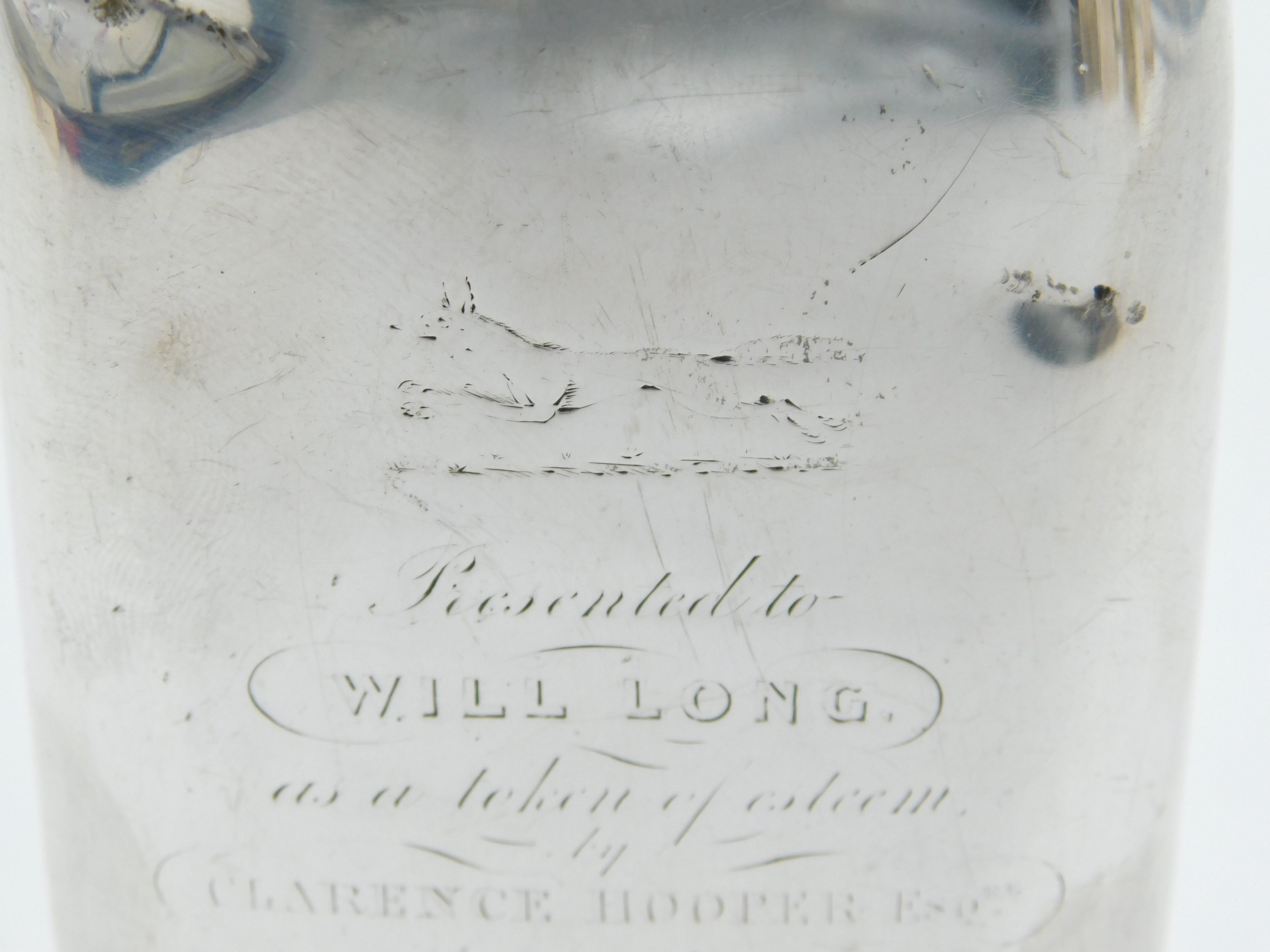 Sterling Silver Beaufort Hunt Hip Flask Belonging to Mr Will Long Antique c1850
