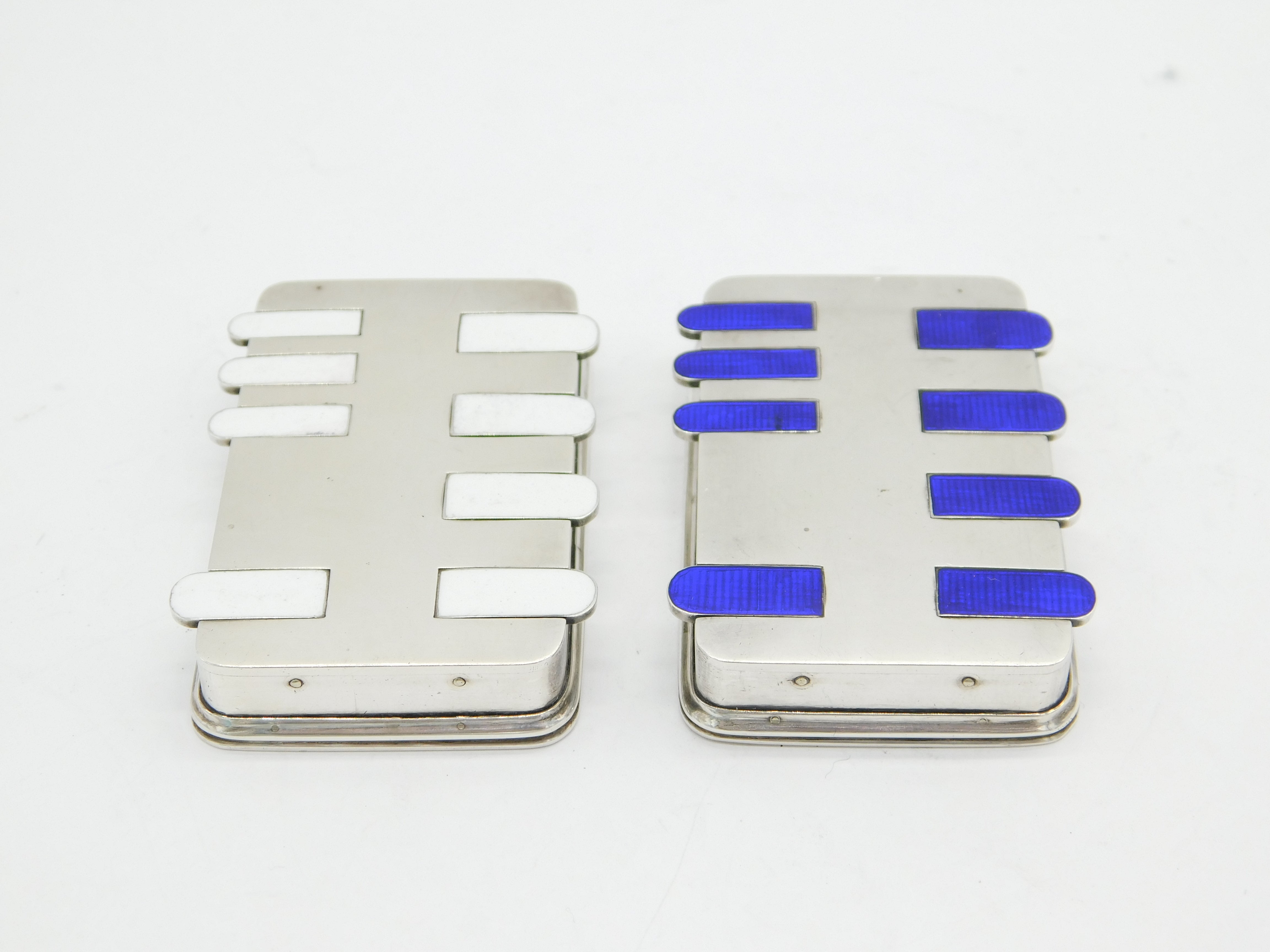 Details: A fantastic and wonderfully designed antique Victorian sterling silver pair of superior quality whist playing card markers with blue & white enamel detailing, both hallmarked to the base London c1880 by John Phillips. A scarce pair of playing card items ideal for collectors and card players alike. This is a wonderful item that would make a perfect gift or addition to any collection. We are more than happy to provide XRF reports for items upon request.