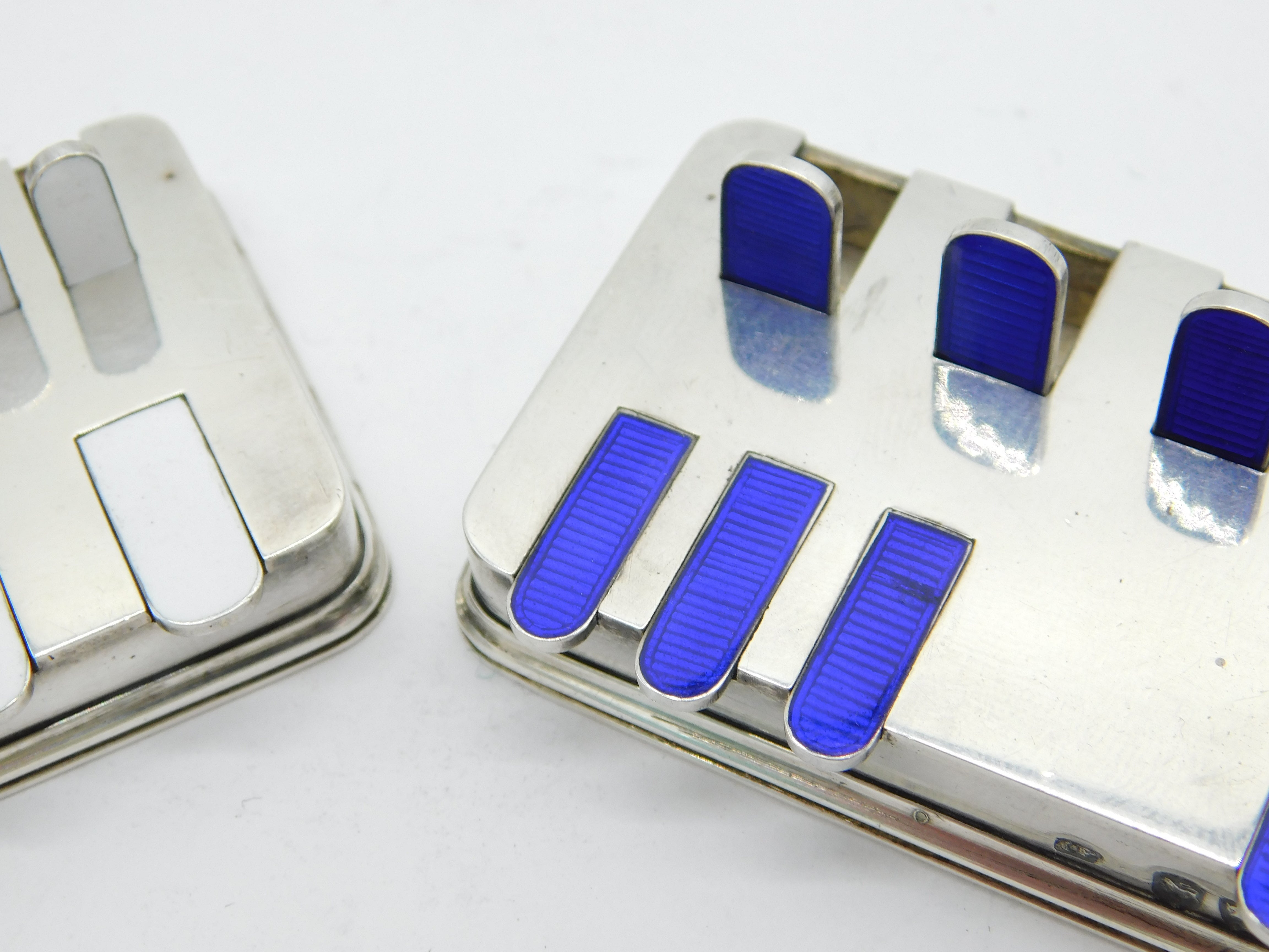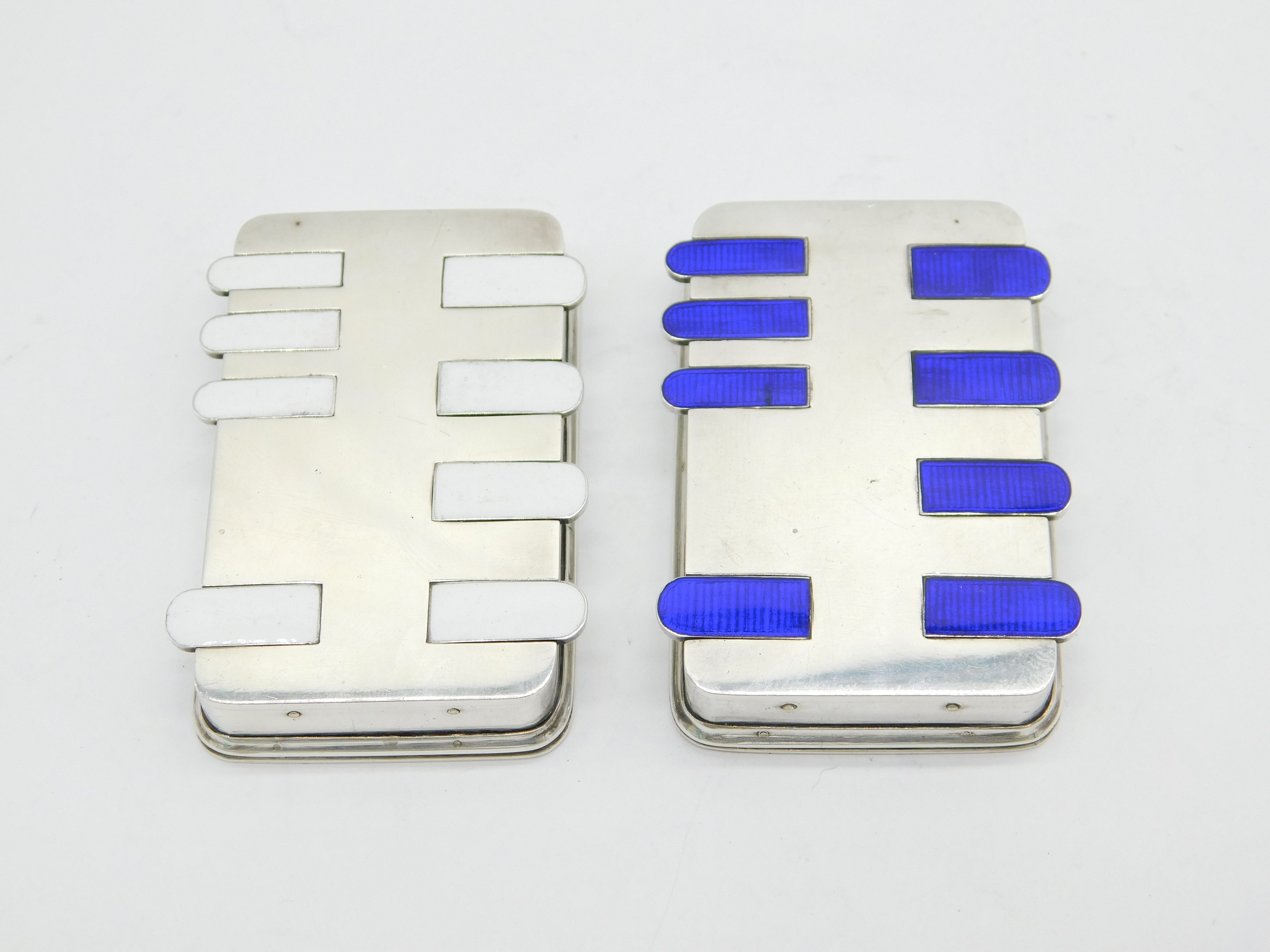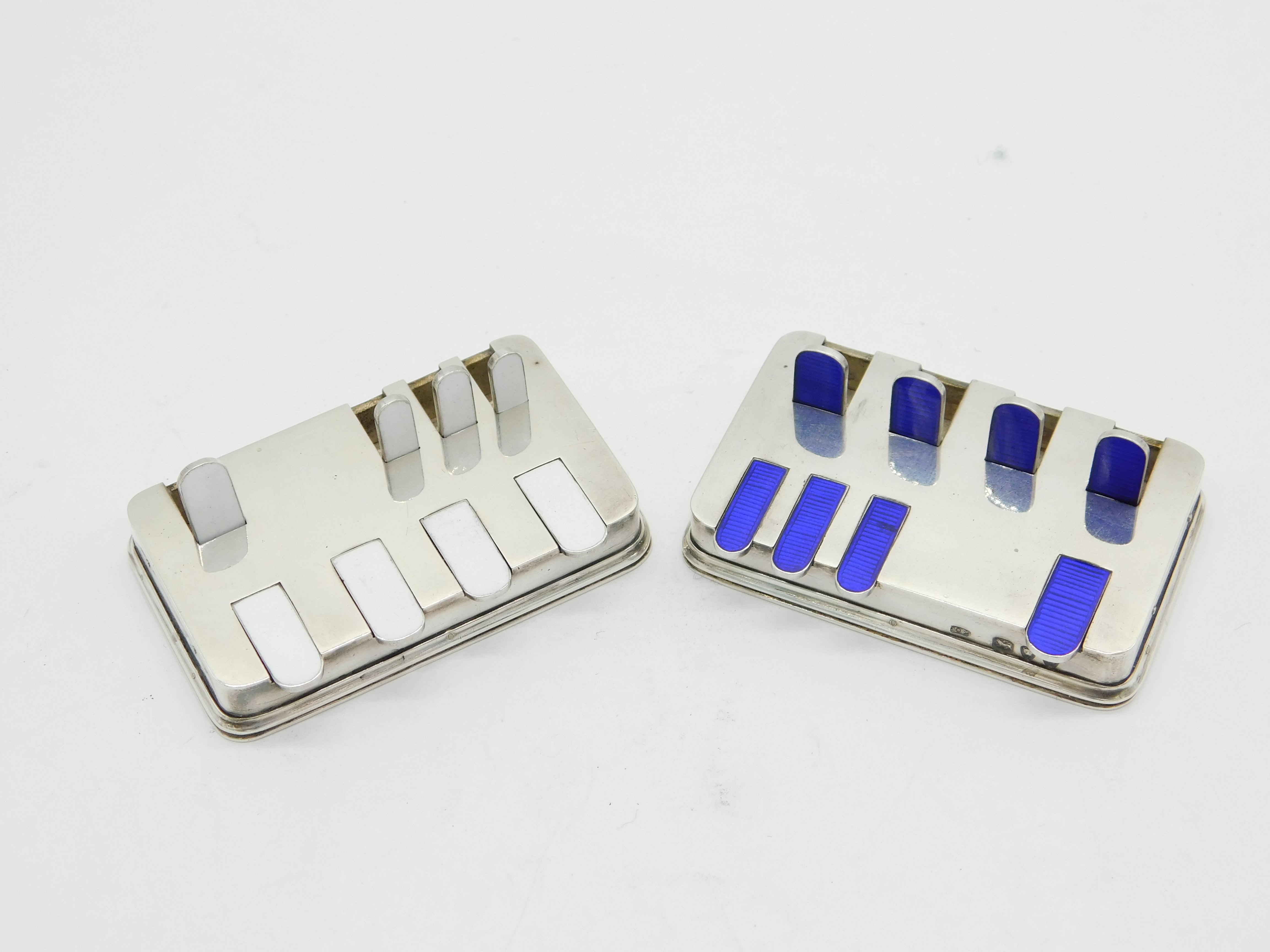 Sterling Silver & Blue-White Enamel Pair of Whist Playing Card Markers Antique c1880 London
