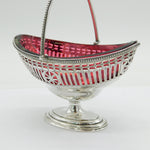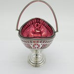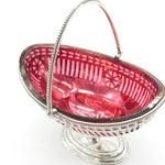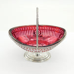 Sterling Silver & Cranberry Glass Pedestal Treat Dish Antique 1919 Sheffield