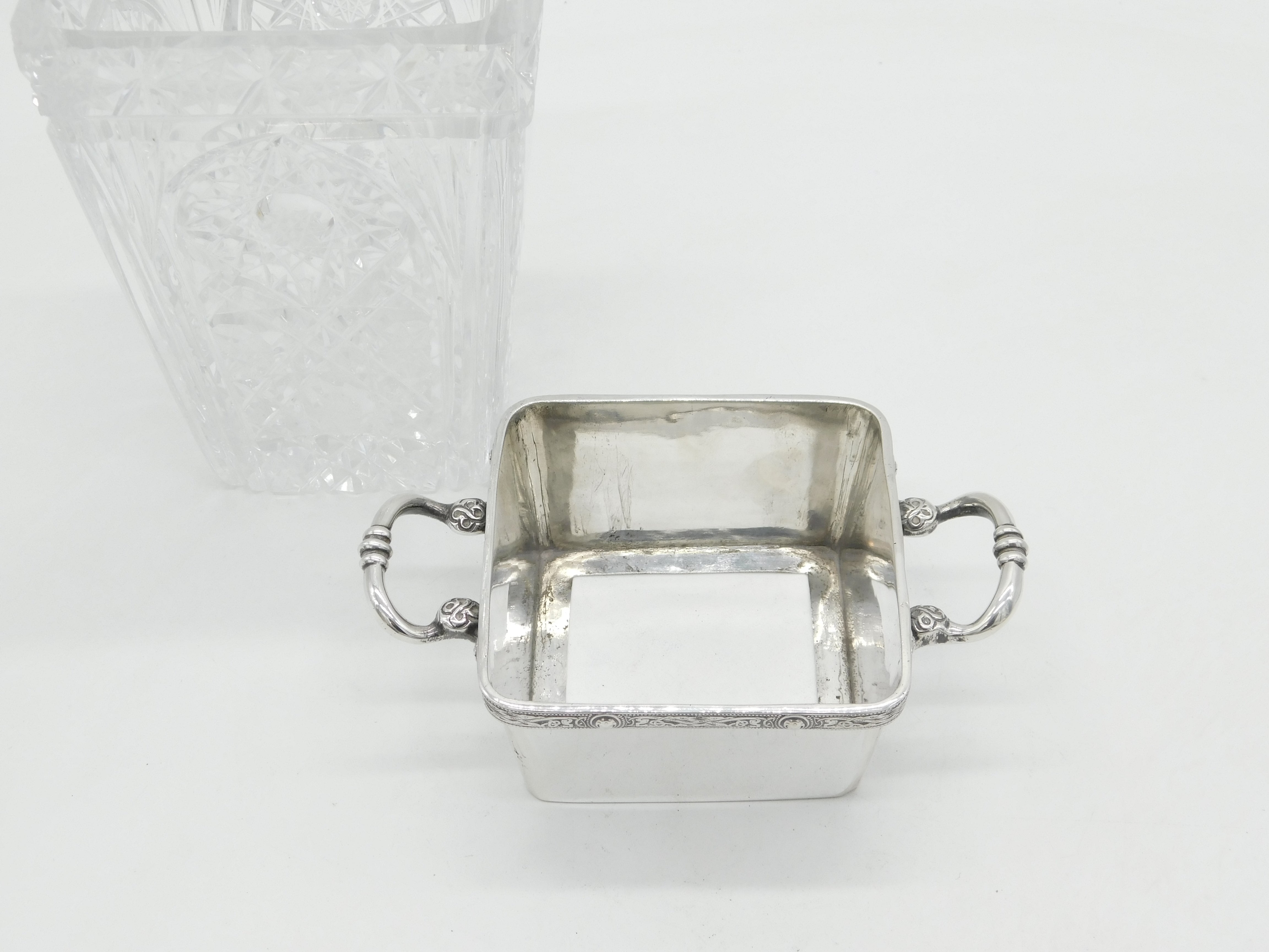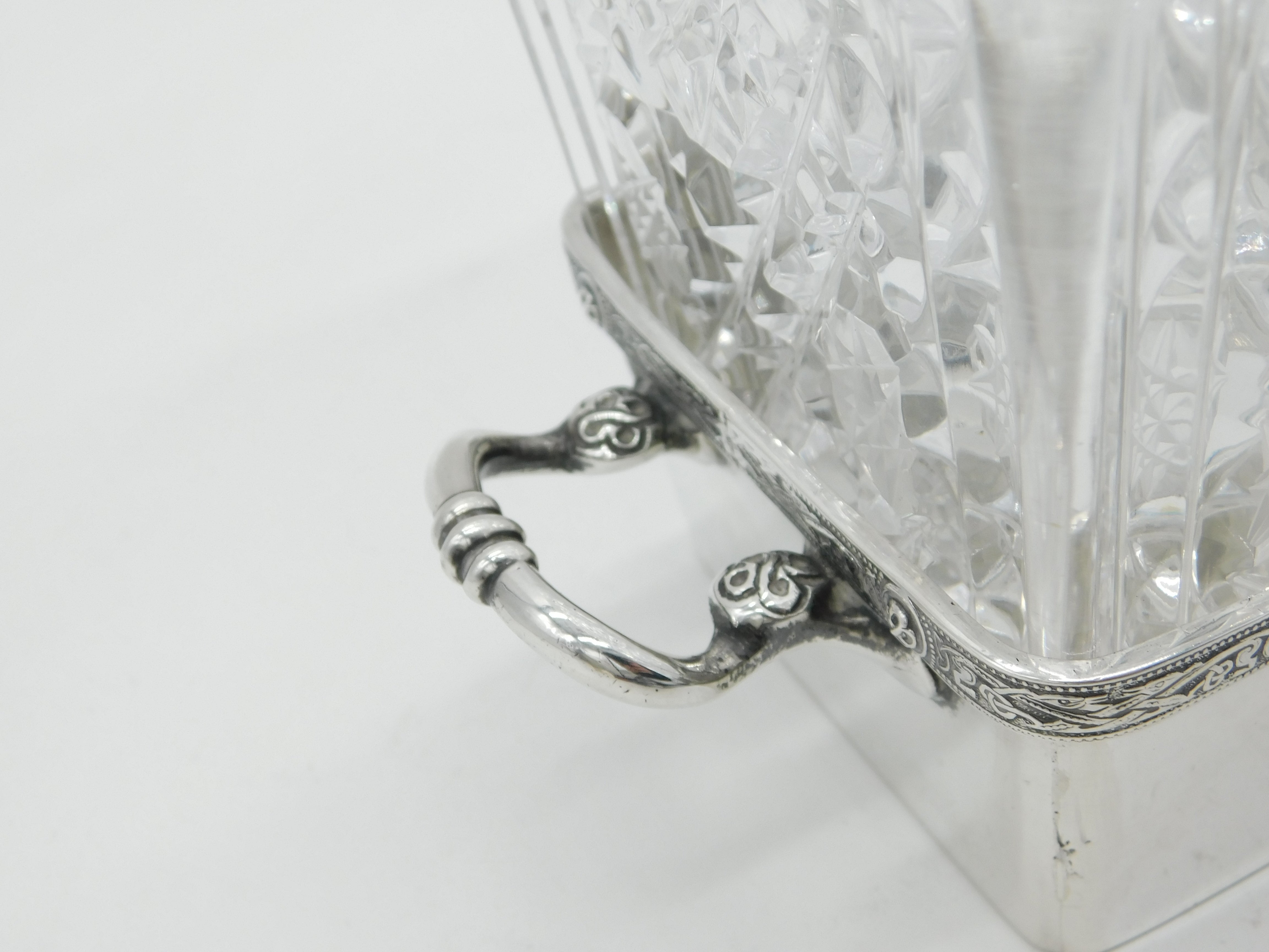 Sterling Silver & Cut Glass Large Celery Dish Antique 1938 Birmingham Art Deco