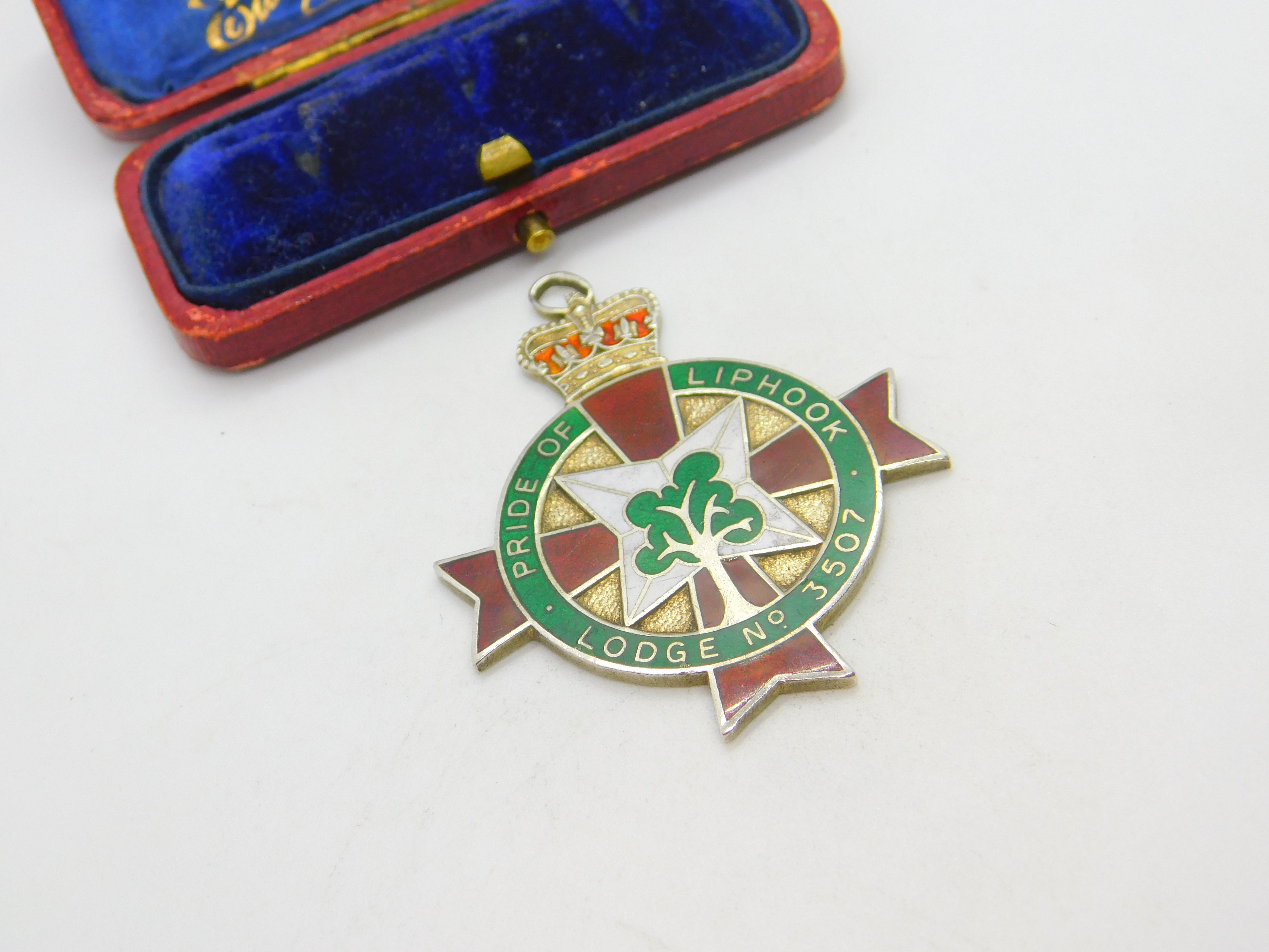 Sterling Silver & Enamel 'Pride of Liphook' Masonic Fob Medal 1971 Birmingham