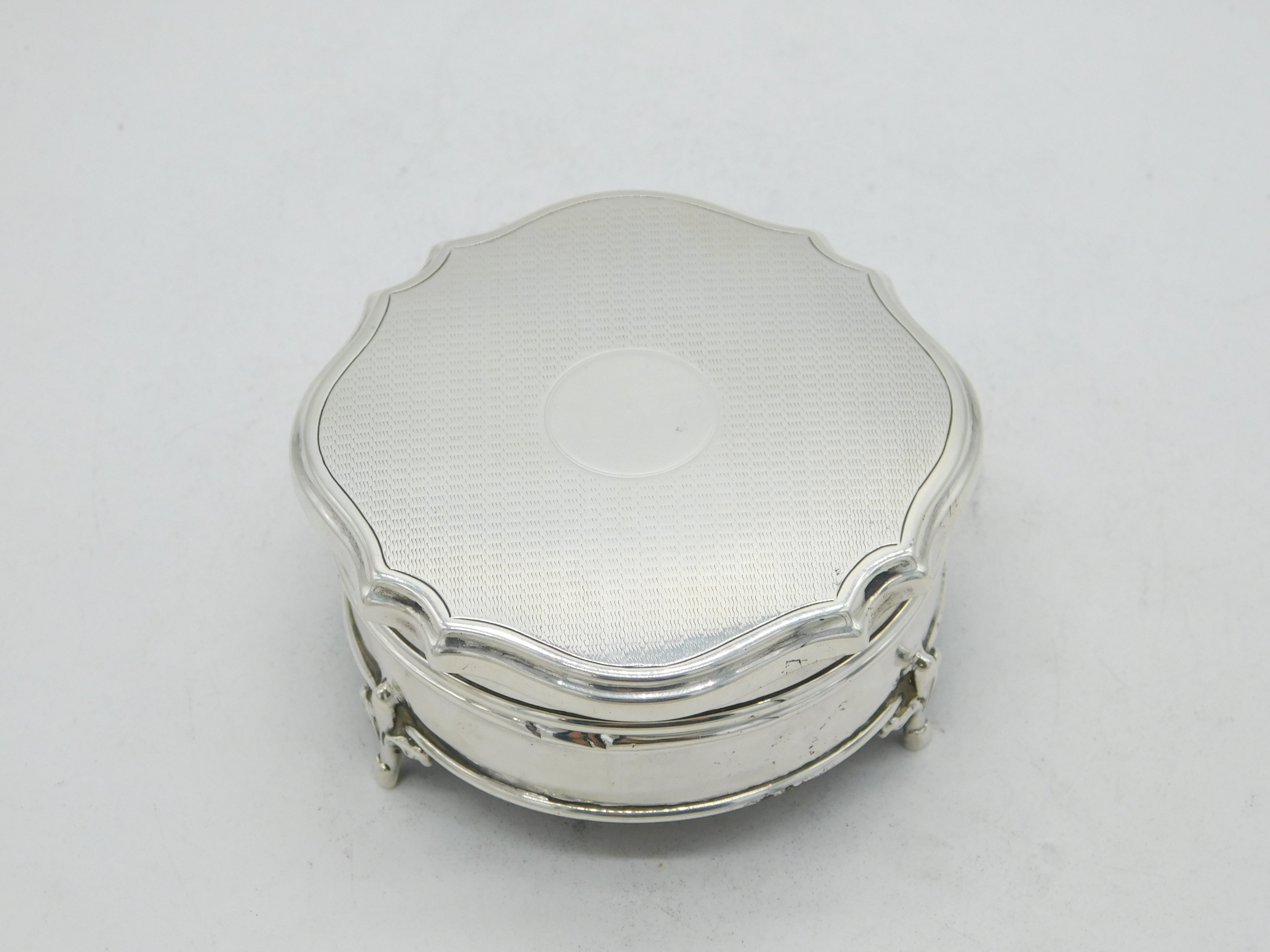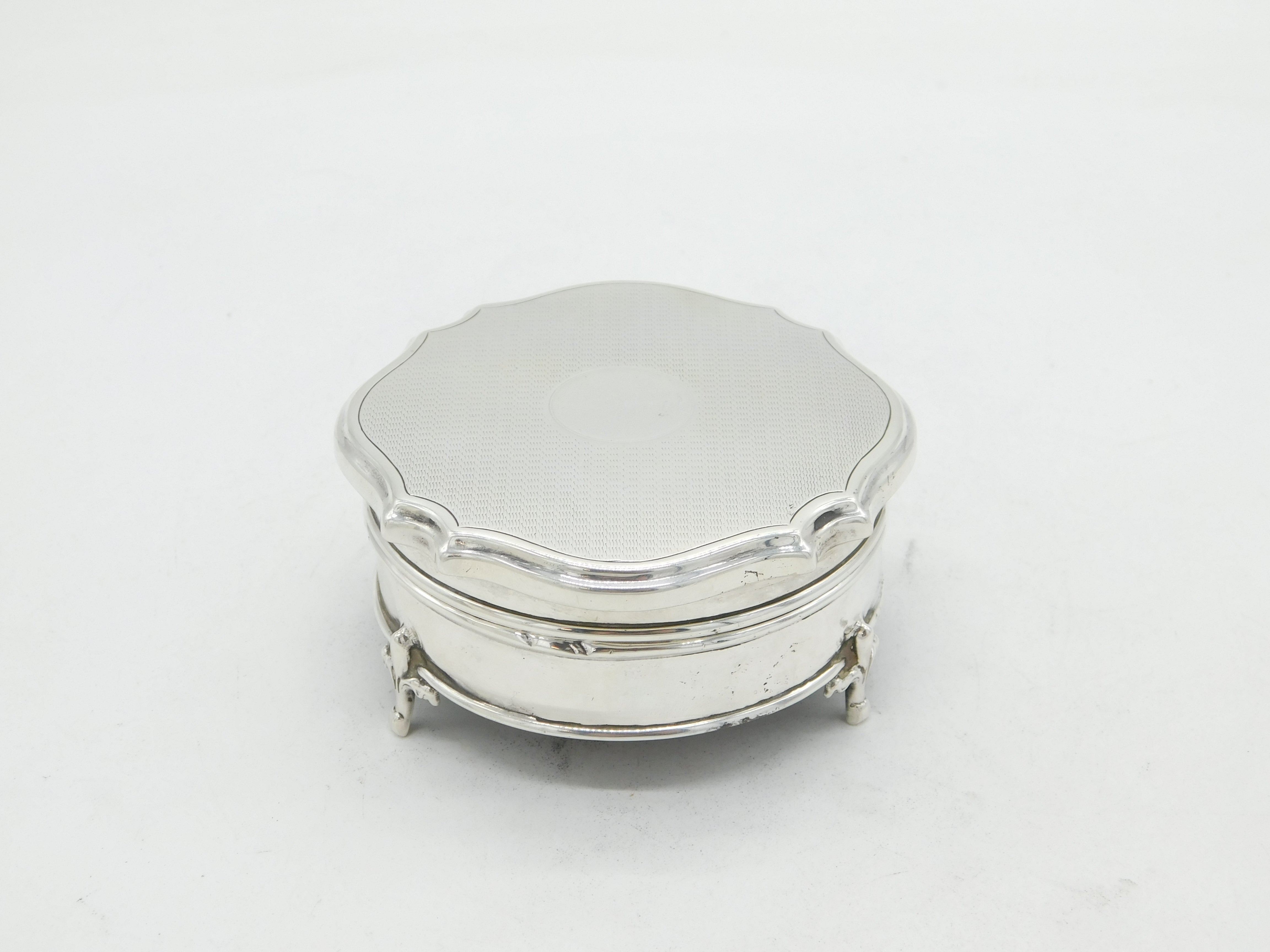Sterling Silver Engine Turned Pedestal Jewellery Box Antique 1929 Birmingham