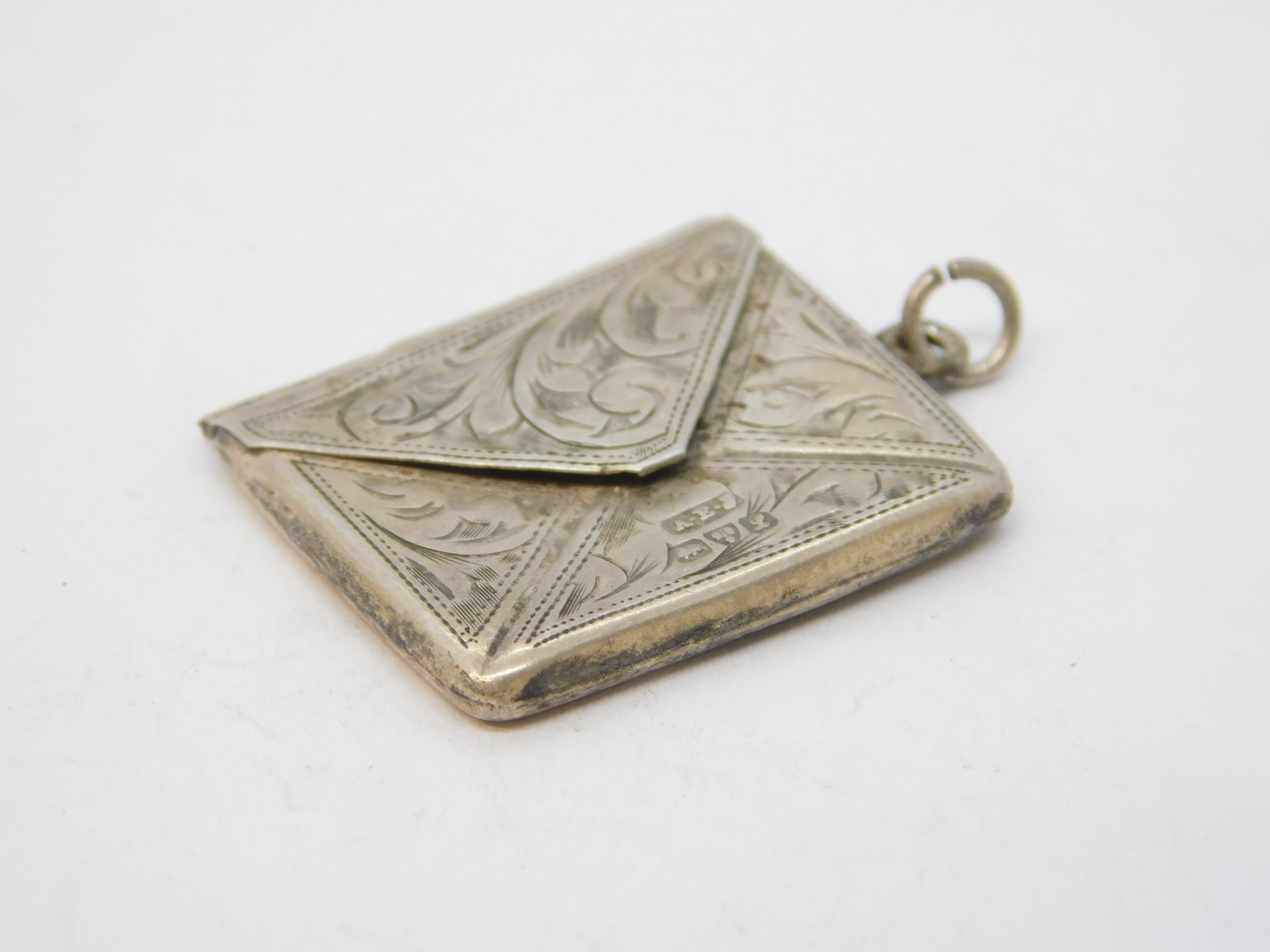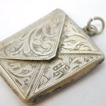 Sterling Silver Floral Pattern Envelope Stamp Fob Pendant Antique 1911 Chester