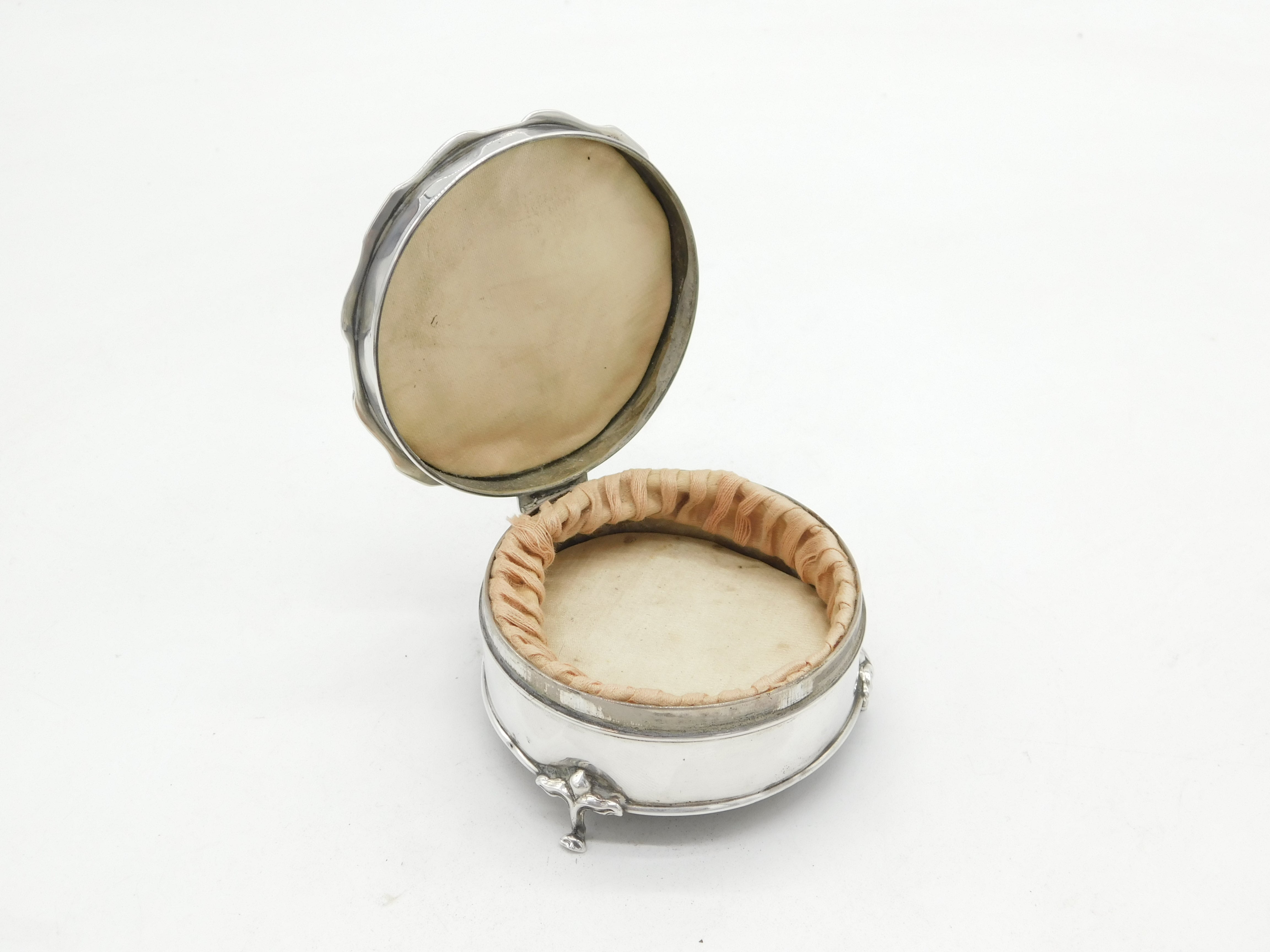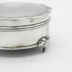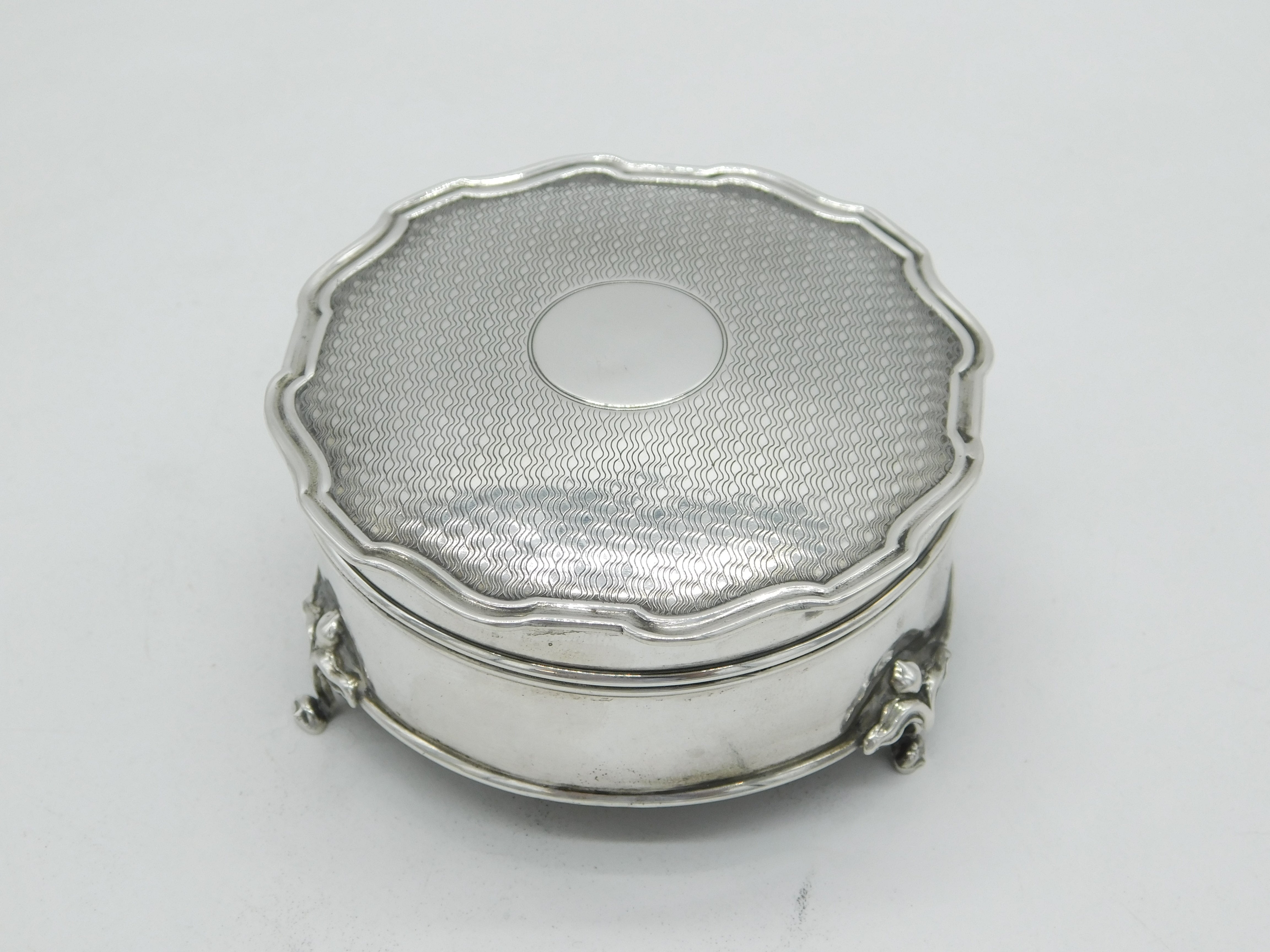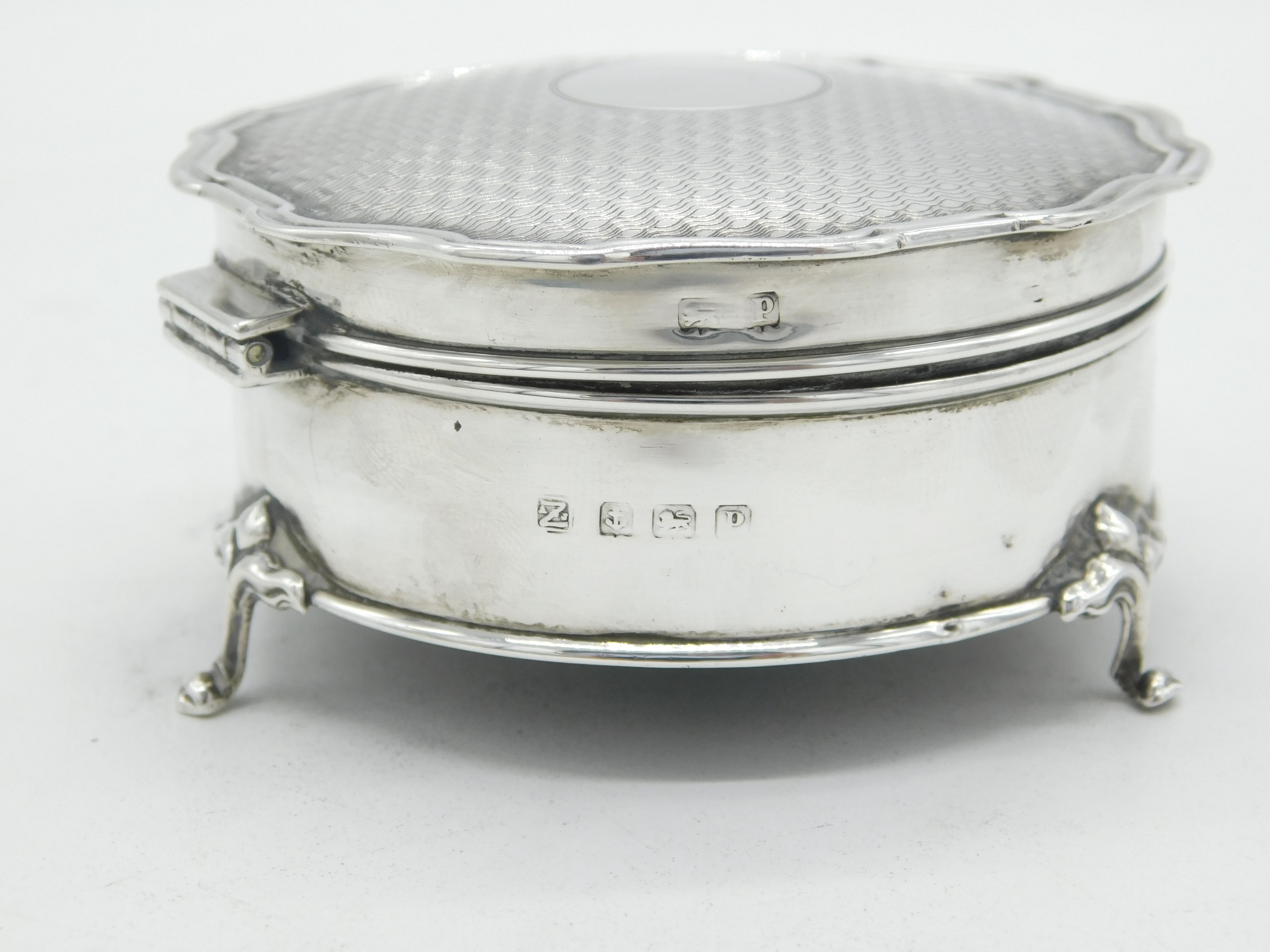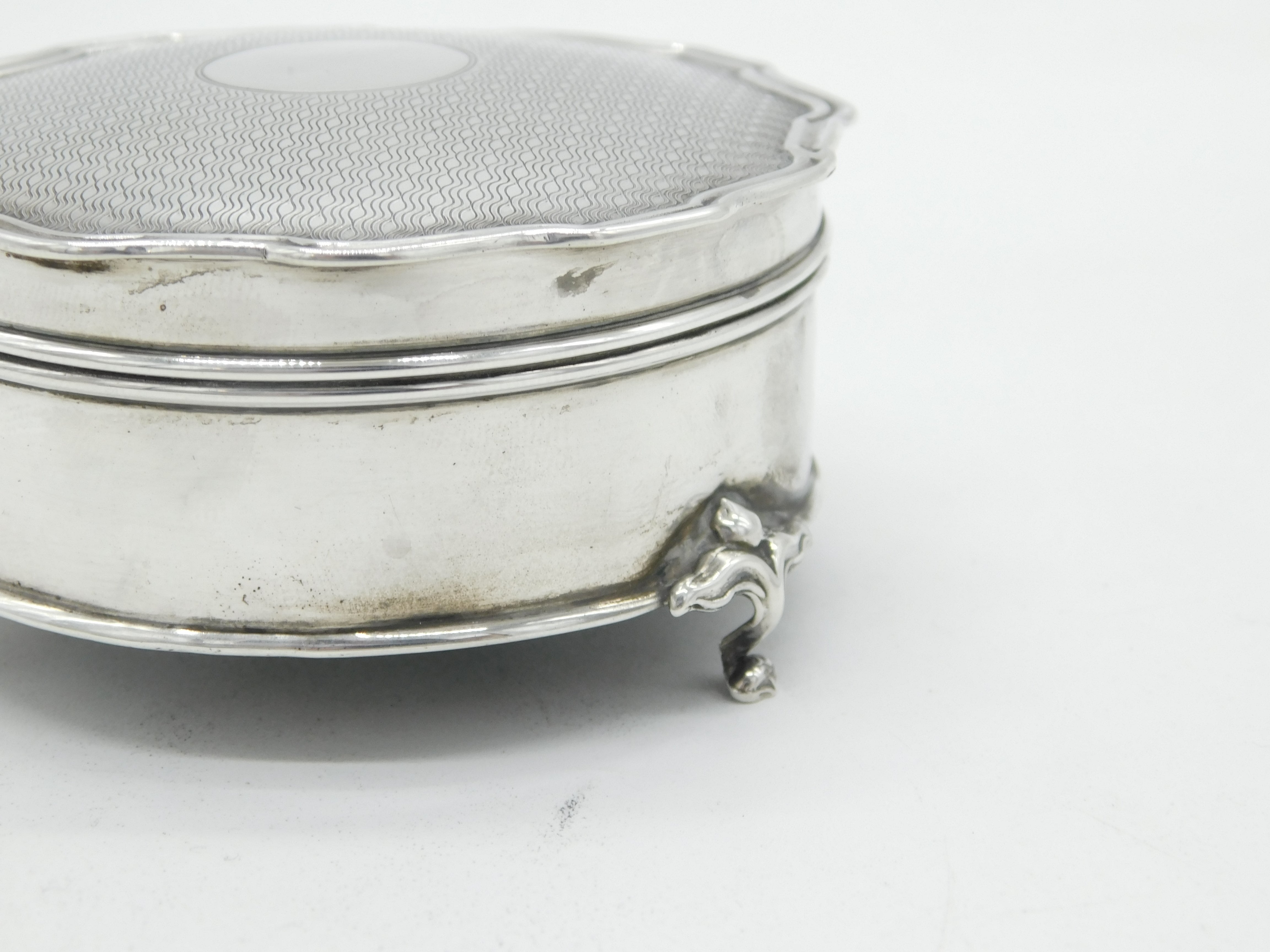 Details: A fantastic and wonderfully designed antique art deco sterling silver engine turned flower patterned jewellery box on paw feet with charming liner hallmarked Birmingham 1939 to the edge. This is a wonderful item that would make a perfect gift or addition to any collection.
