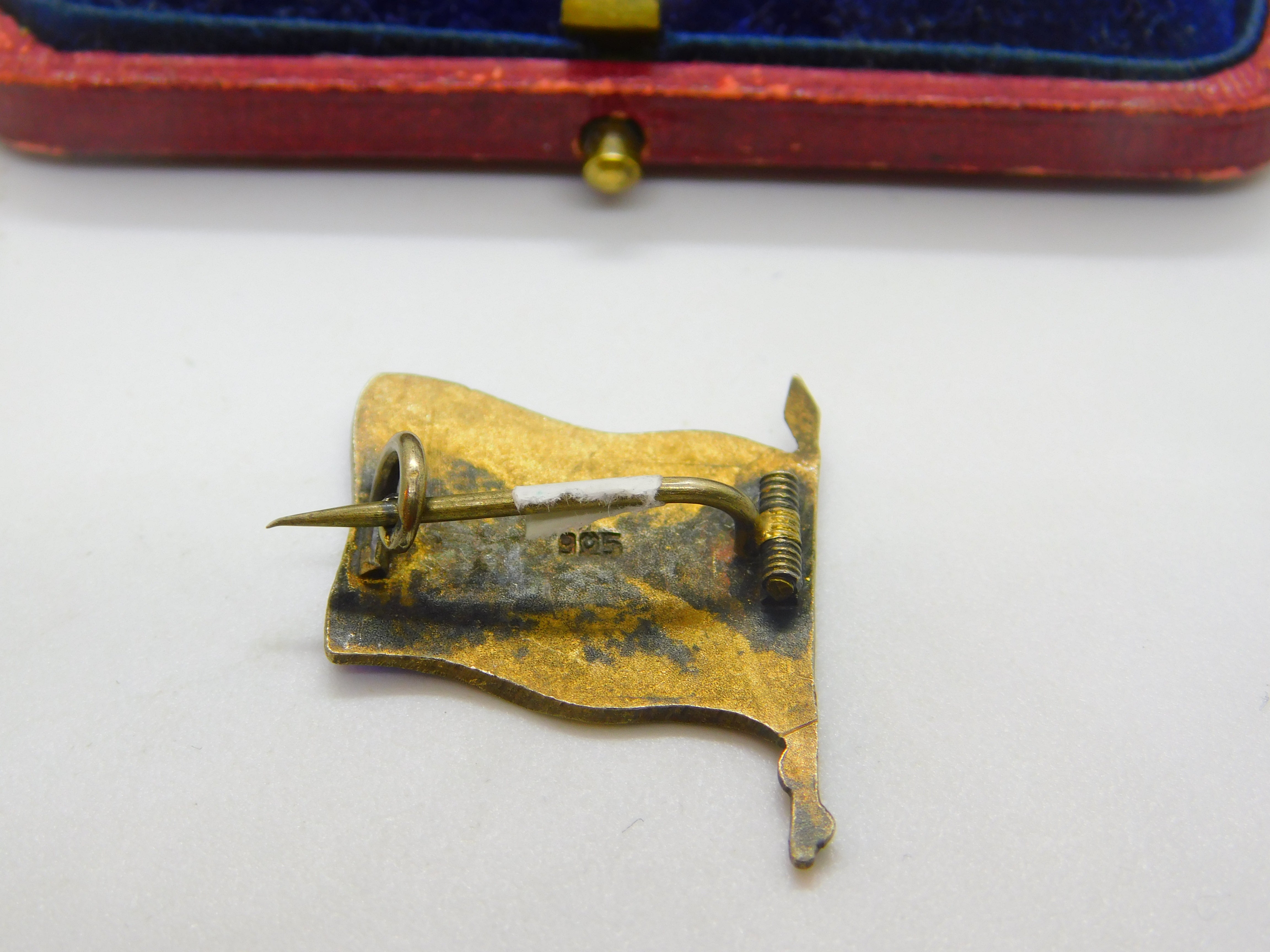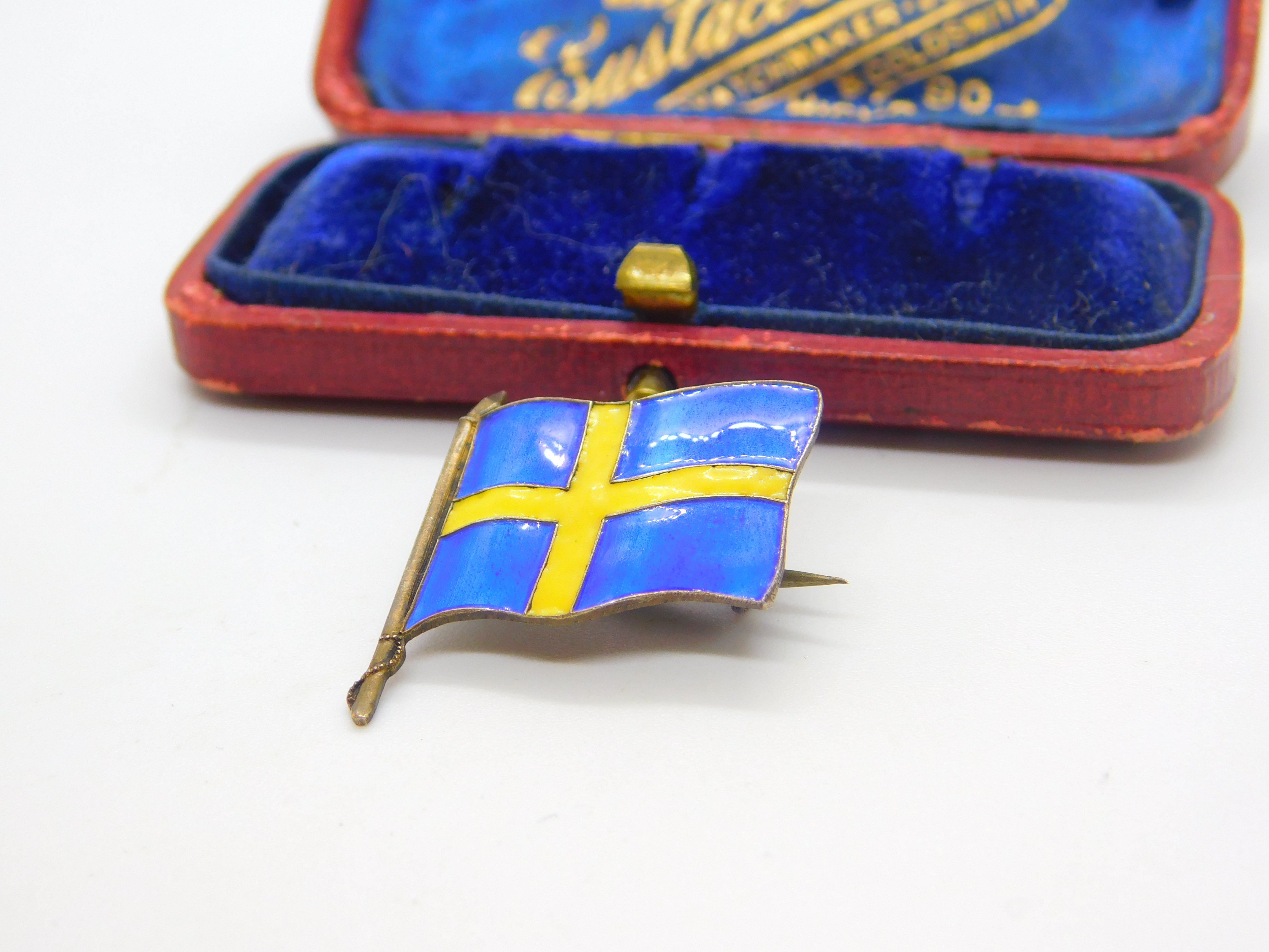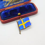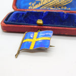 Sterling Silver Gilt & Colourful Enamel Swedish Flag Brooch Antique c1920 Deco