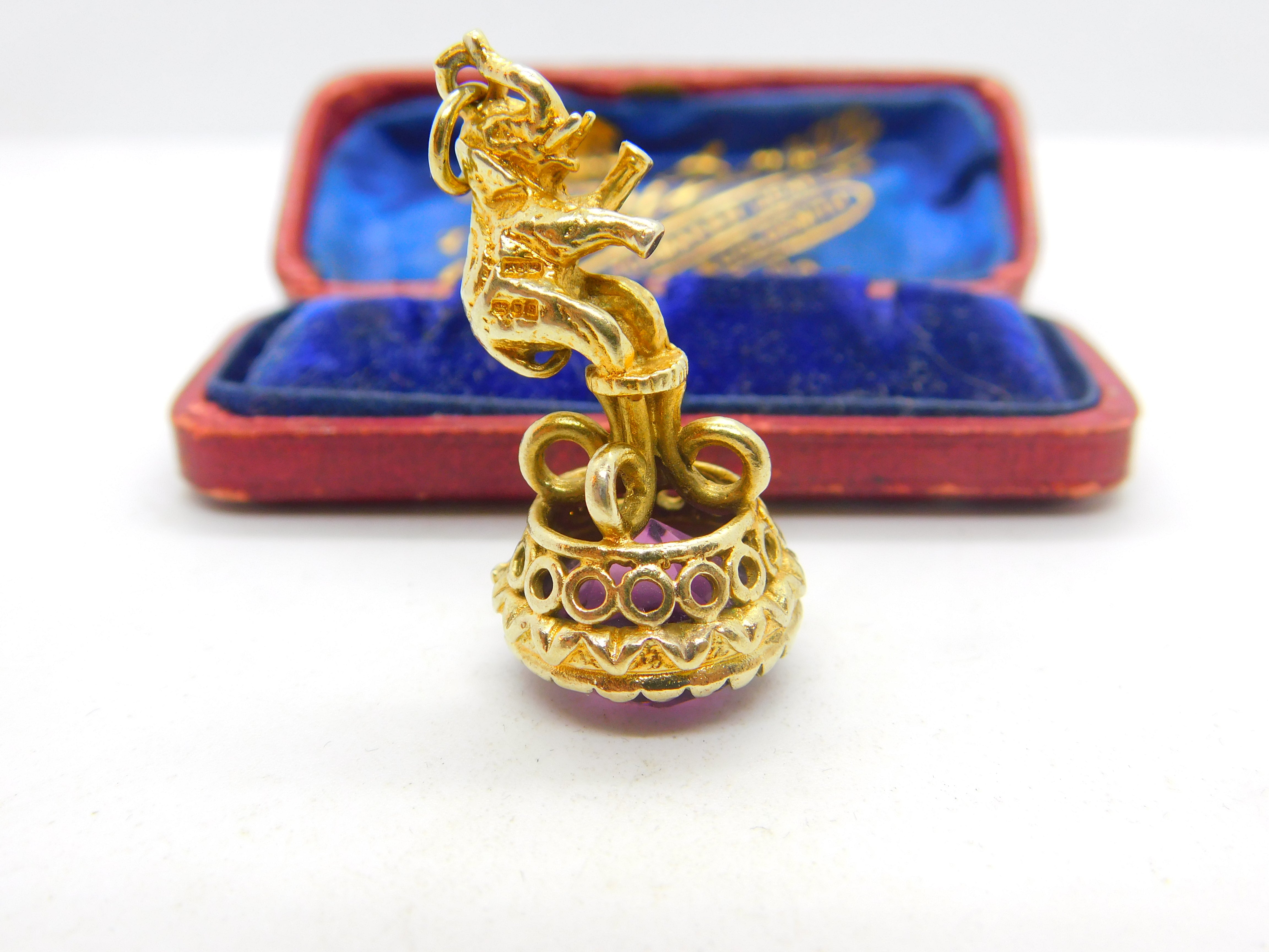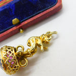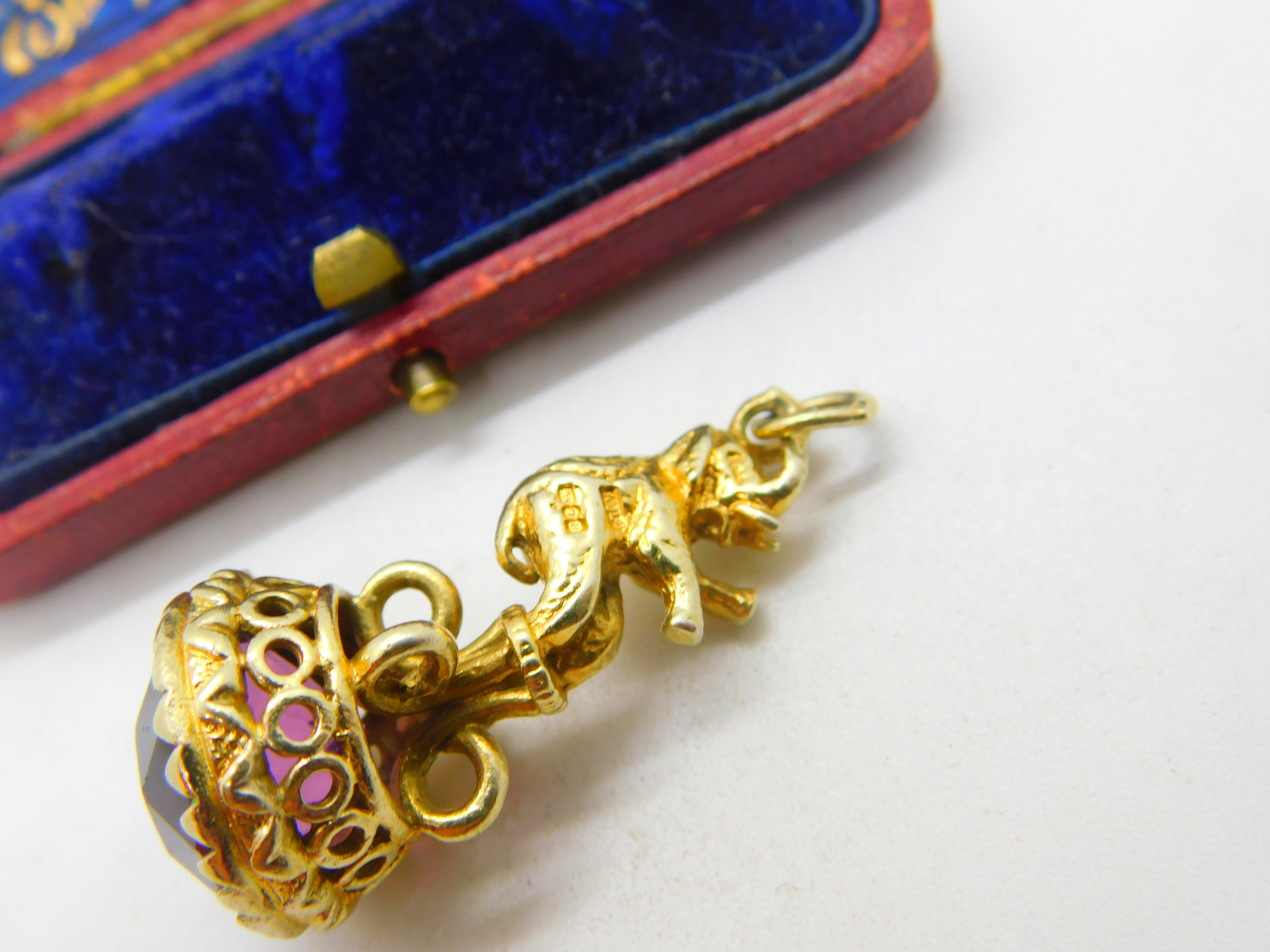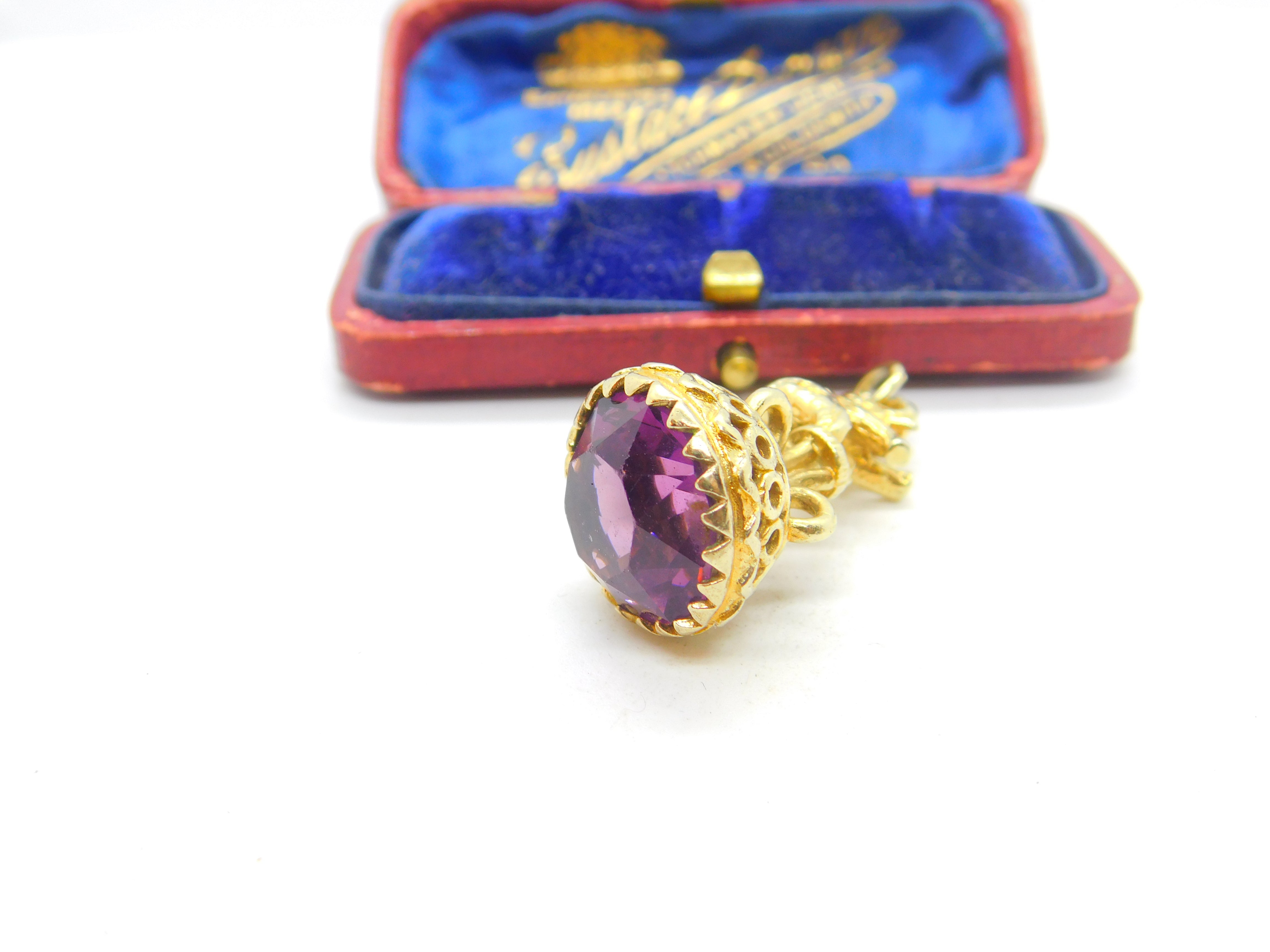 Details: A fantastic and wonderfully designed vintage sterling silver gilt victorian revival circus dancing elephant fob seal pendant set with faceted amethyst hallmarked London 1991 to the edge. This is a wonderful item that would make a perfect gift or addition to any collection. The BOX pictured is for PRESENTATION ONLY and is NOT included in the listings but used to frame the pictures unless specifically stated otherwise.