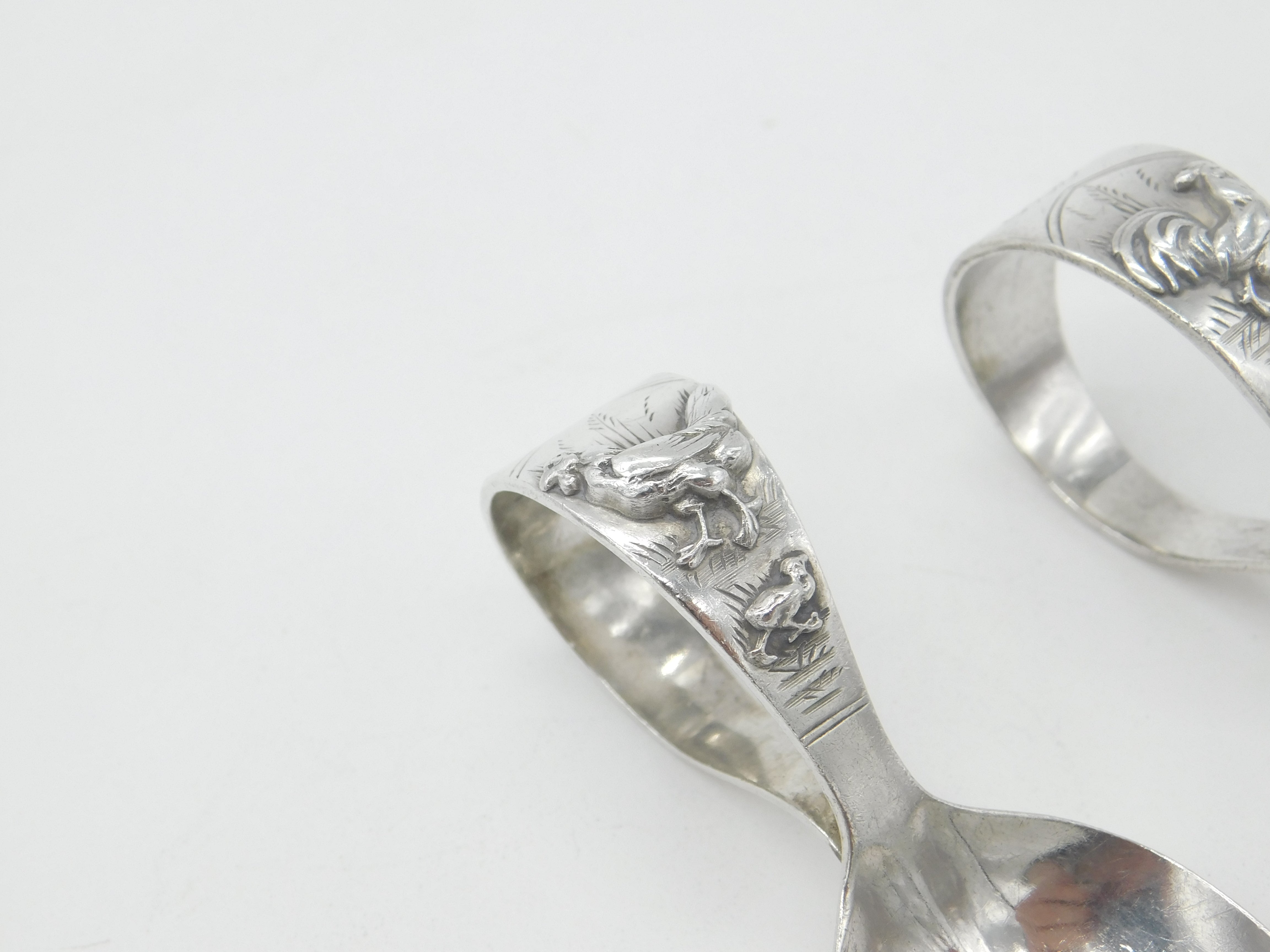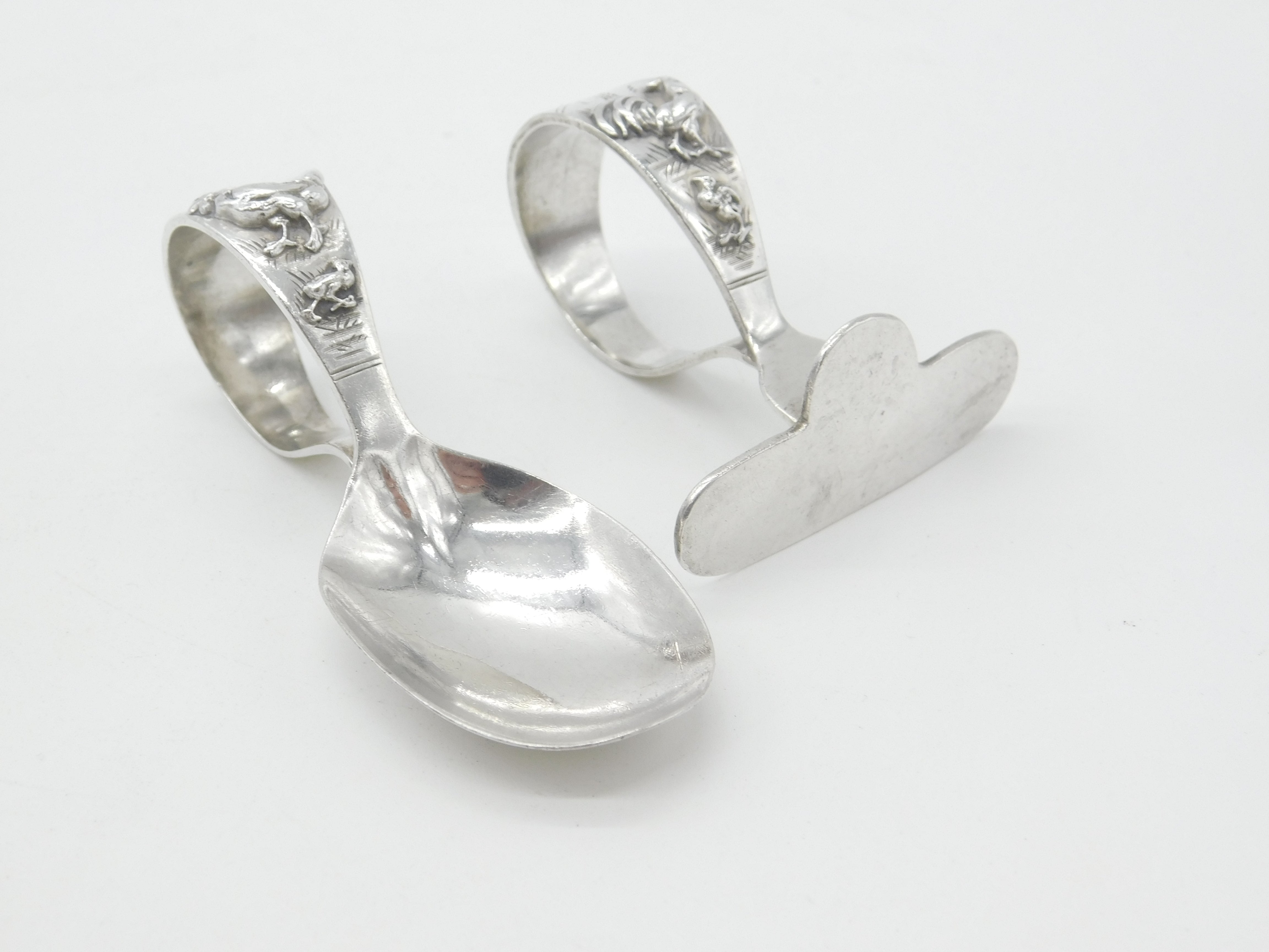 Sterling Silver Mother Hen & Chick Baby Pusher & Feeder 1938 Sheffield Antique