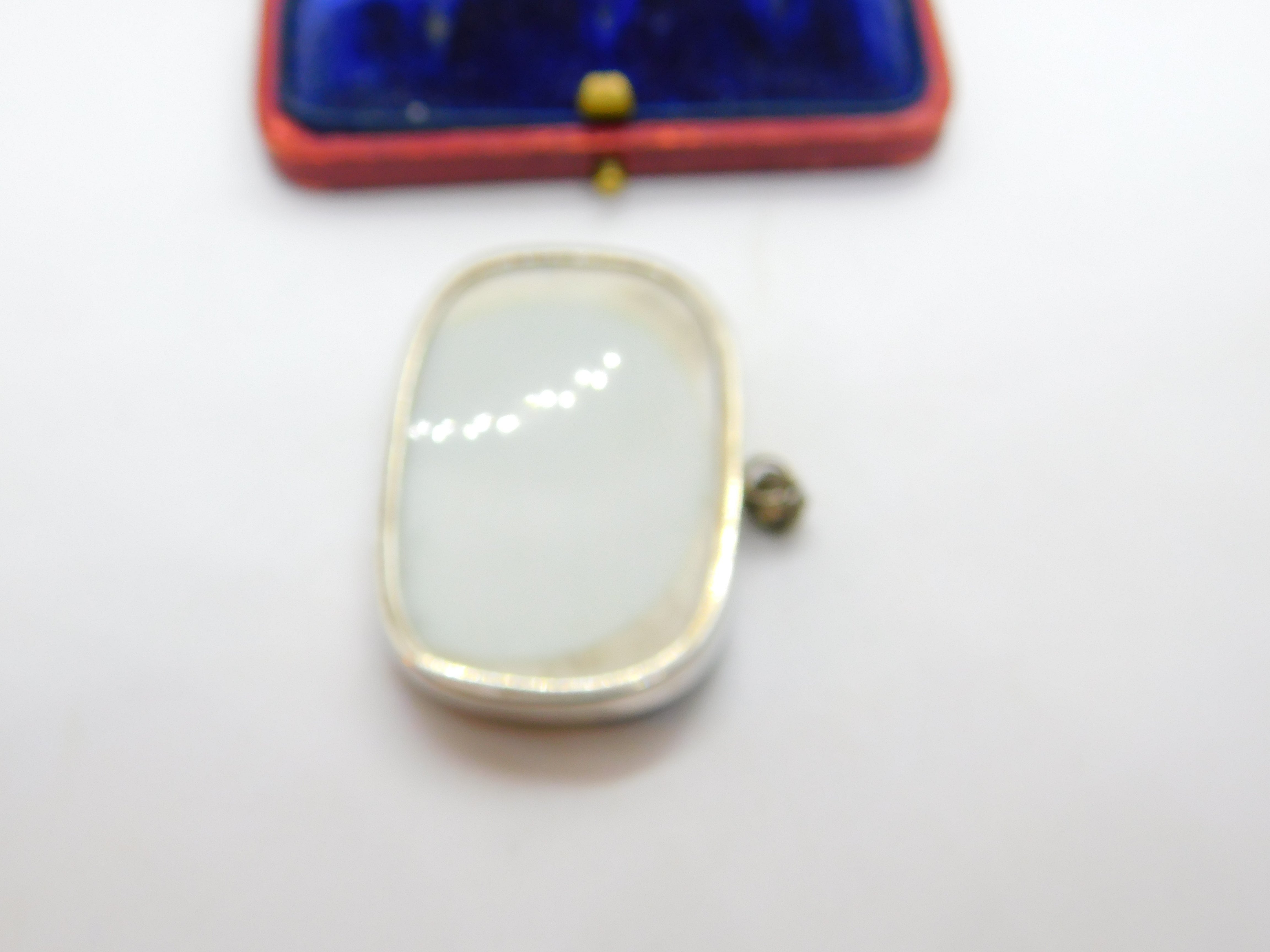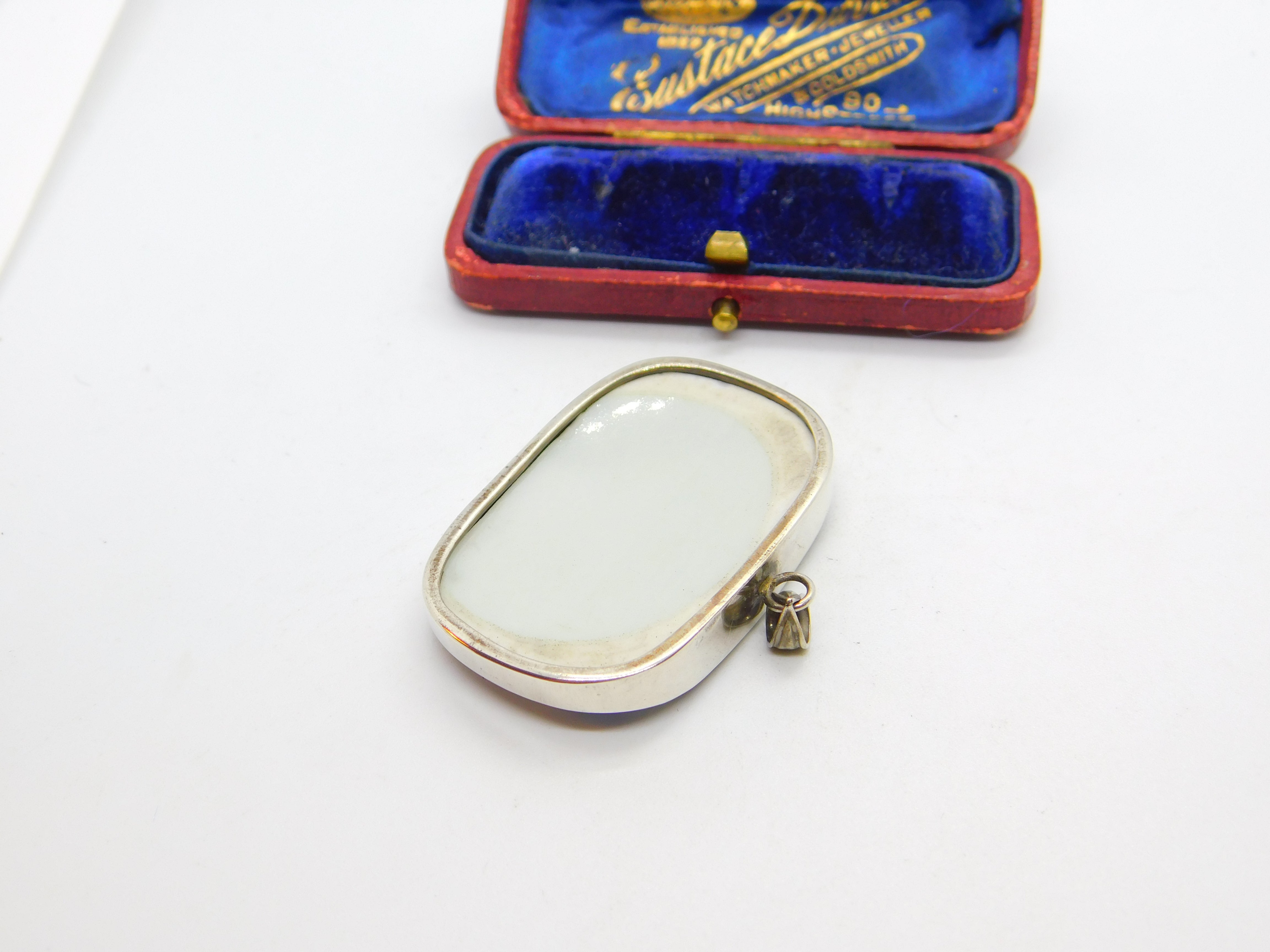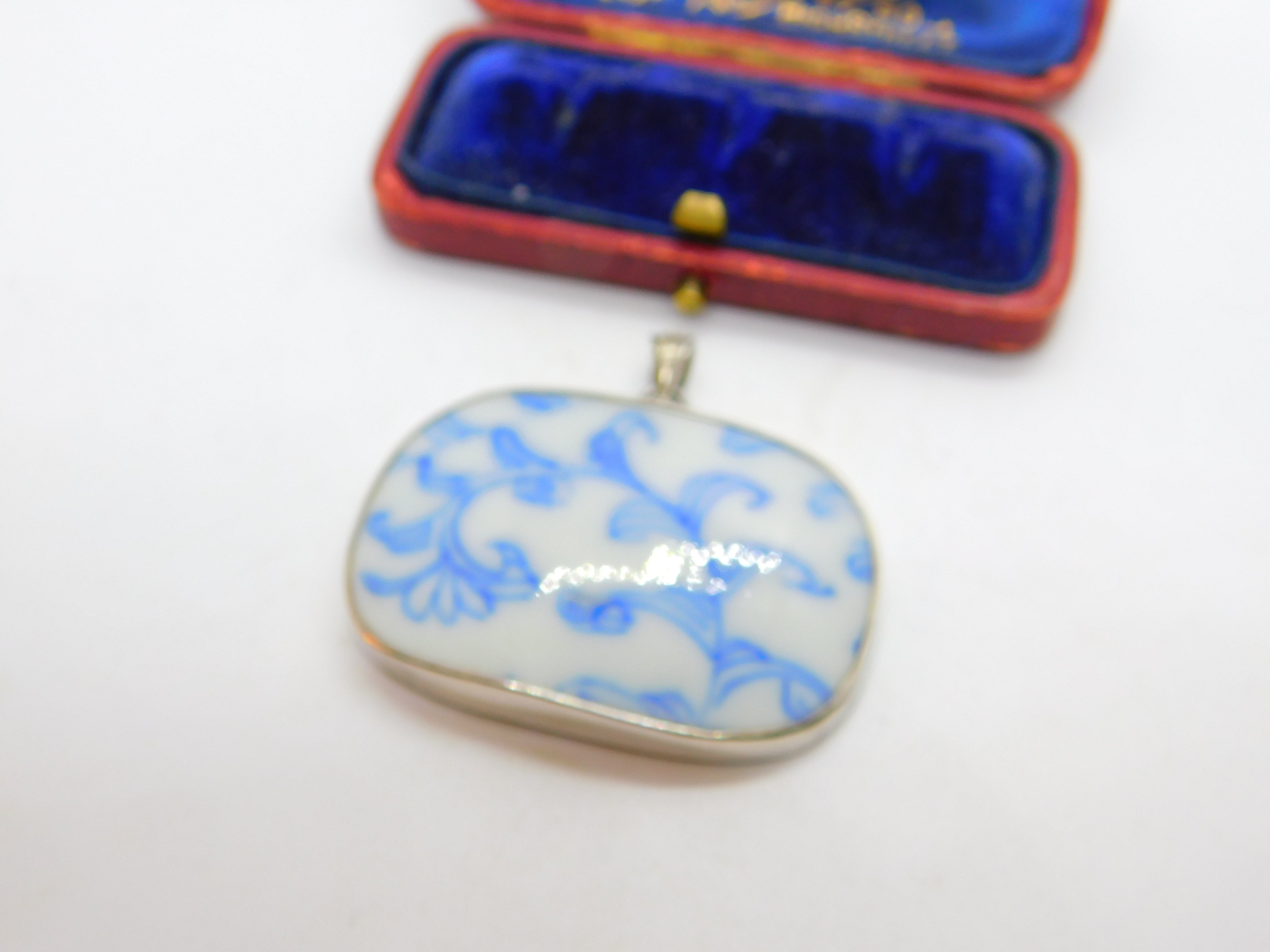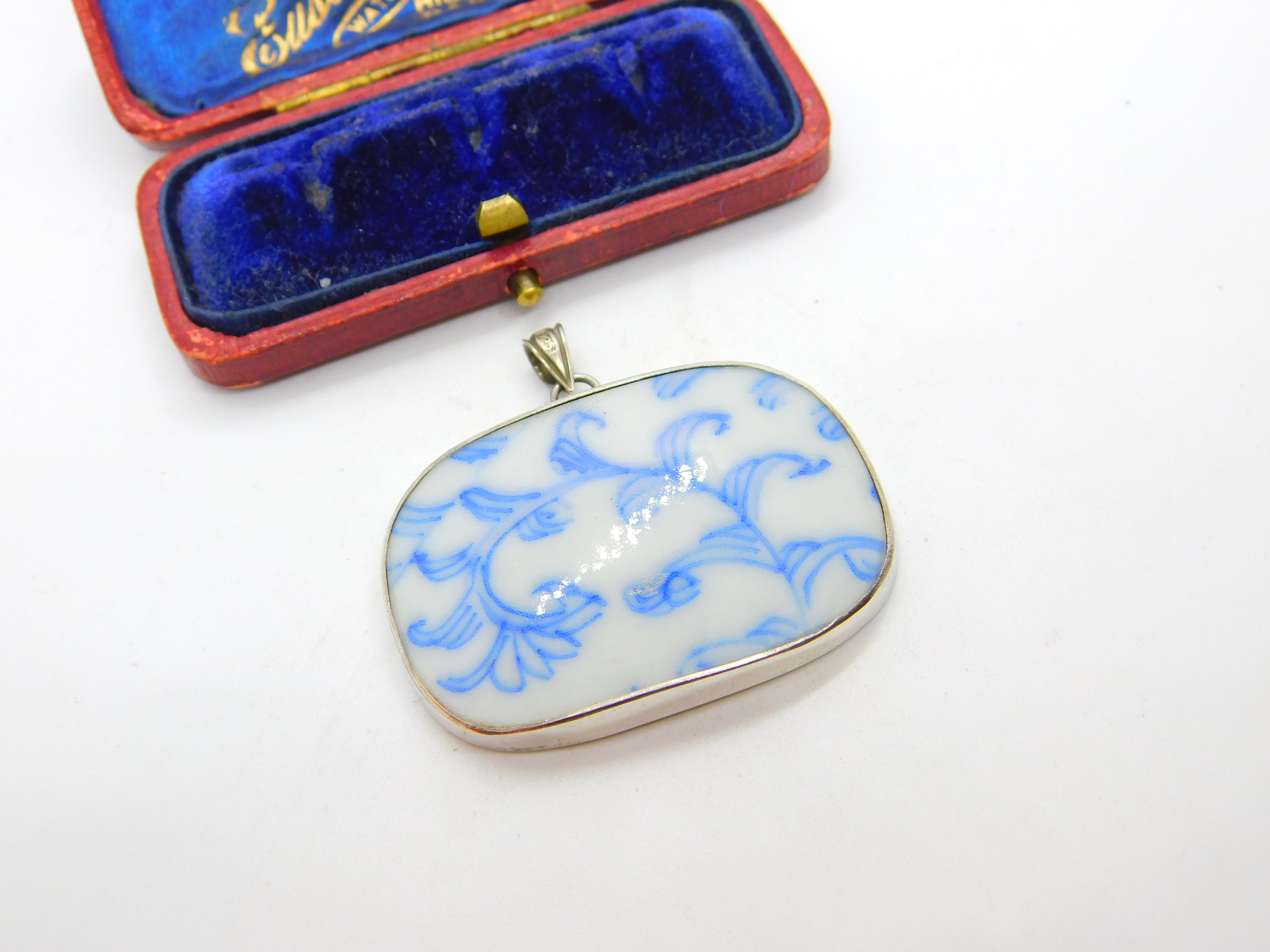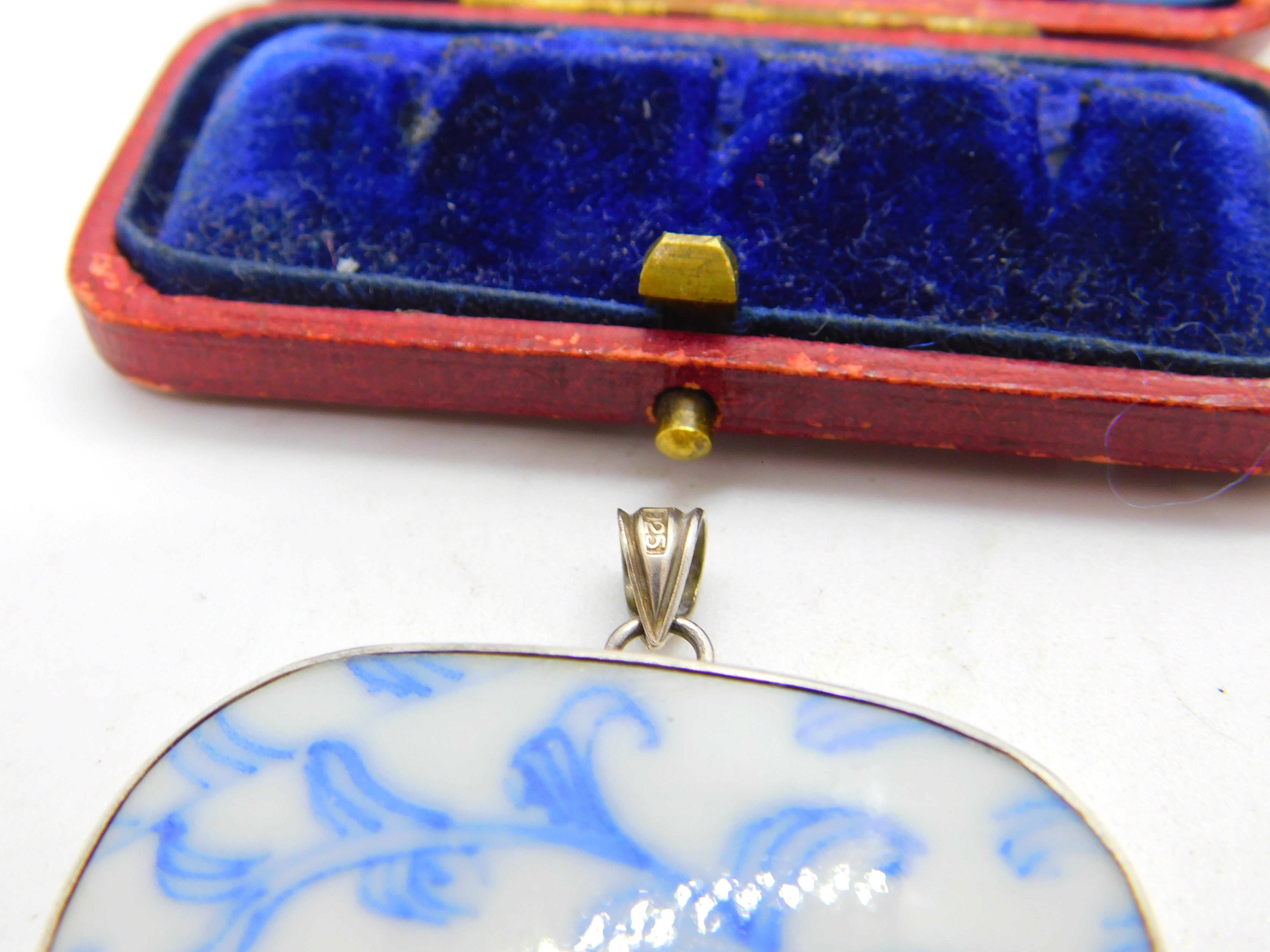 Sterling Silver Mounted Chinese Qing Dynasty Ceramic Pendant Antique