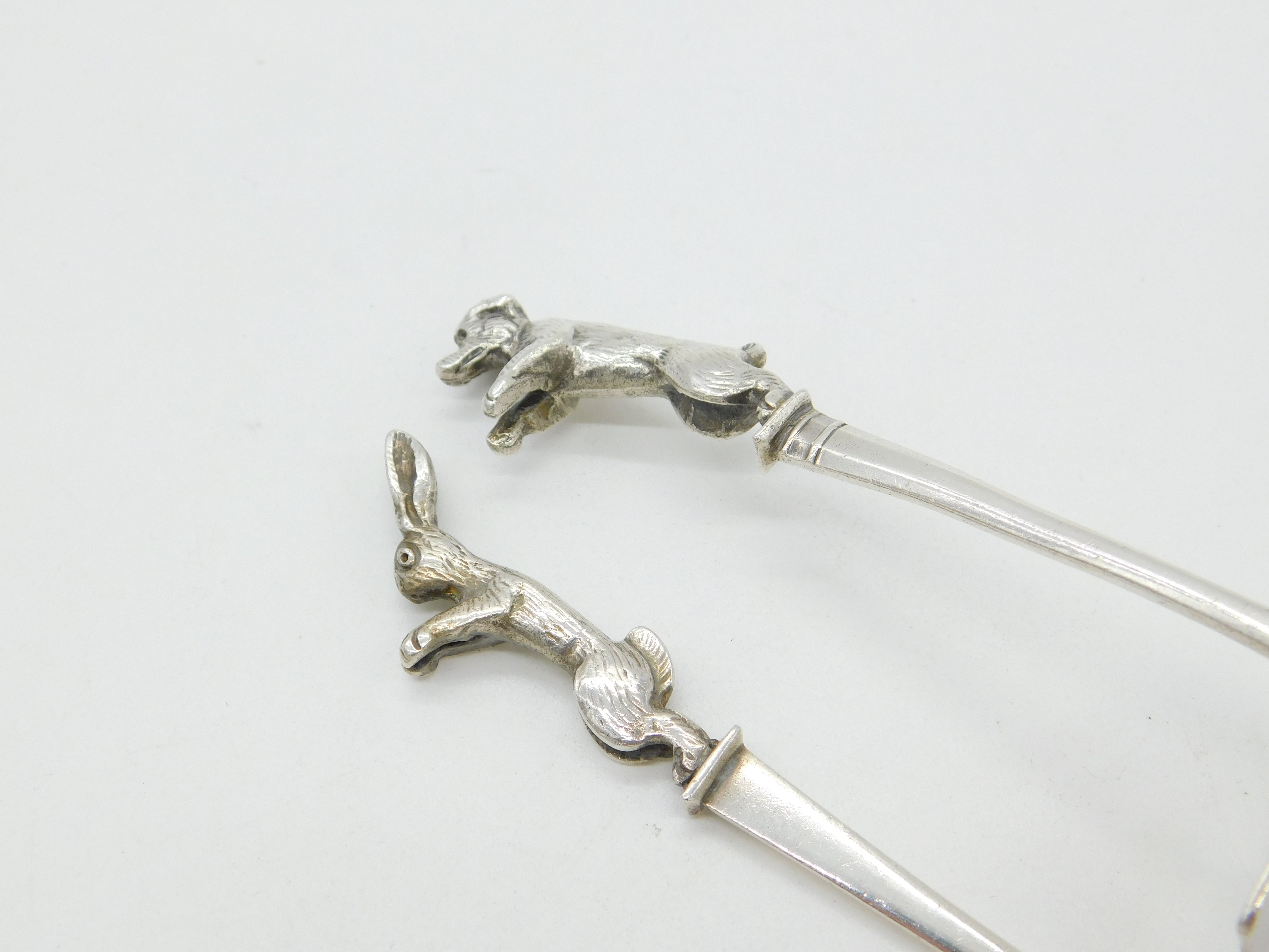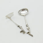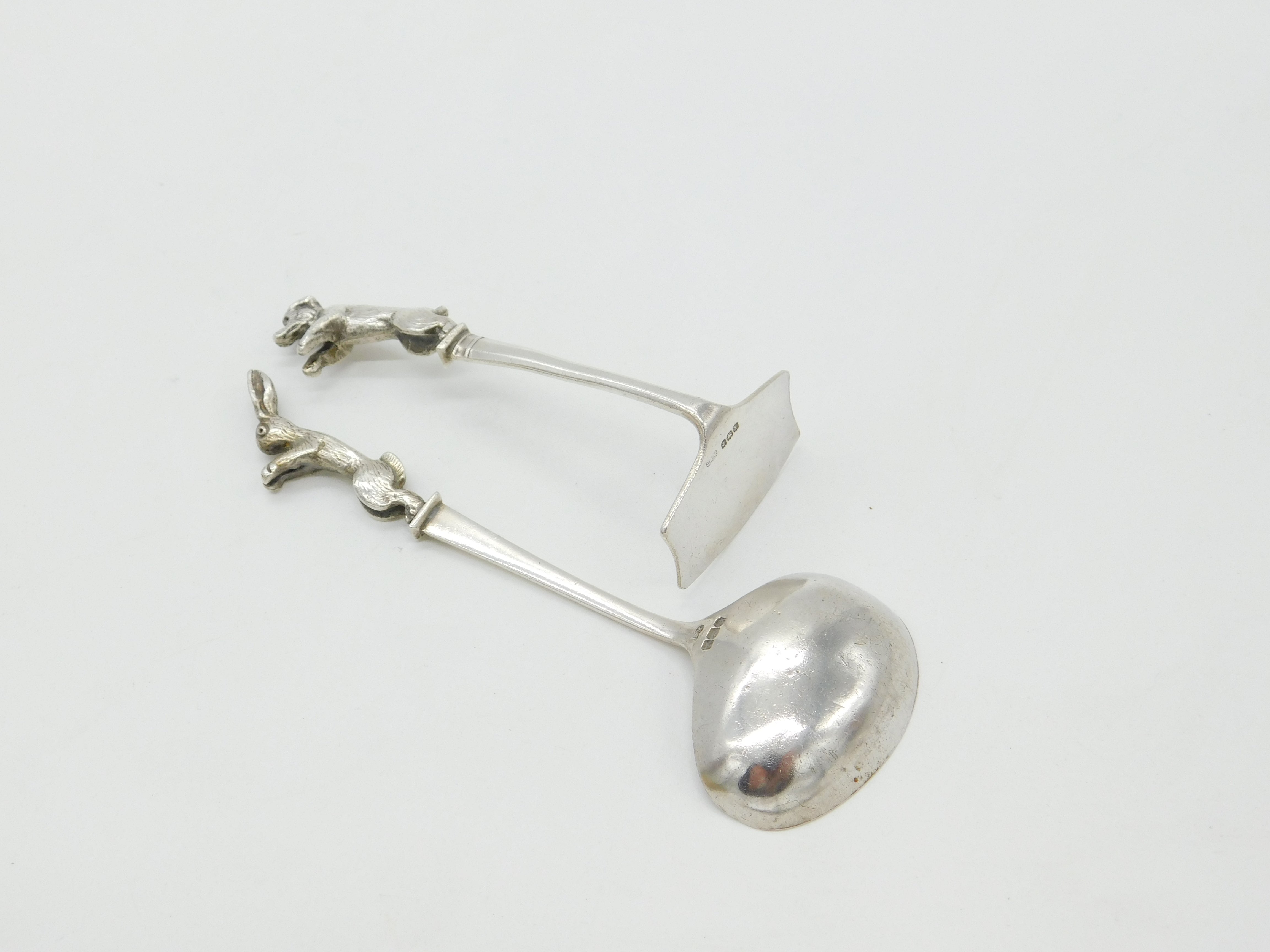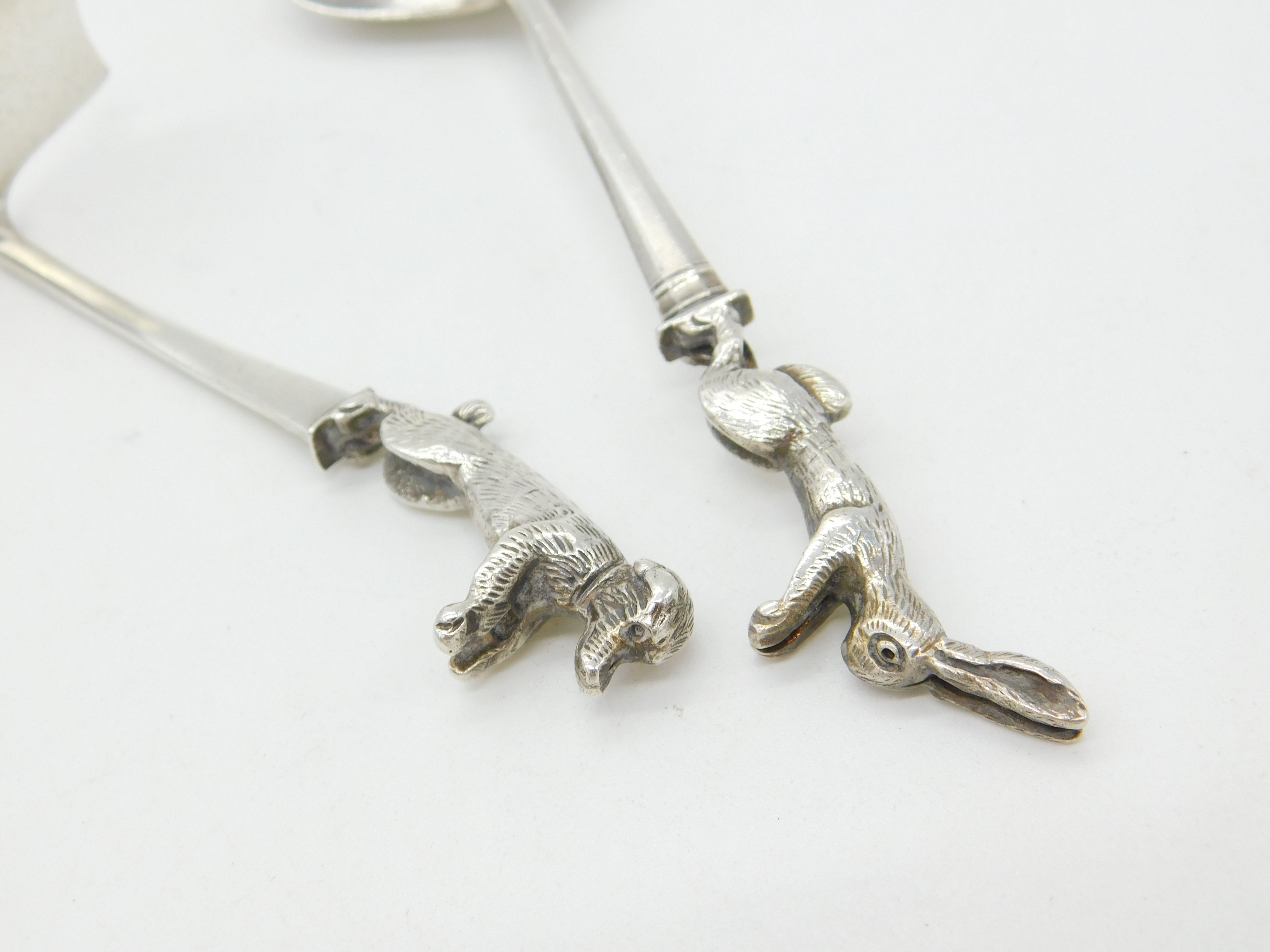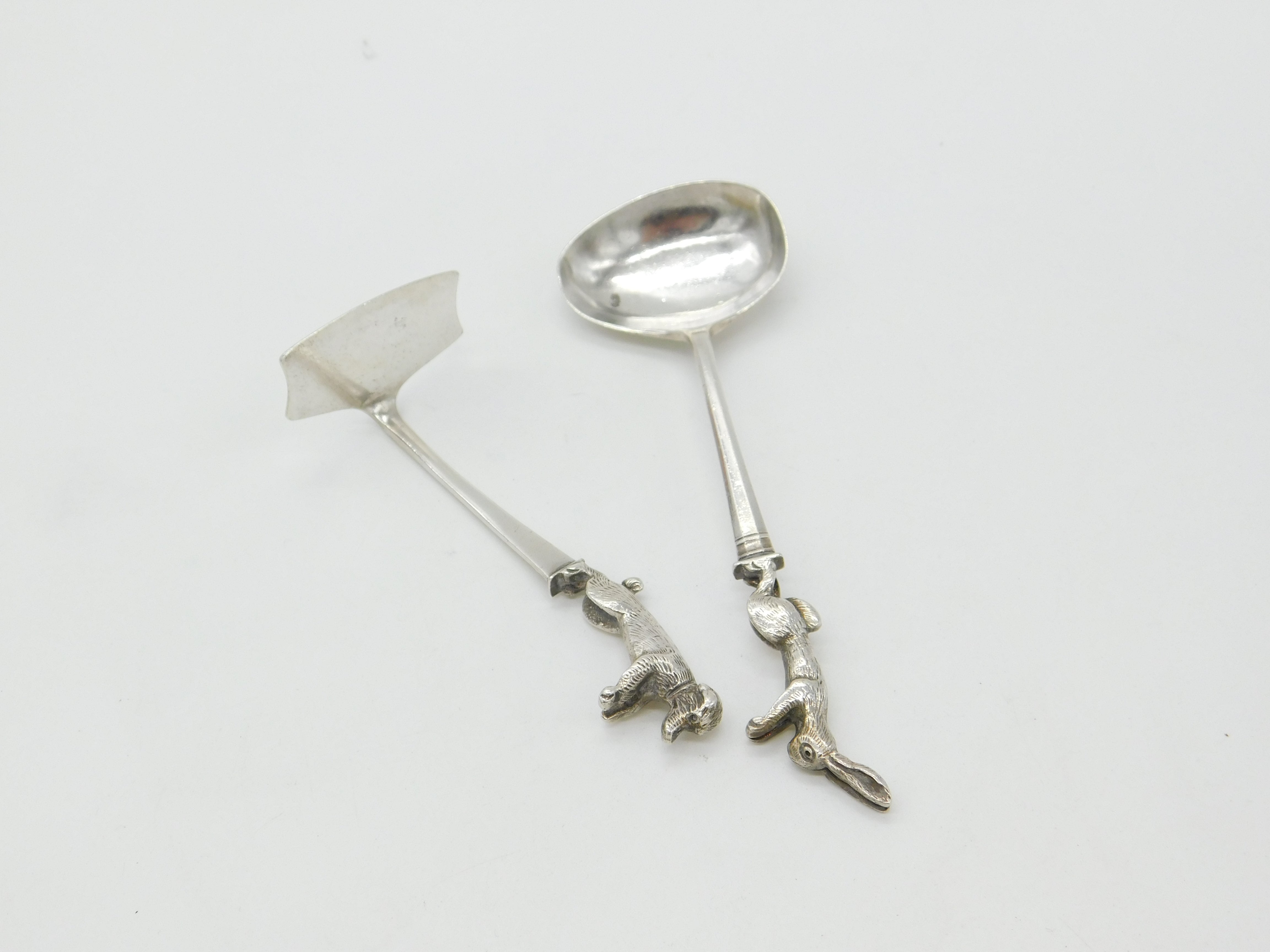 Sterling Silver Novelty Rabbit & Puppy Dog Baby Pusher & Feeder Spoon Set 1948
