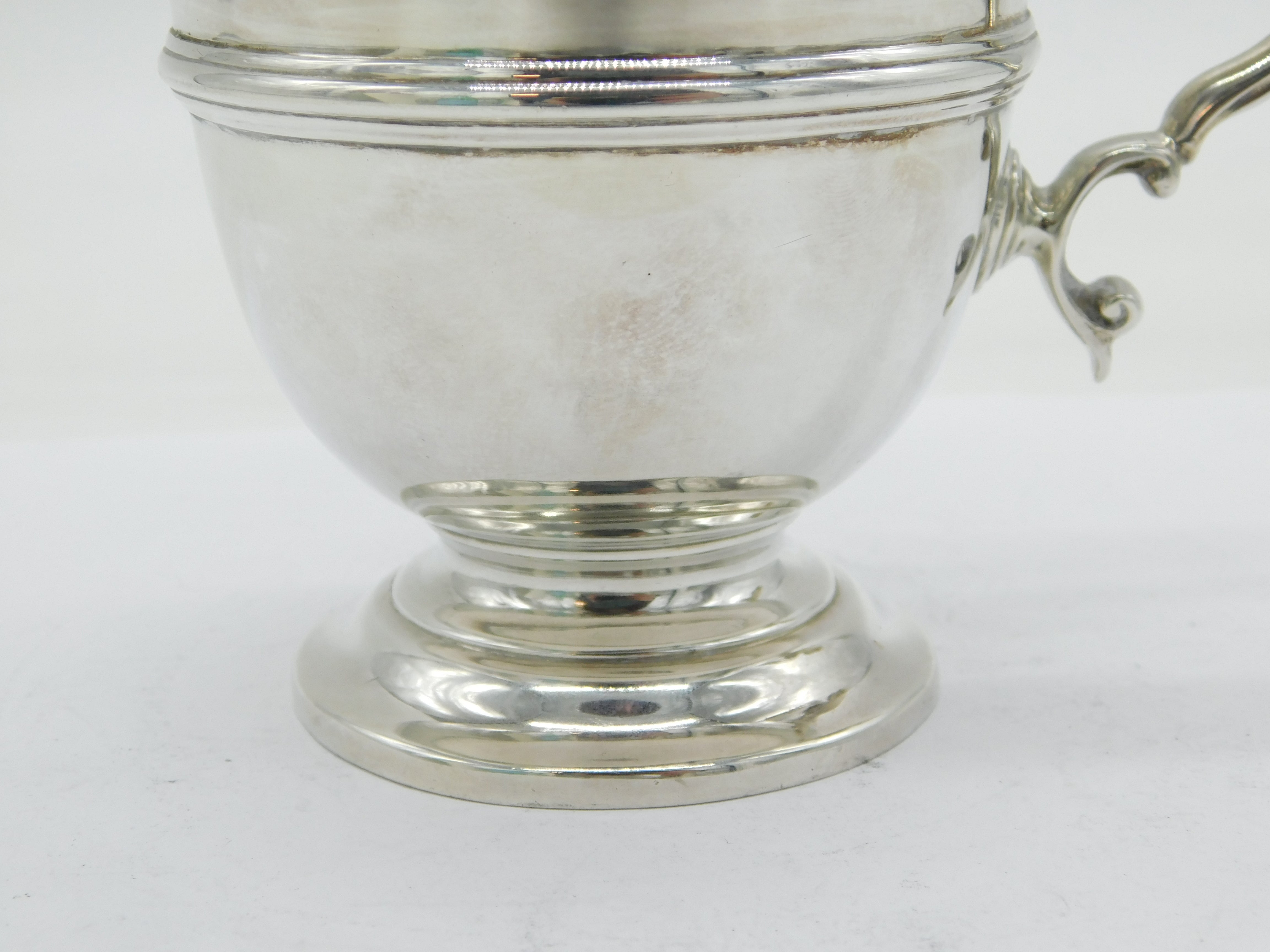 Details: A fantastic and wonderfully designed antique art deco sterling silver pedestal christening mug tankard with folate handle hallmarked London 1922 by Wakely & Wheeler. This is a wonderful item that would make a perfect gift or addition to any collection. We are more than happy to provide XRF reports for items upon request.