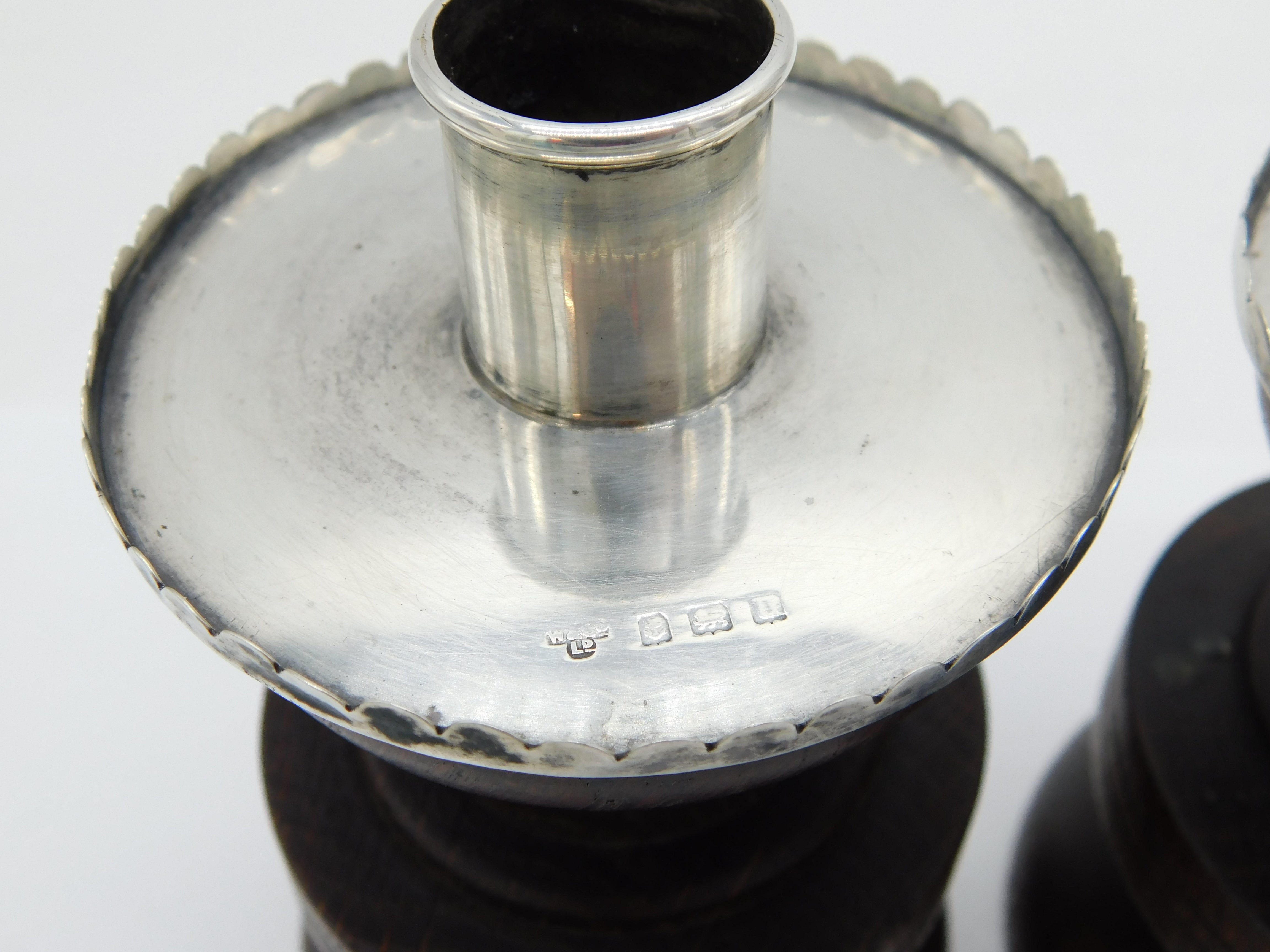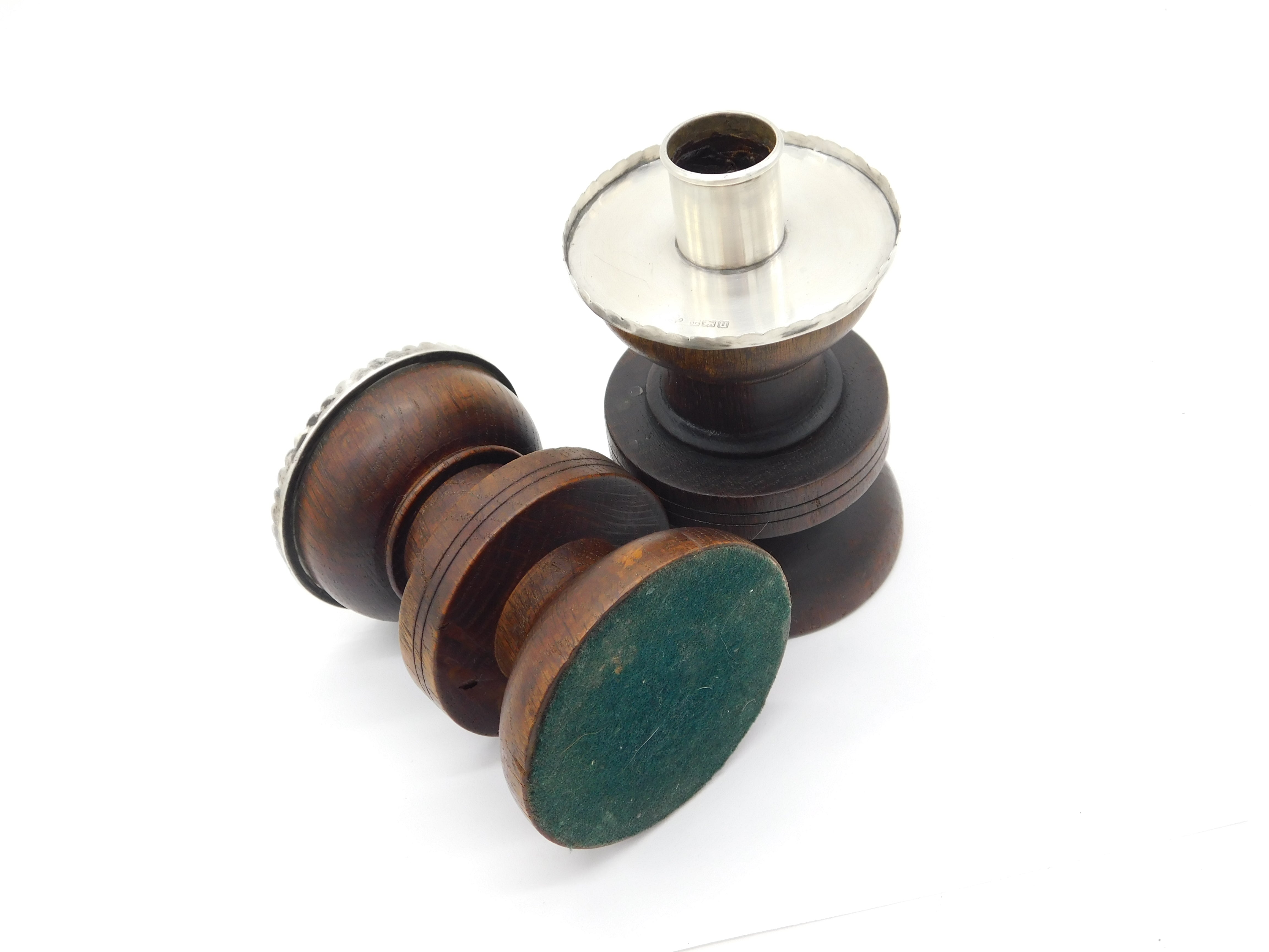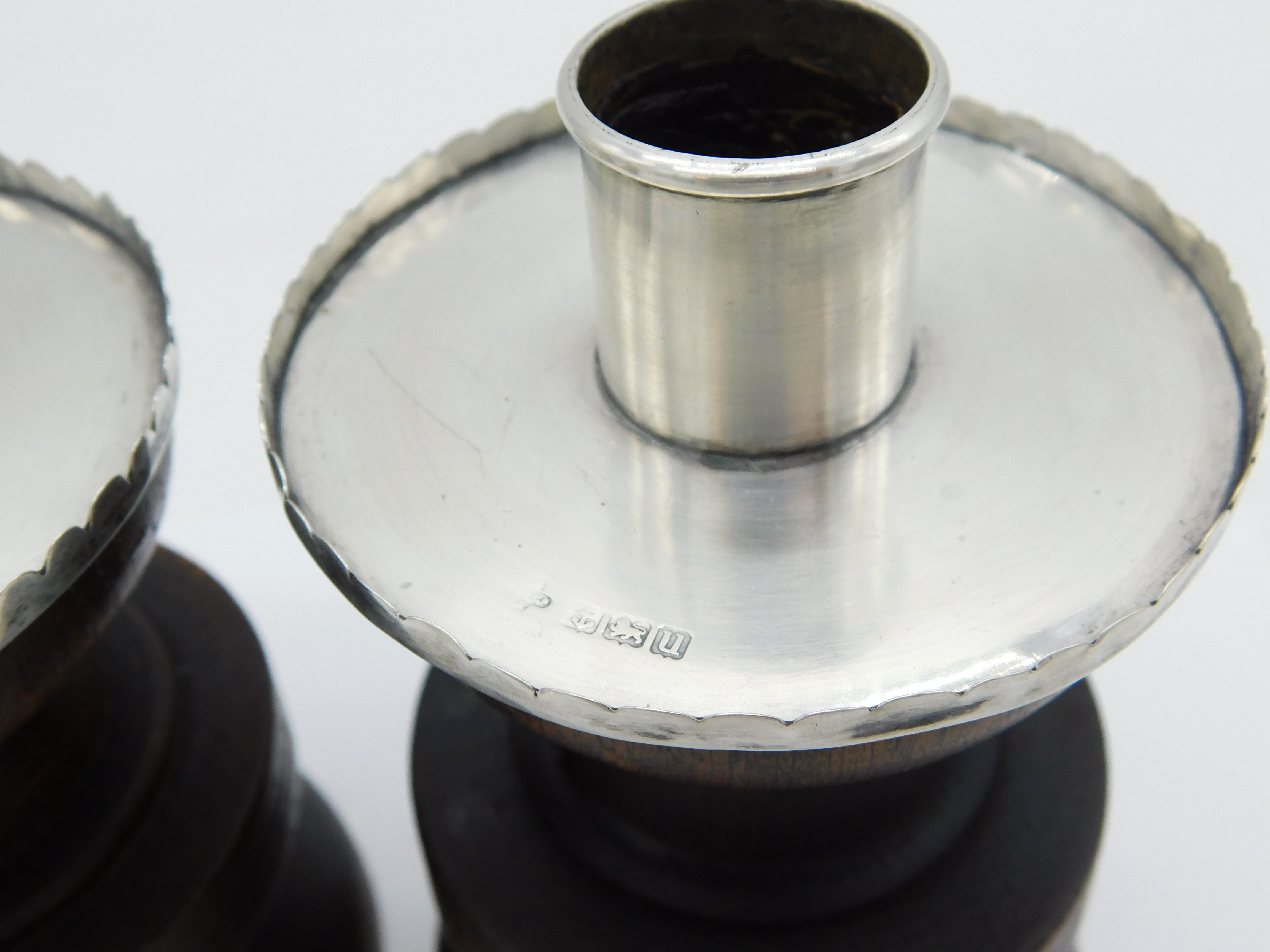 Sterling Silver & Turned Wooden Modernist Candlesticks Antique 1919 Birmingham