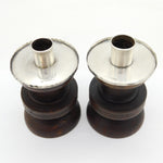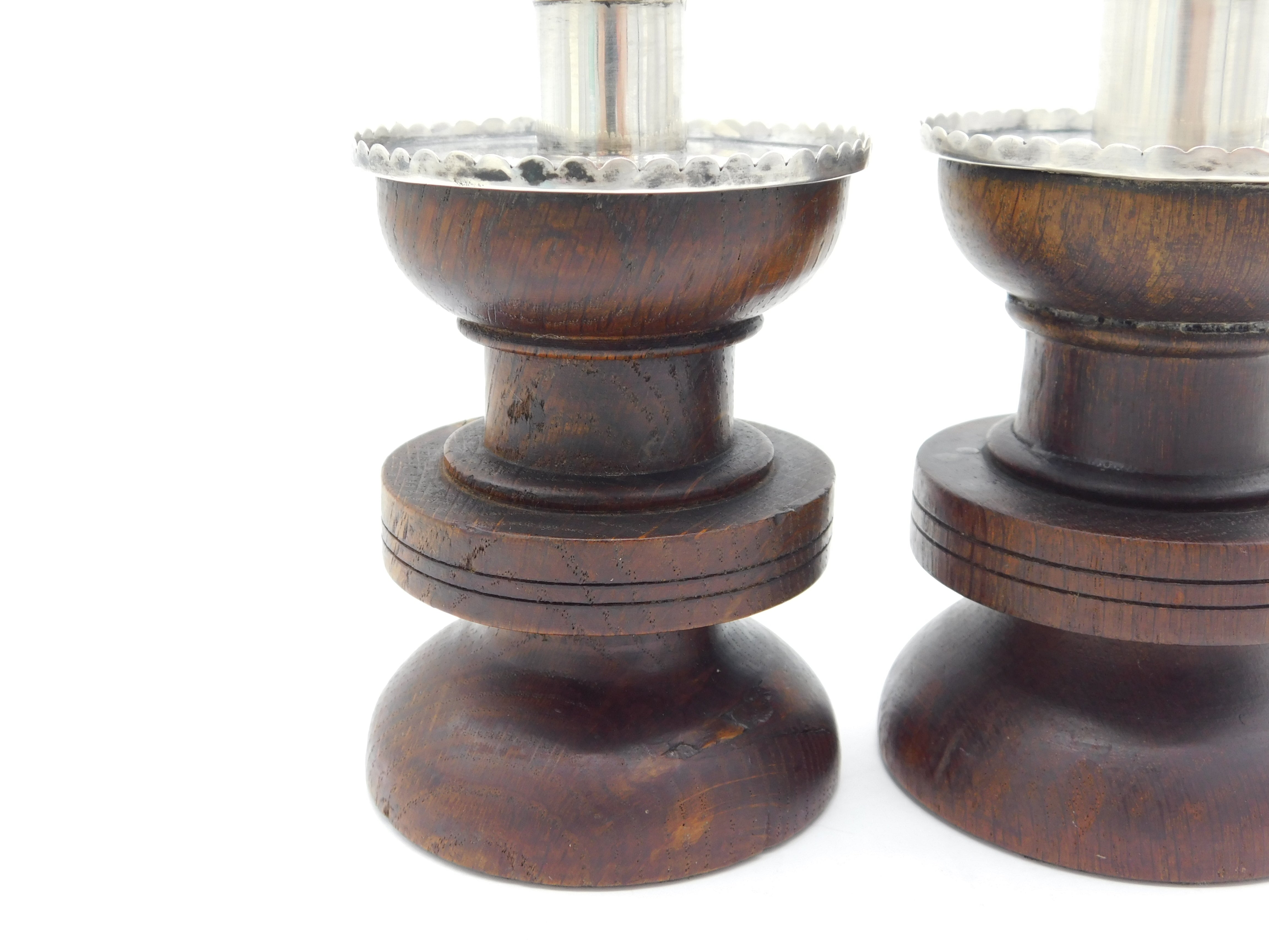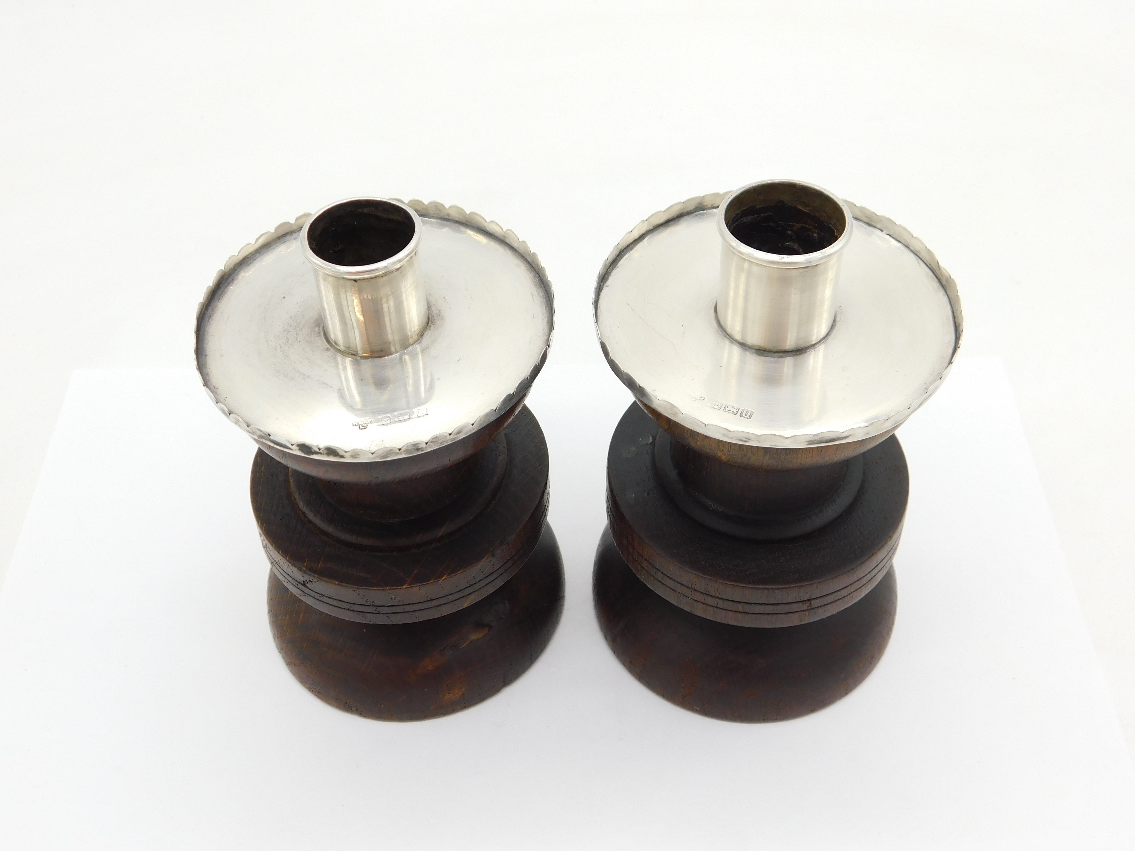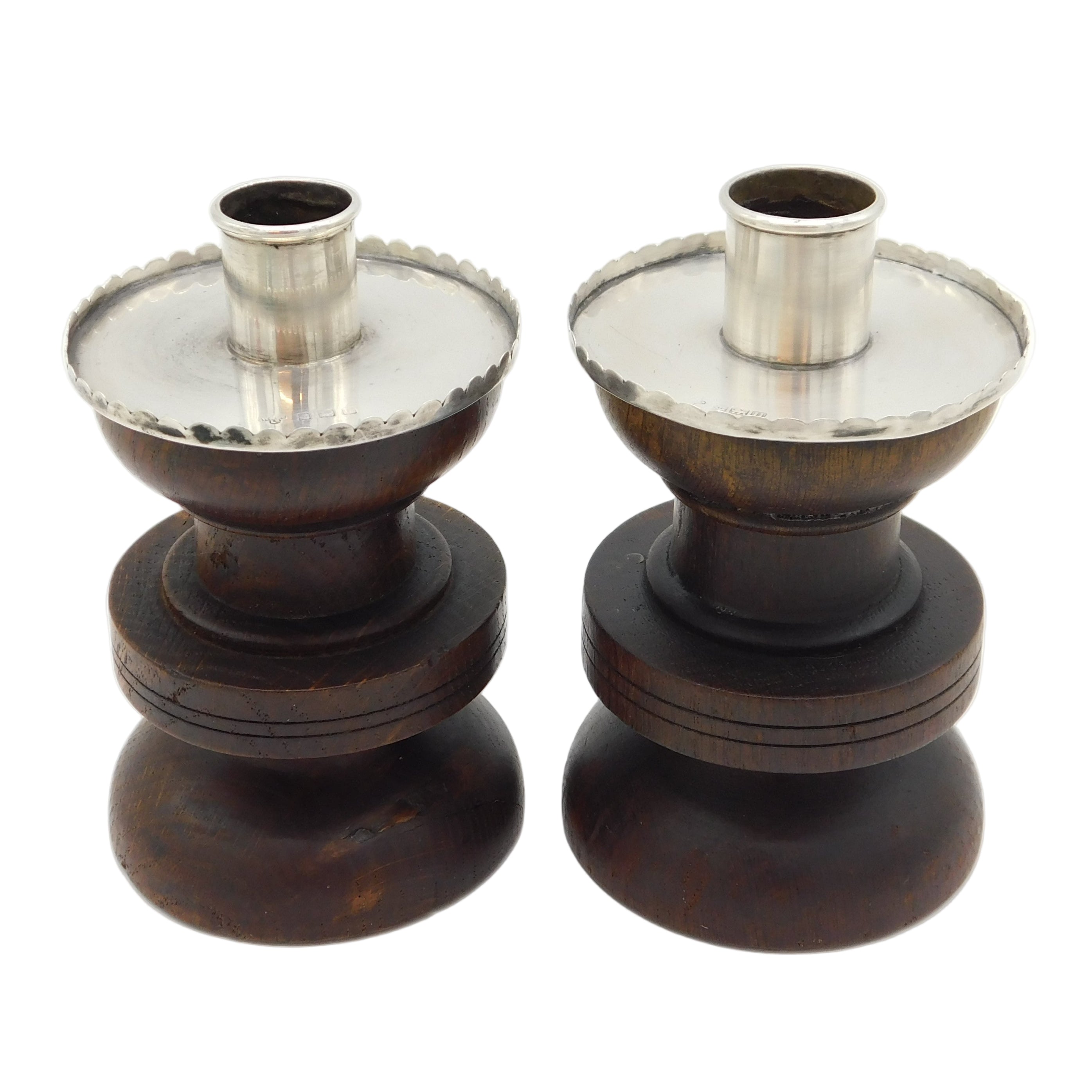 Sterling Silver & Turned Wooden Modernist Candlesticks Antique 1919 Birmingham