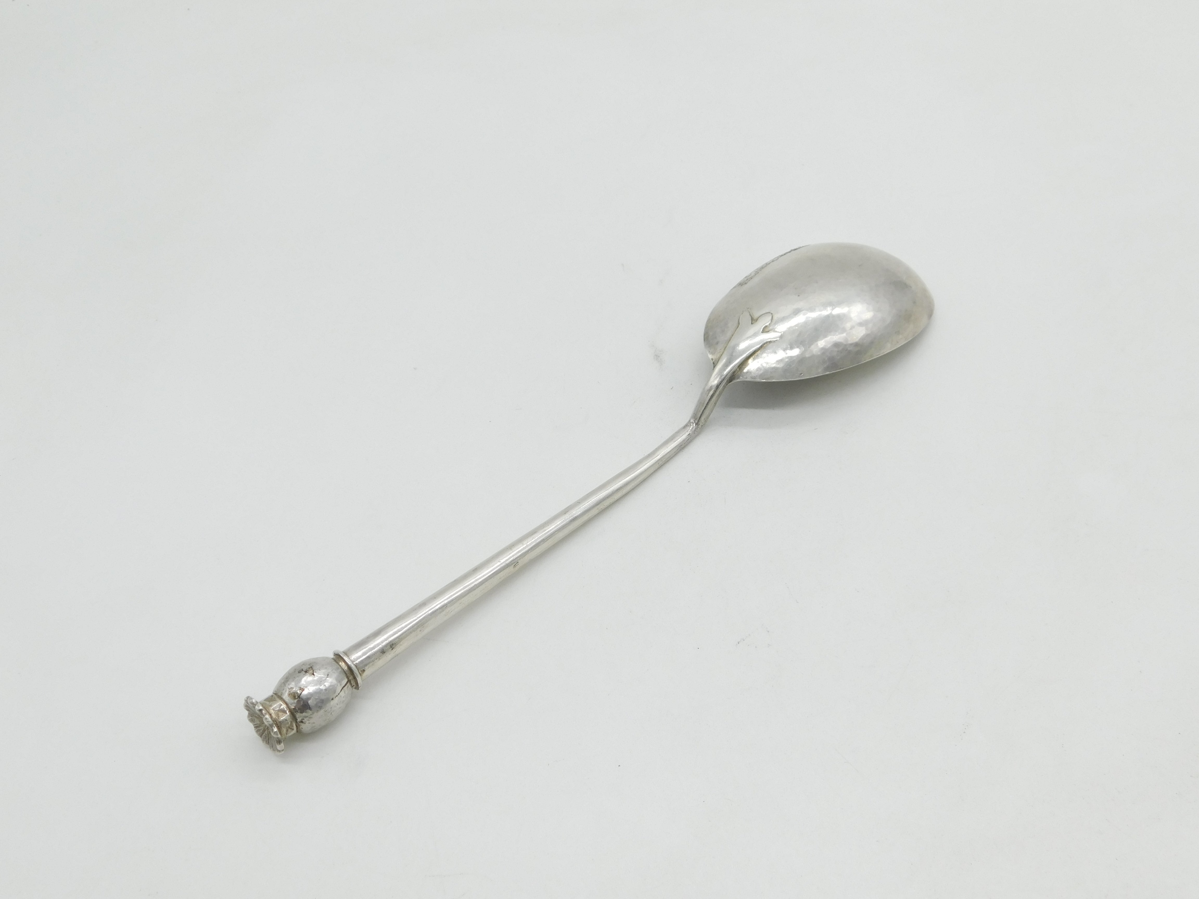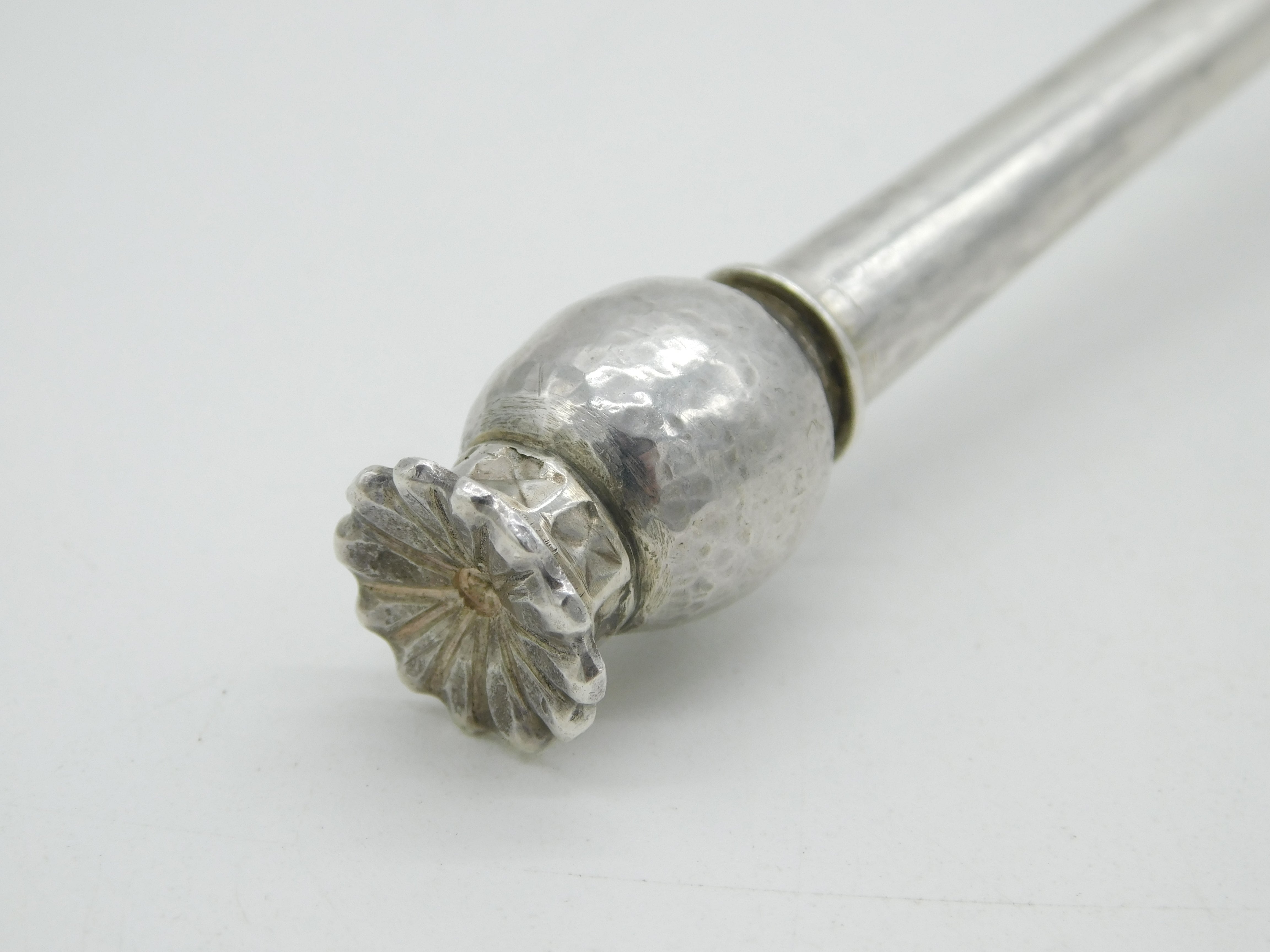 Studio Sterling Silver Poppy Pattern Arts & Crafts Planished Spoon Vintage 1988 London