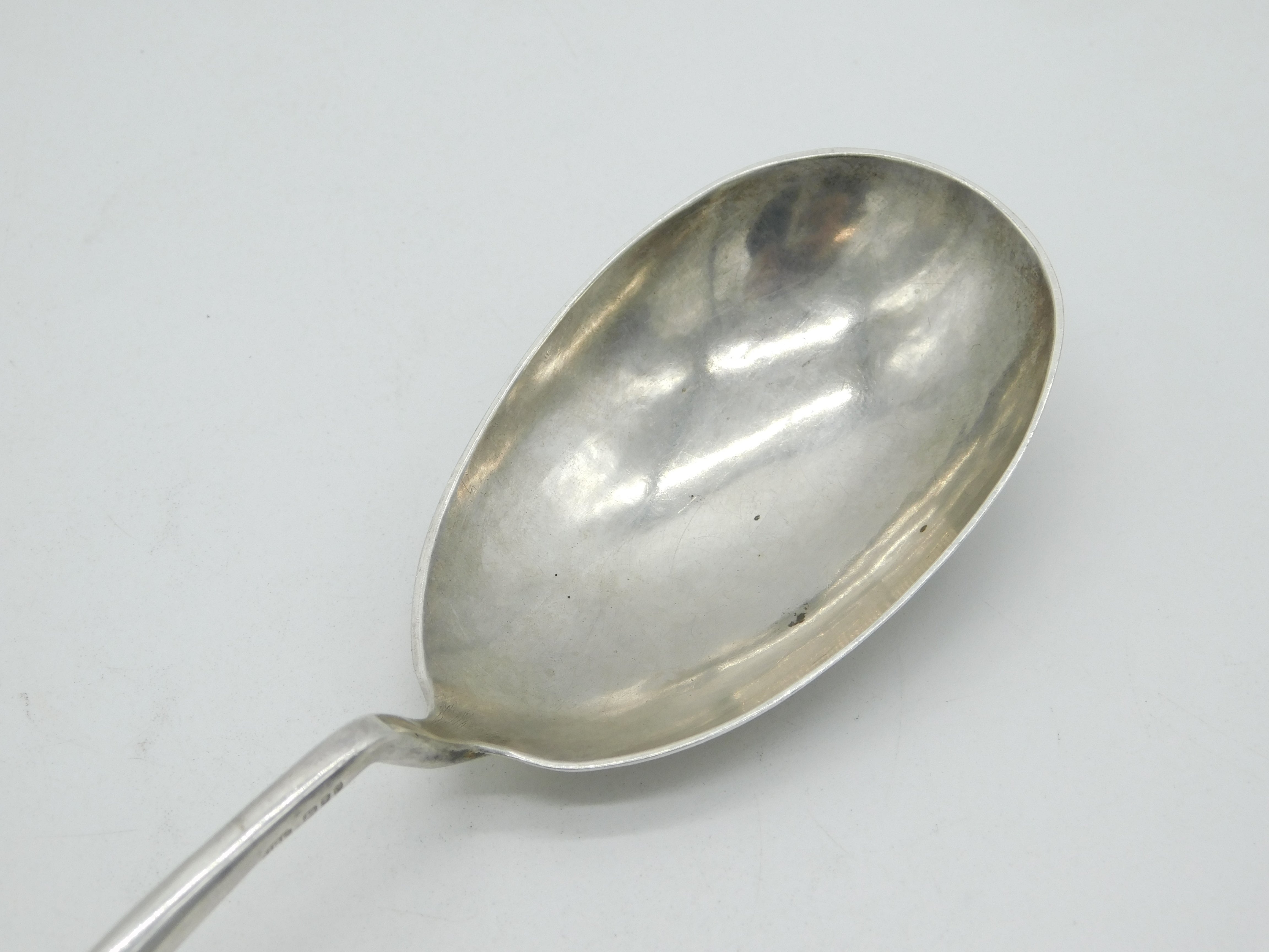Details: A fantastic and wonderfully designed vintage arts & crafts style studio sterling silver planished serving spoon with poppy style terminal hallmarked London 1988 by Joseph Roy Parker. This is a wonderful item that would make a perfect gift or addition to any collection. We are more than happy to provide XRF reports for items upon request.