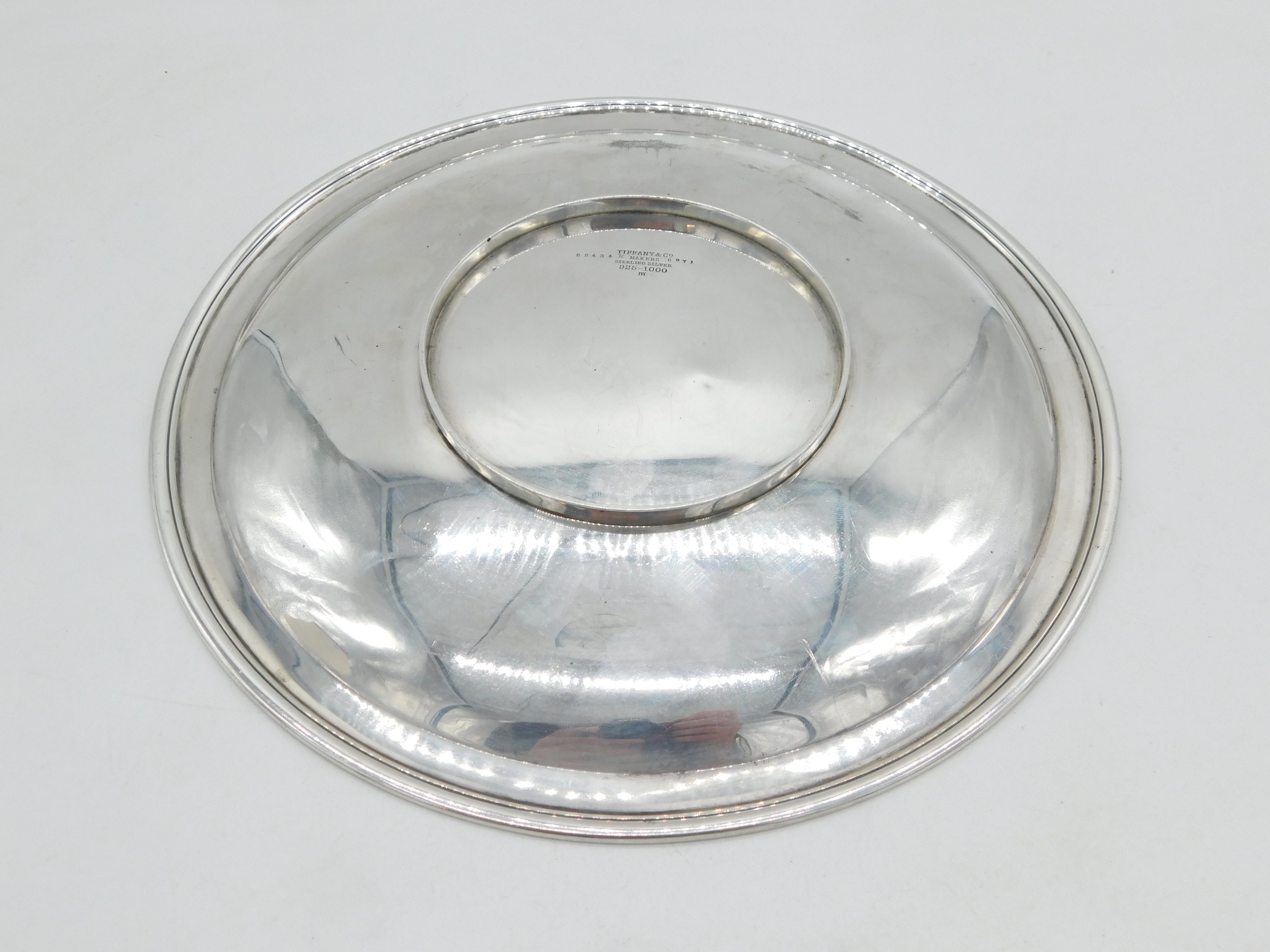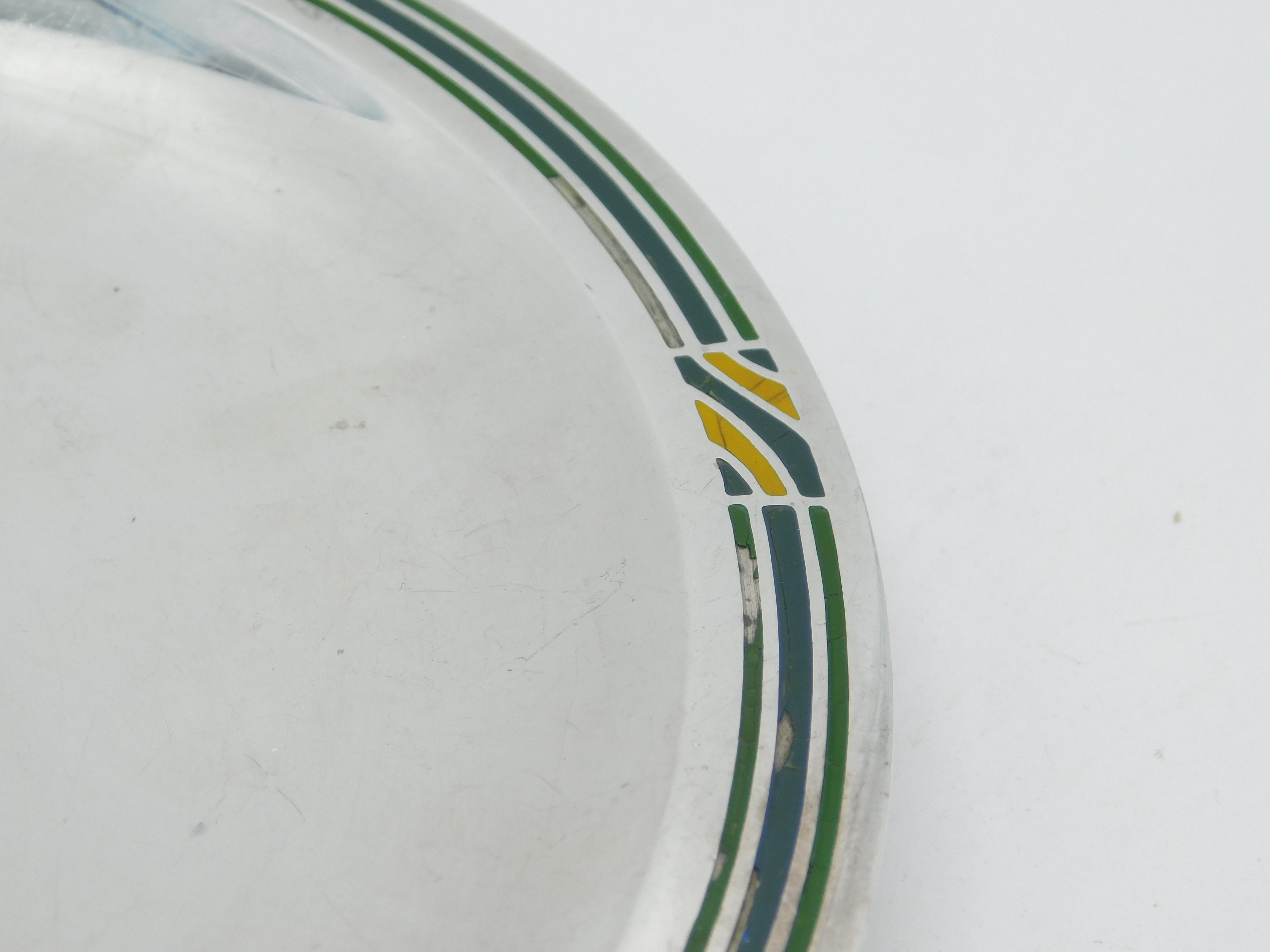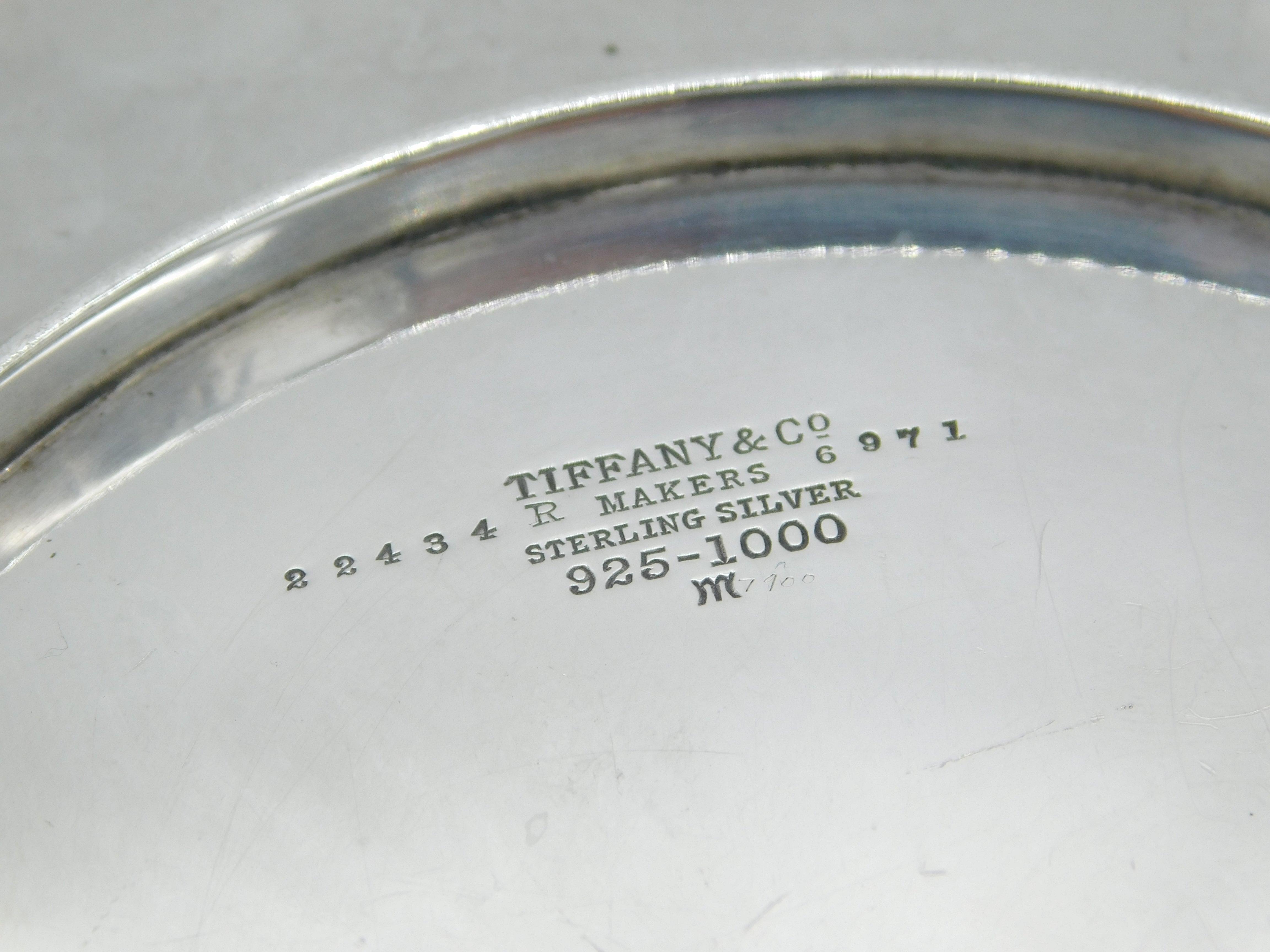 Details: A fantastic and wonderfully designed antique art deco Tiffany & Co. sterling silver & yellow-green enamel dinner plate with charming monogram initials to the centre, stamped with complete Tiffany hallmarks to the reverse - Pattern 6971 during the tenure of John C. Moore II c1920s. Minor wearing to the enamel in areas and dent next to the central initials please note. The item does not appear in the Tiffany public records and may be a commision example. This is a wonderful item that would make a perfect gift or addition to any collection.