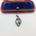 TLM Sterling Silver & Morpho Butterfly Wing Tropical Island Drop Pendant Antique