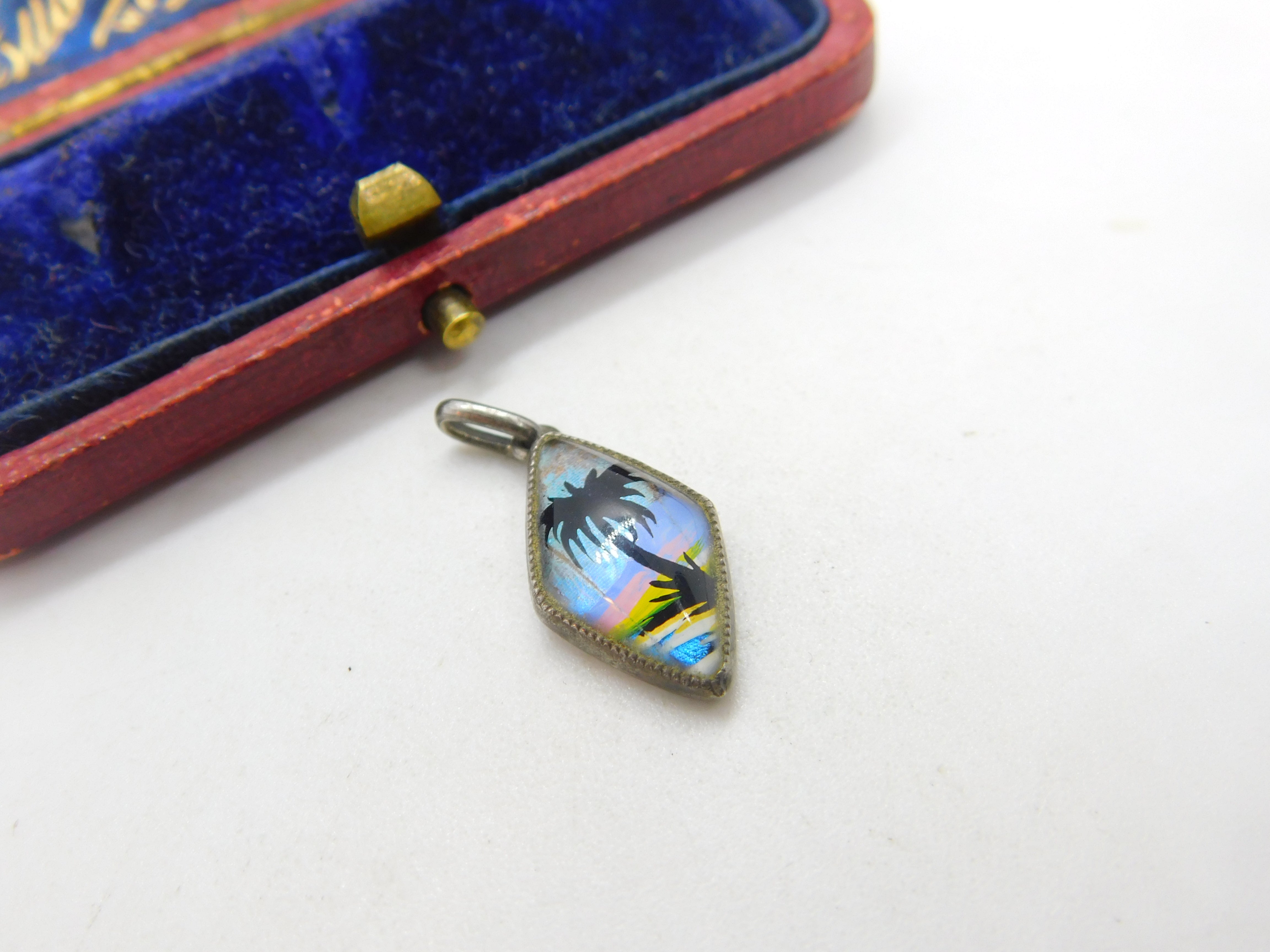 Details: A fantastic and wonderfully designed antique art deco sterling silver Morpho Butterfly wing drop pendant in the form of a tropical island hallmarked to the reverse by TLM c1920. This is a wonderful item that would make a perfect gift or addition to any collection. The BOX pictured is for PRESENTATION ONLY and is NOT included in the listings but used to frame the pictures unless specifically stated otherwise.