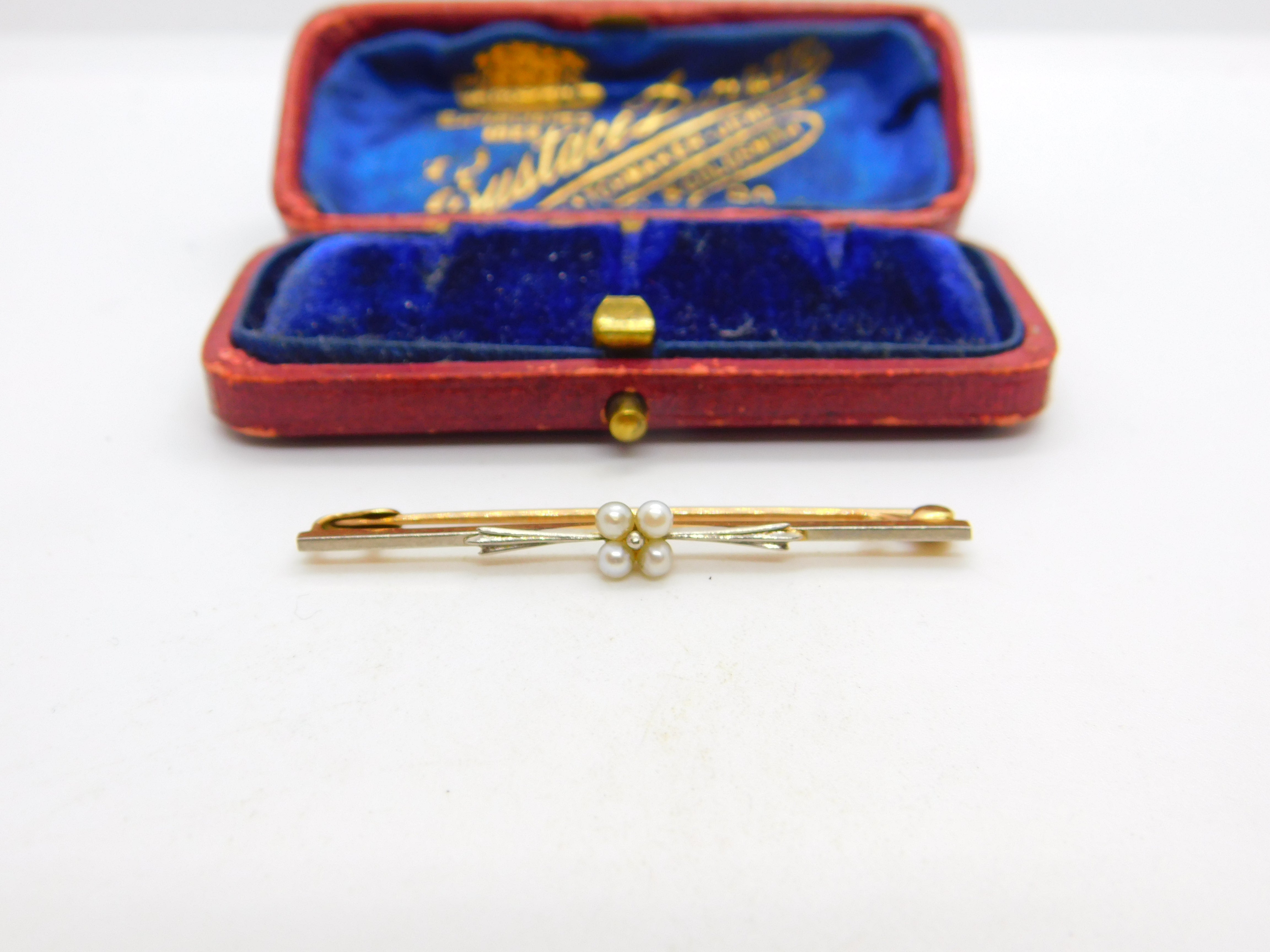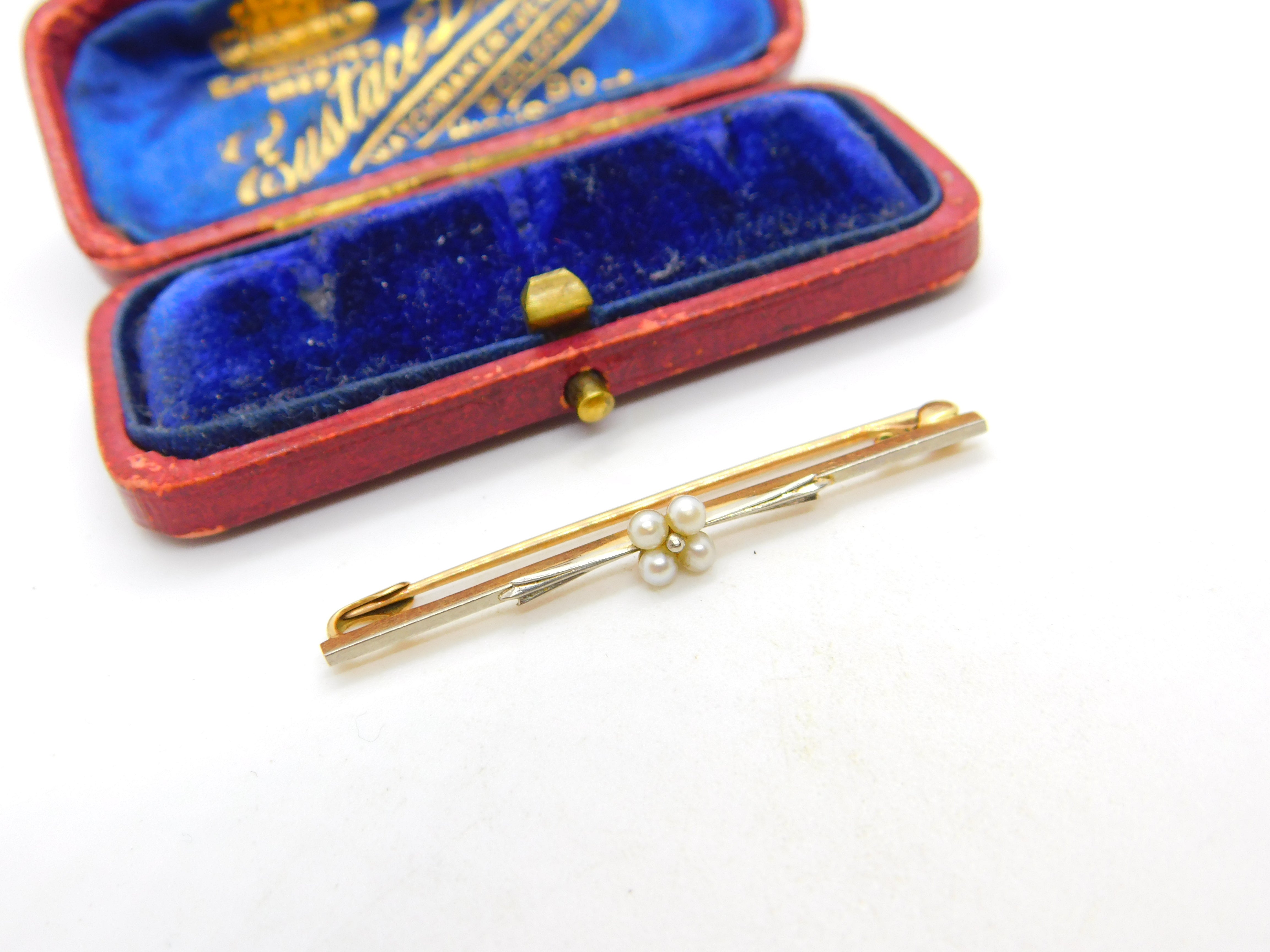Details: A fantastic and wonderfully designed antique Victorian 15ct yellow gold bar brooch set with floral seed pearls adorned with platinum to the front c1890. Hallmarked to the reverse 15ct. This is a wonderful item that would make a perfect gift or addition to any collection. The BOX pictured is for PRESENTATION ONLY and is NOT included in the listings but used to frame the pictures unless specifically stated otherwise.