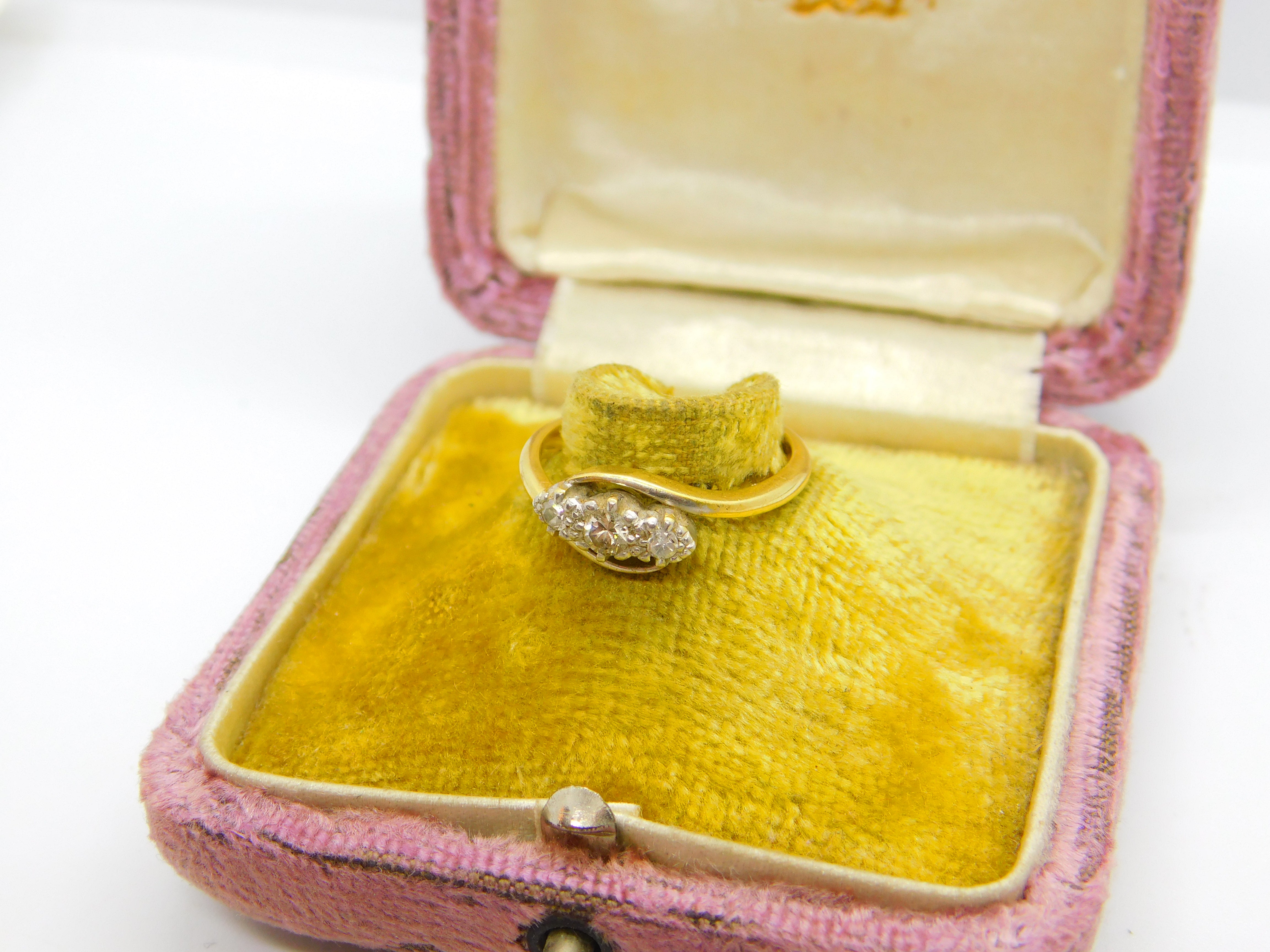 Victorian 18ct Yellow Gold & 0.2ct Diamond Crossover Ring Antique c1890