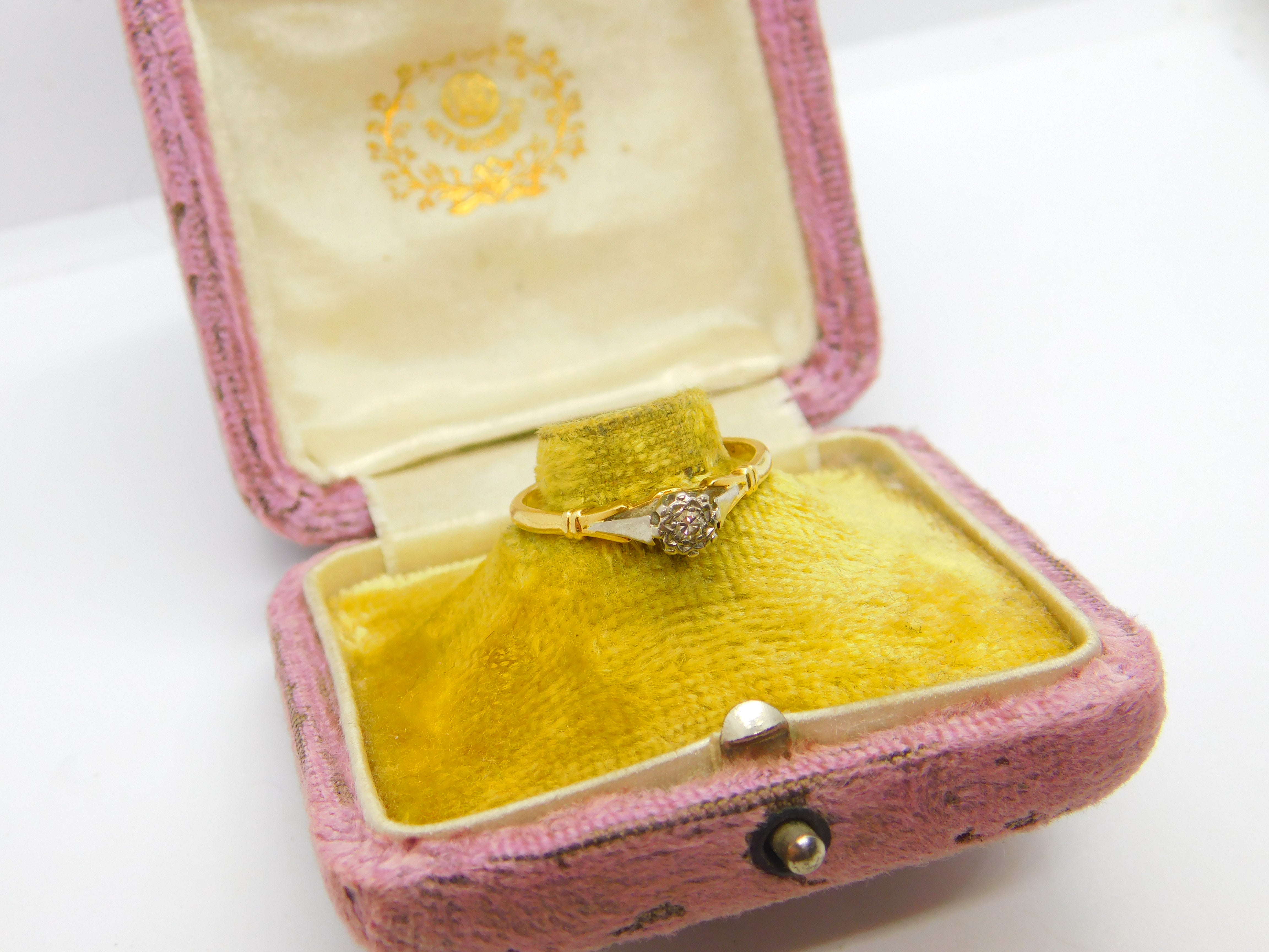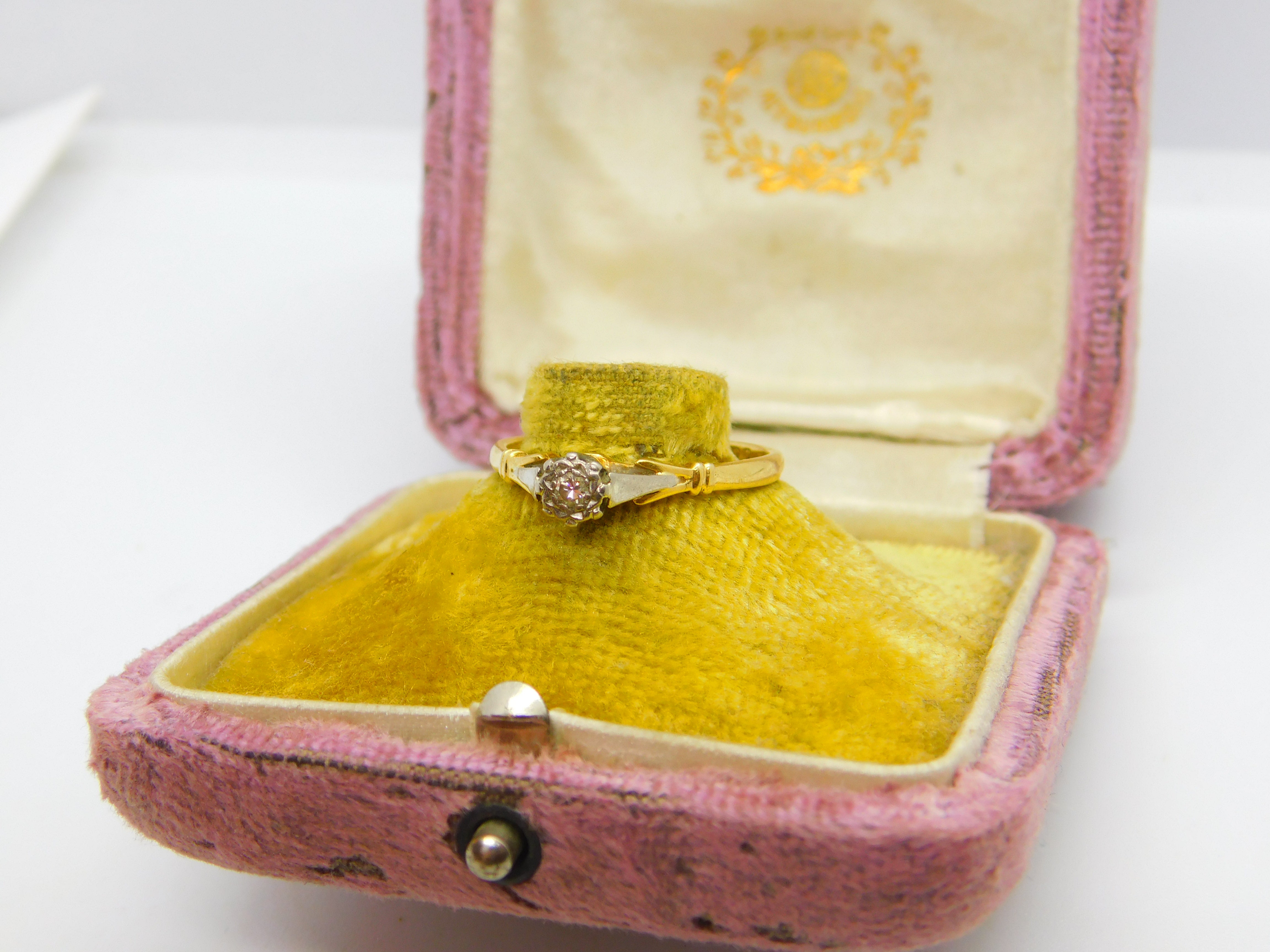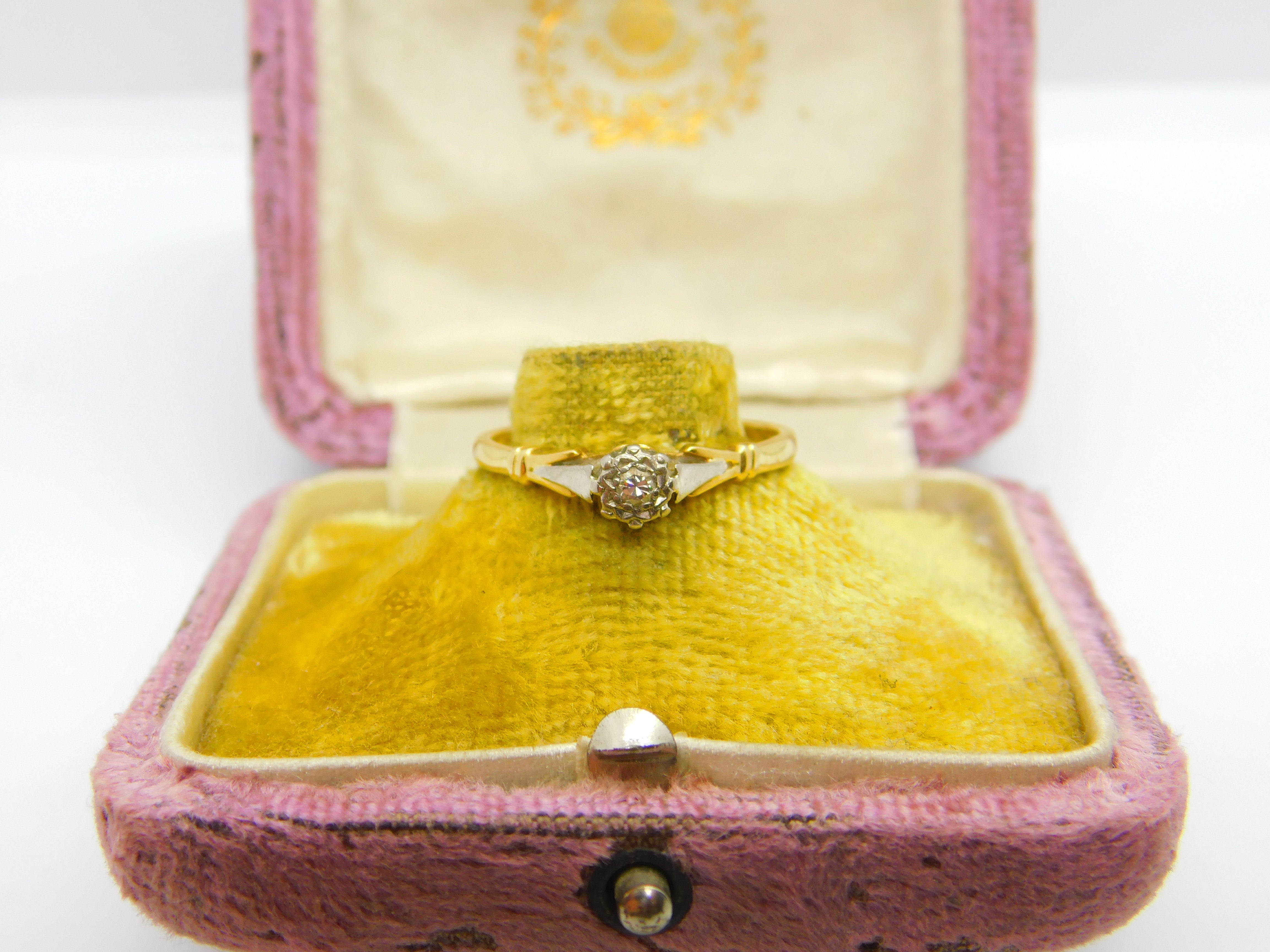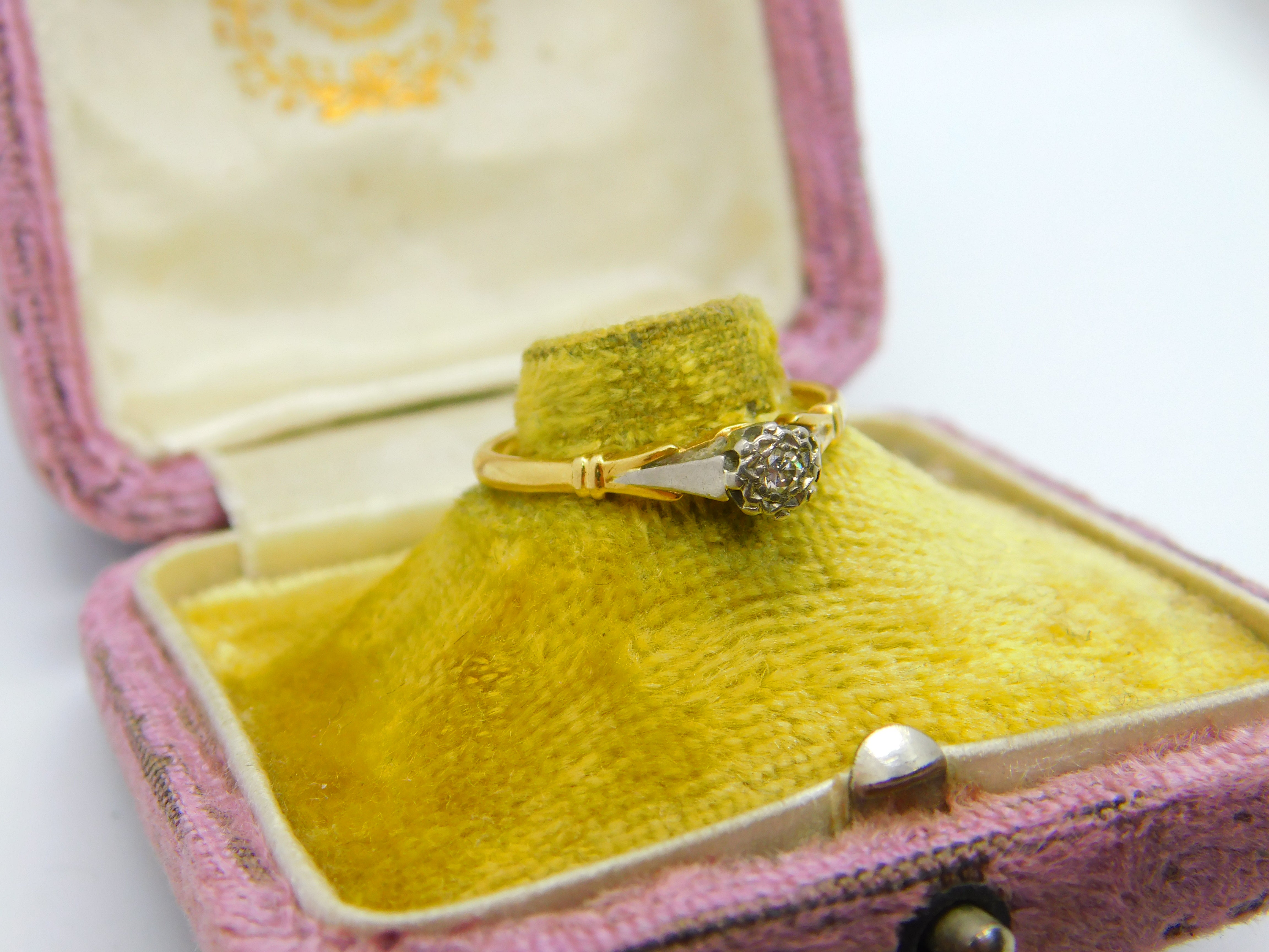 Victorian 18ct Yellow Gold, Platinum Set 0.1ct Diamond Solitaire Ring c1890