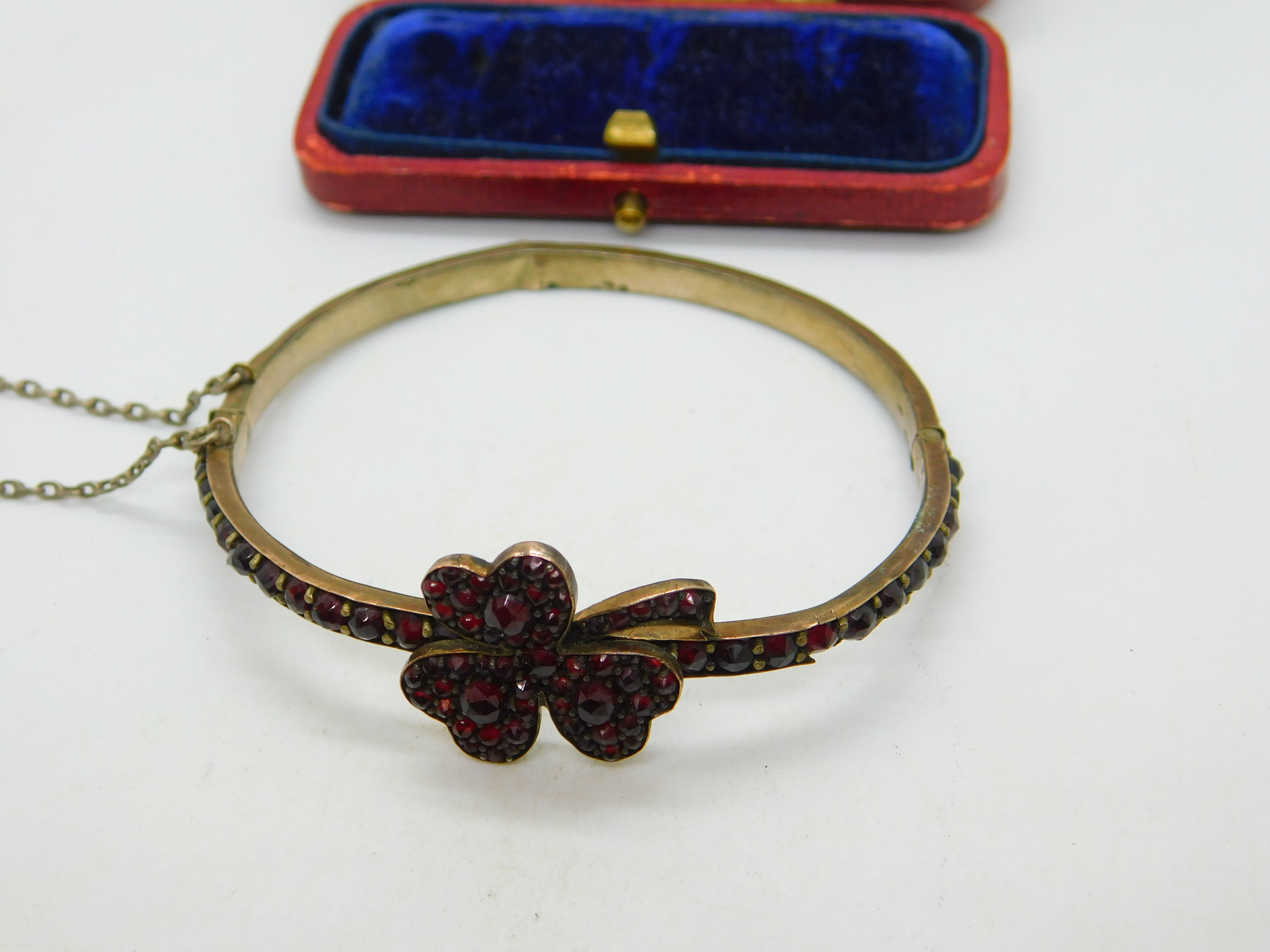 Victorian 8ct Gold & Bohemian Garnet Austro-Hungarian Shamrock Bangle c1860