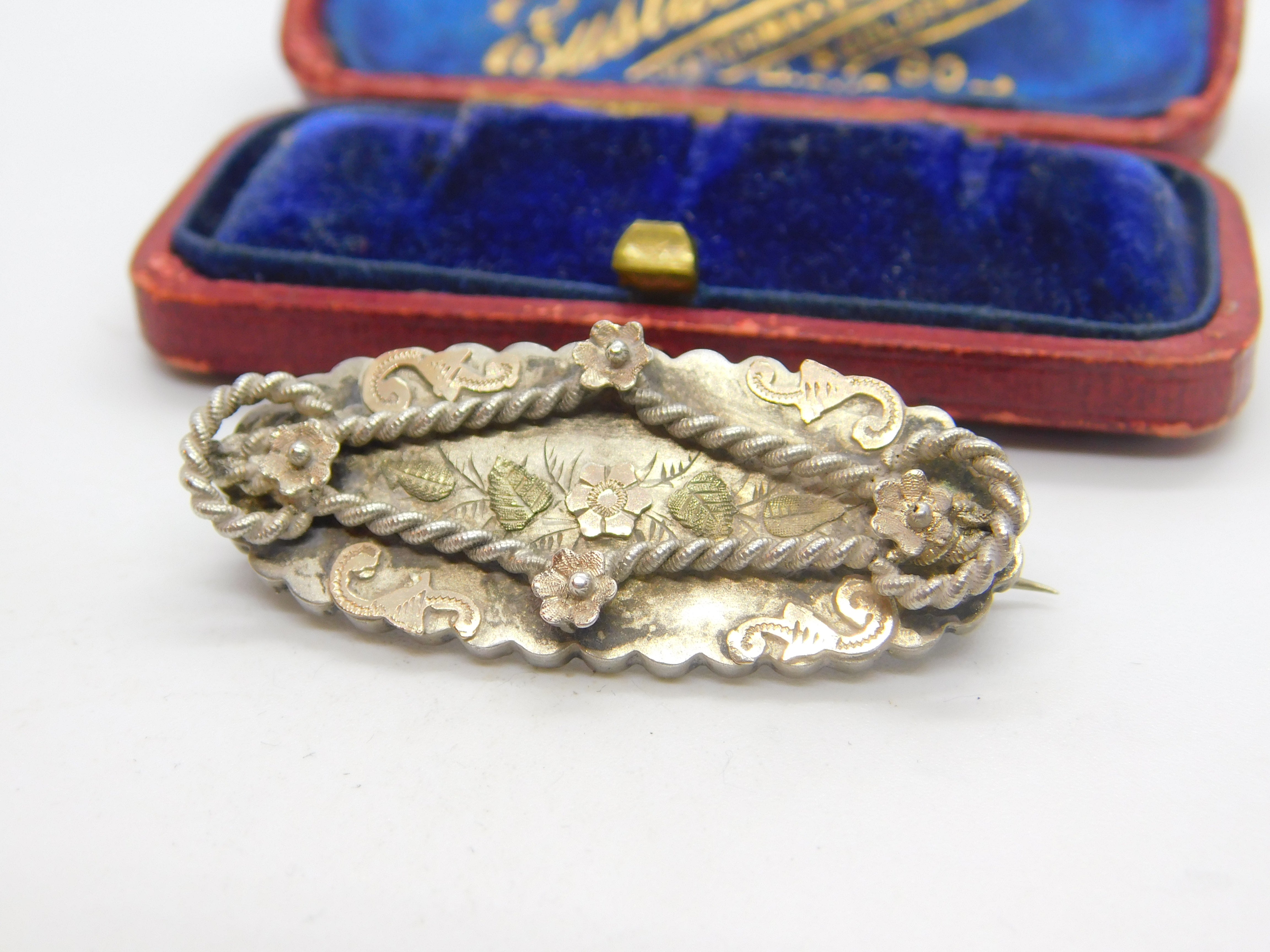 Victorian 9ct Gold on Sterling Silver Sweetheart Floral Brooch 1901 Birmingham
