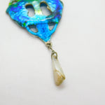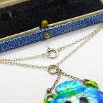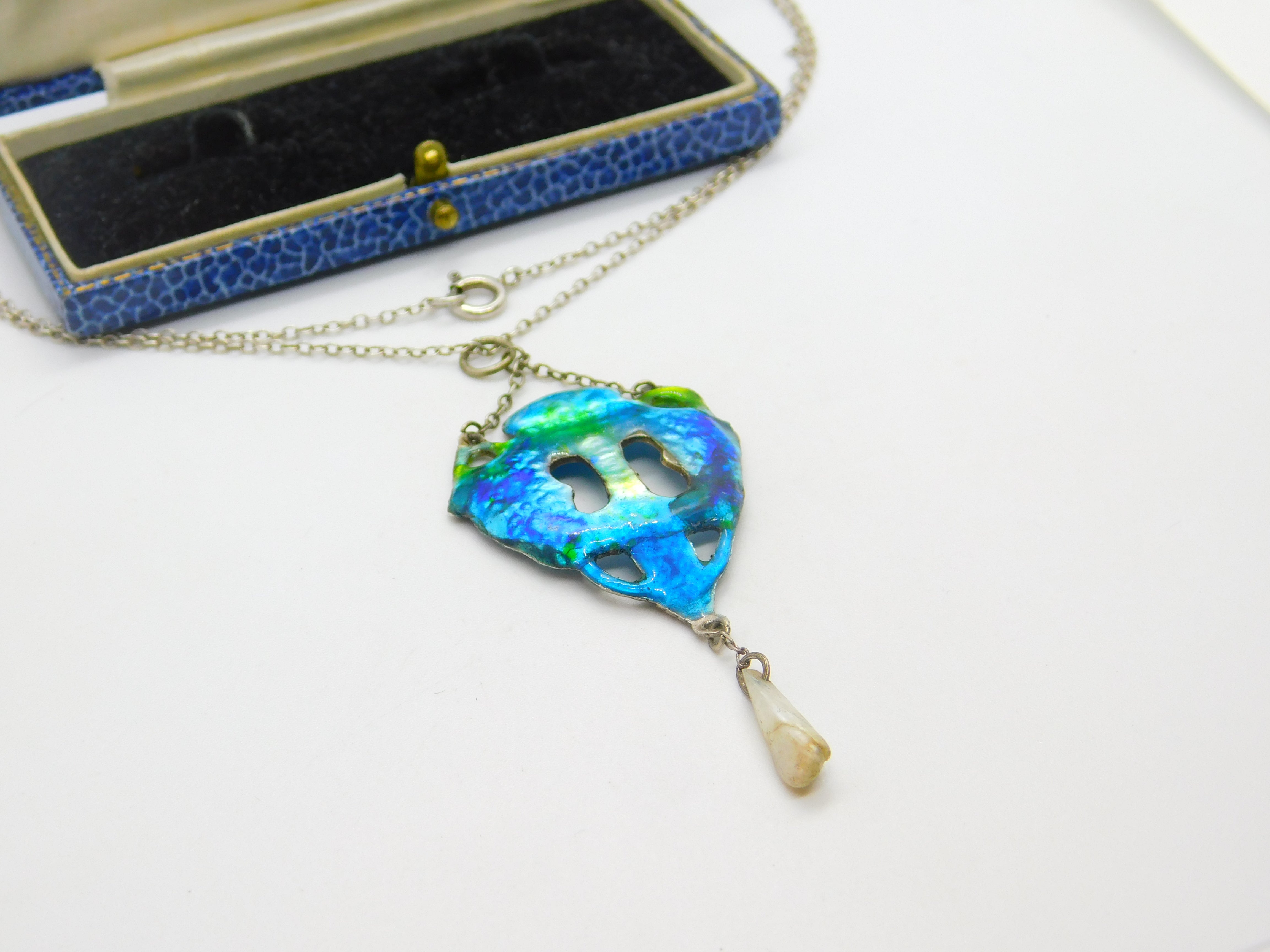 Victorian Art Nouveau Sterling Silver & Blue-Green Enamel Pearl Drop Pendant c1890