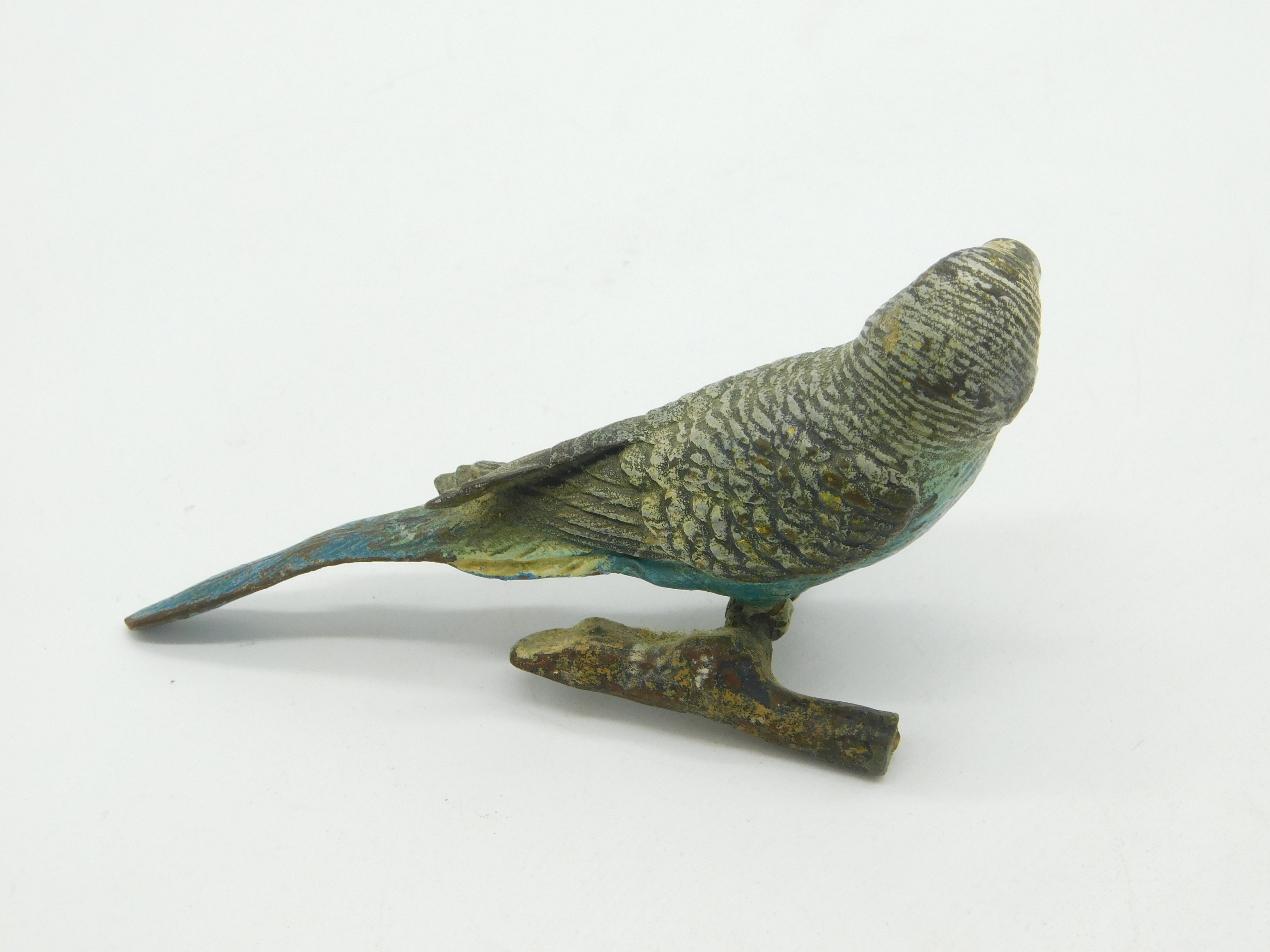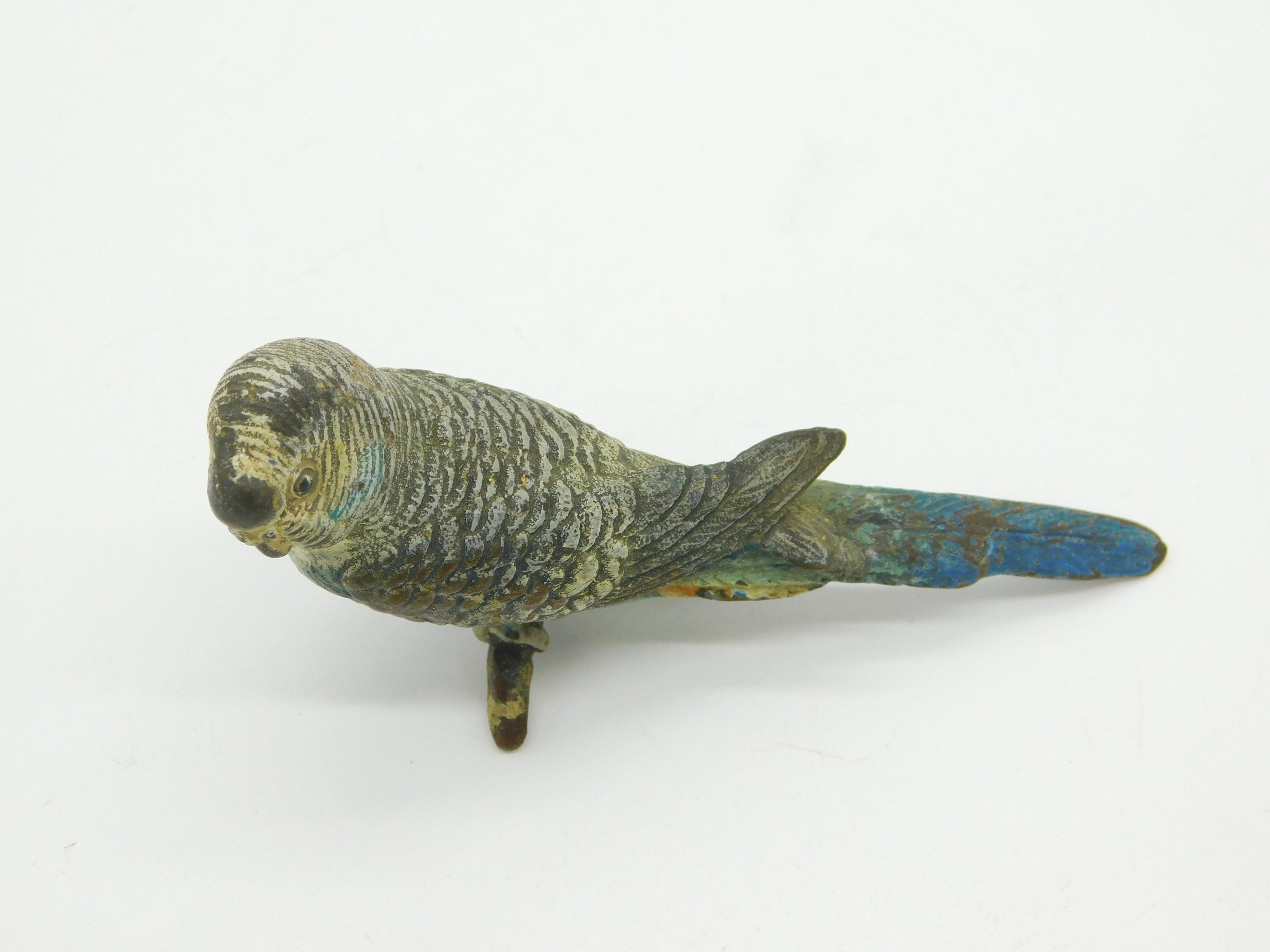 Victorian Cold Painted Vienna Bronze Blue Budgerigar Figure Antique c1860