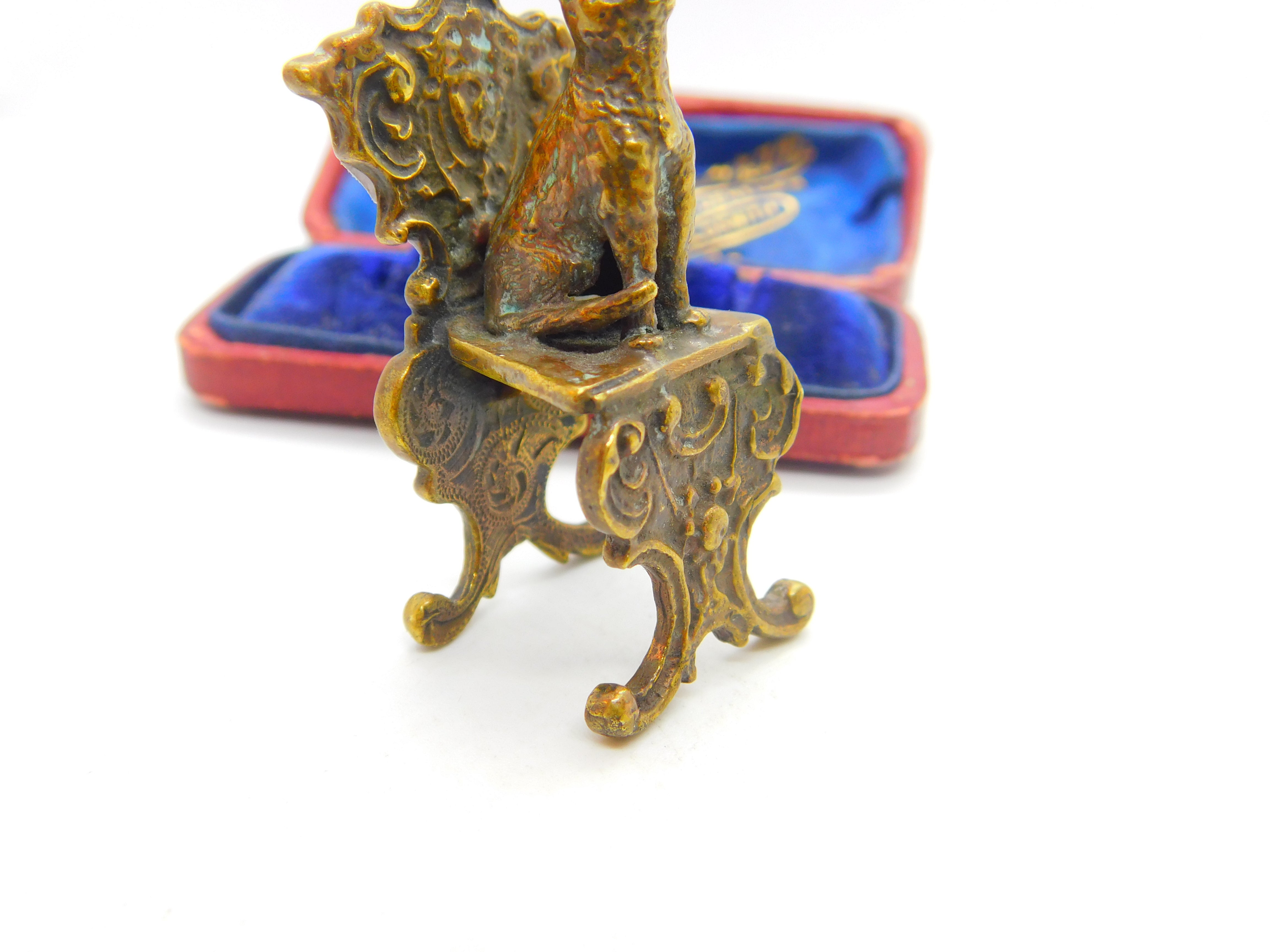 Victorian Cold Painted Vienna Bronze Cat on a Throne Figure Antique c1860