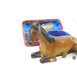 Details: A fantastic and wonderfully designed antique Victorian cold painted Vienna bronze figurine sculpture of a sitting horse possibly a foal with lovely colour and detailing throughout especially to the face c1860. Superb condition - minor wear to the paintwork where one can see the gold of the bronze wearing through. This is a wonderful item that would make a perfect gift or addition to any collection. The BOX pictured is for PRESENTATION ONLY and is NOT included in the listings but used to frame the pictures unless specifically stated otherwise.