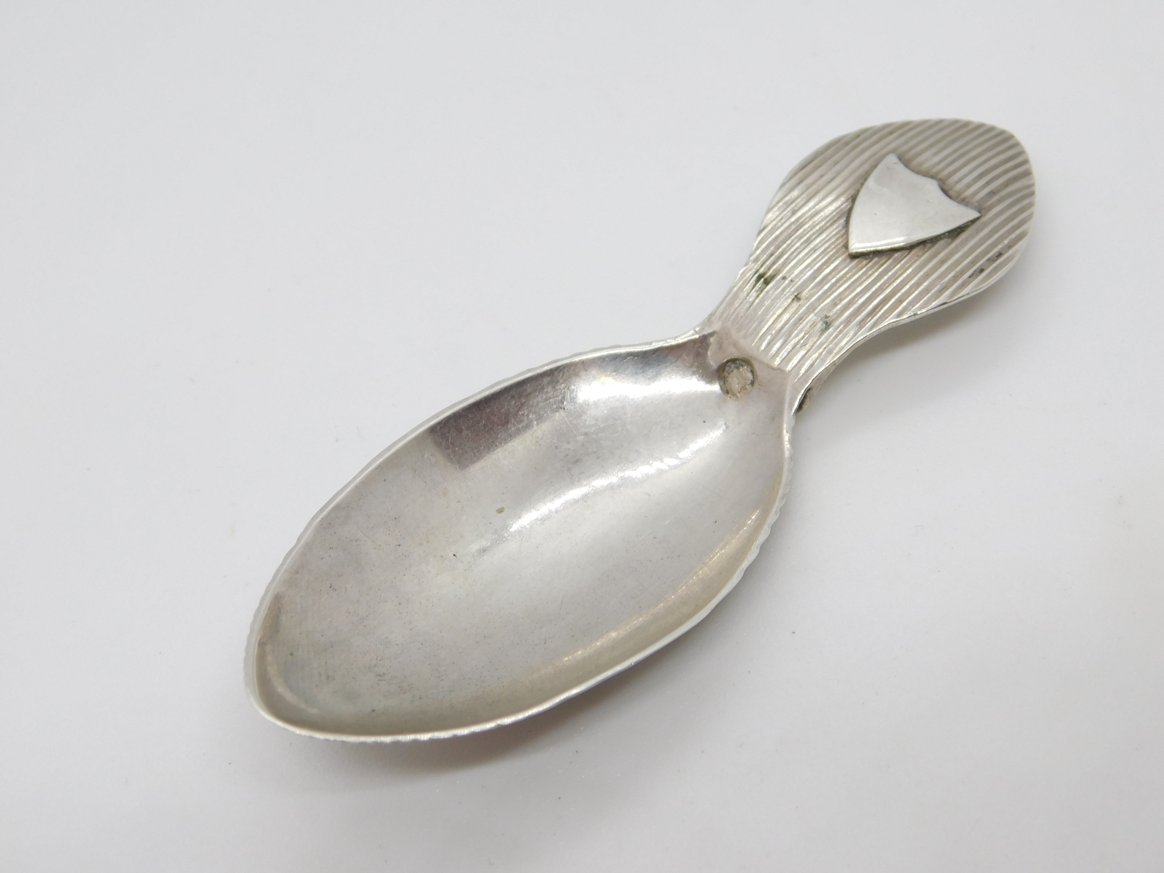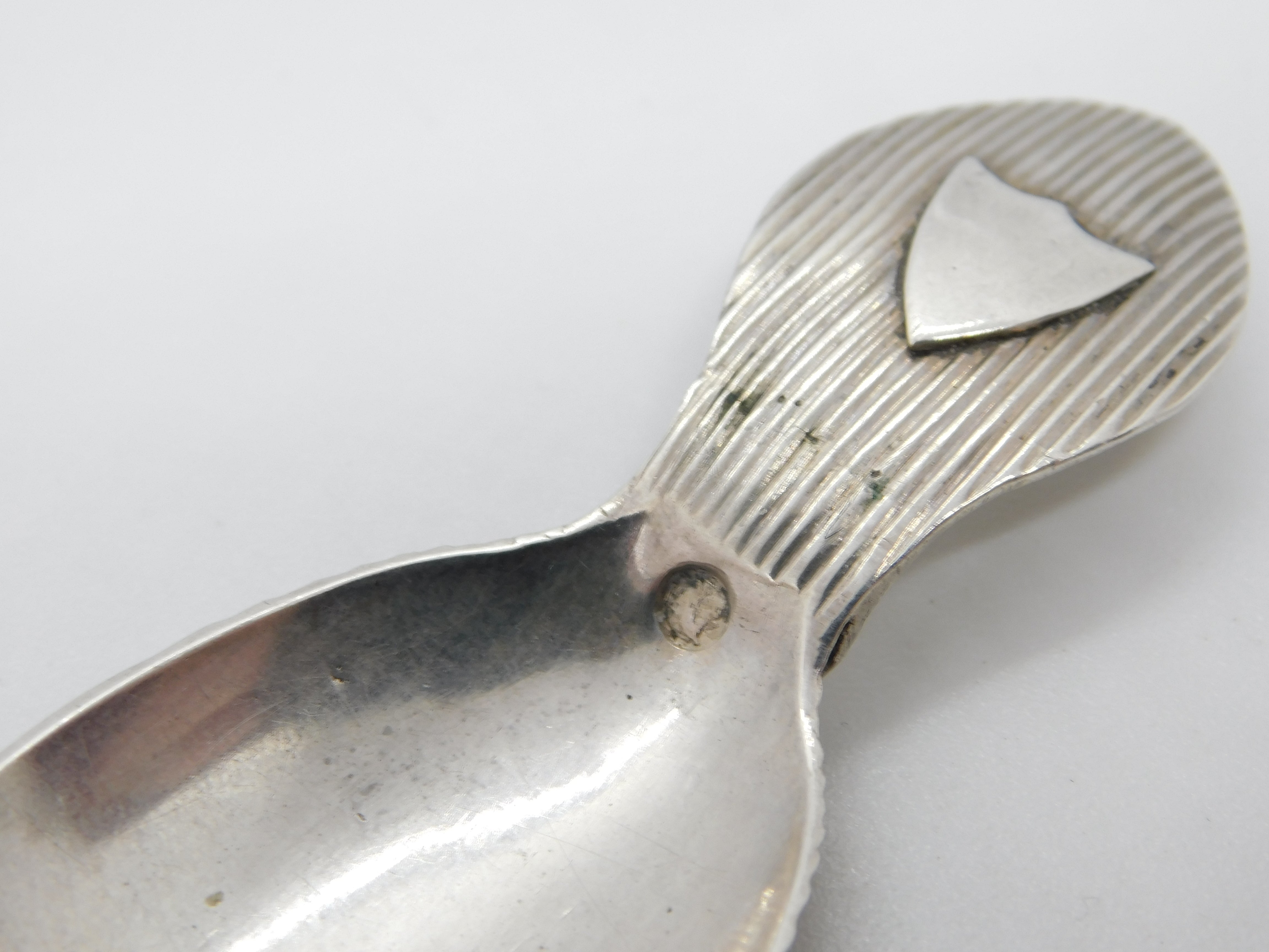 Victorian Dutch Sterling Silver Shield Cartocuhe Tea Caddy Spoon Antique c1840