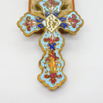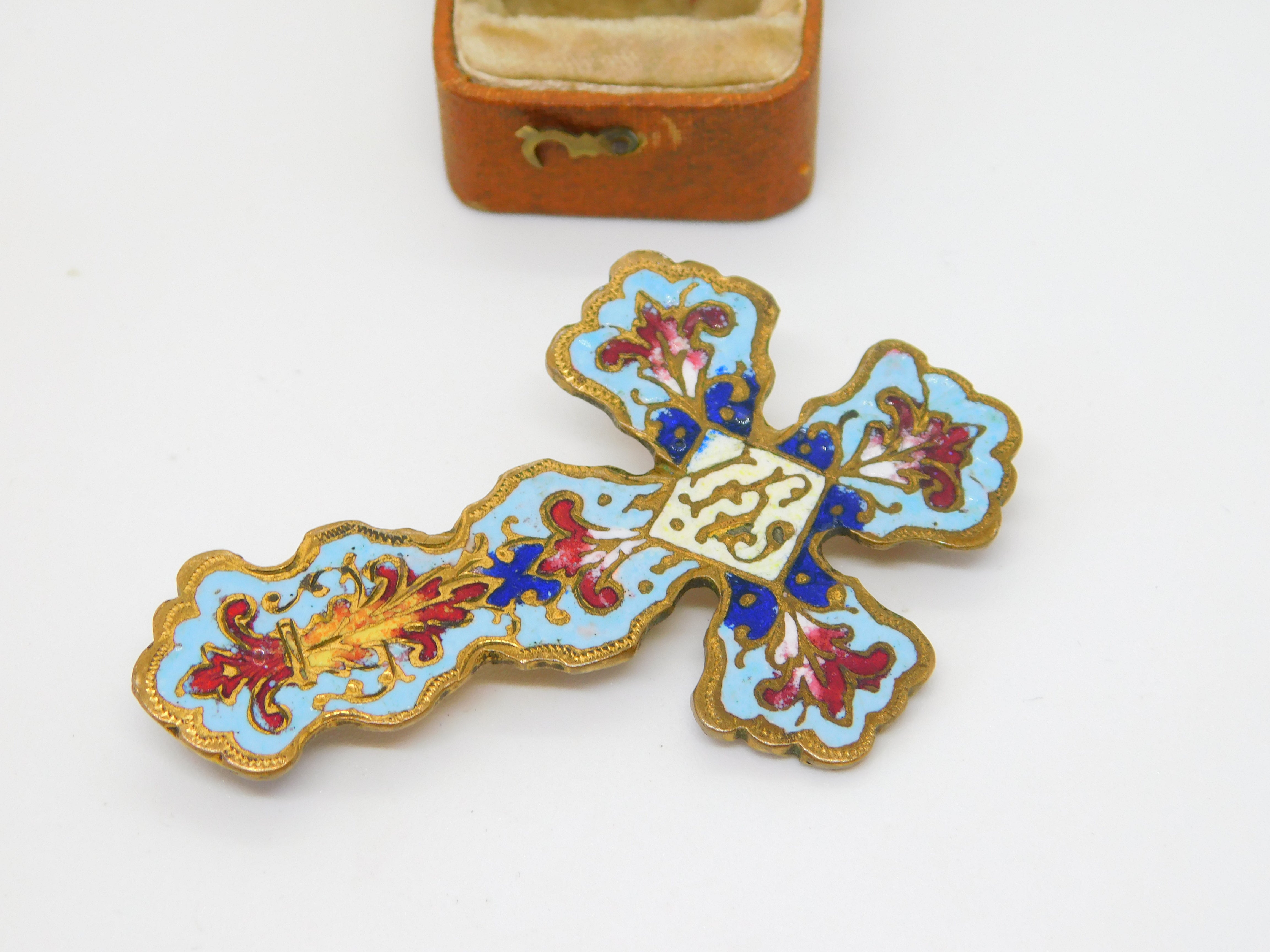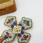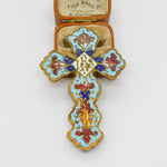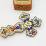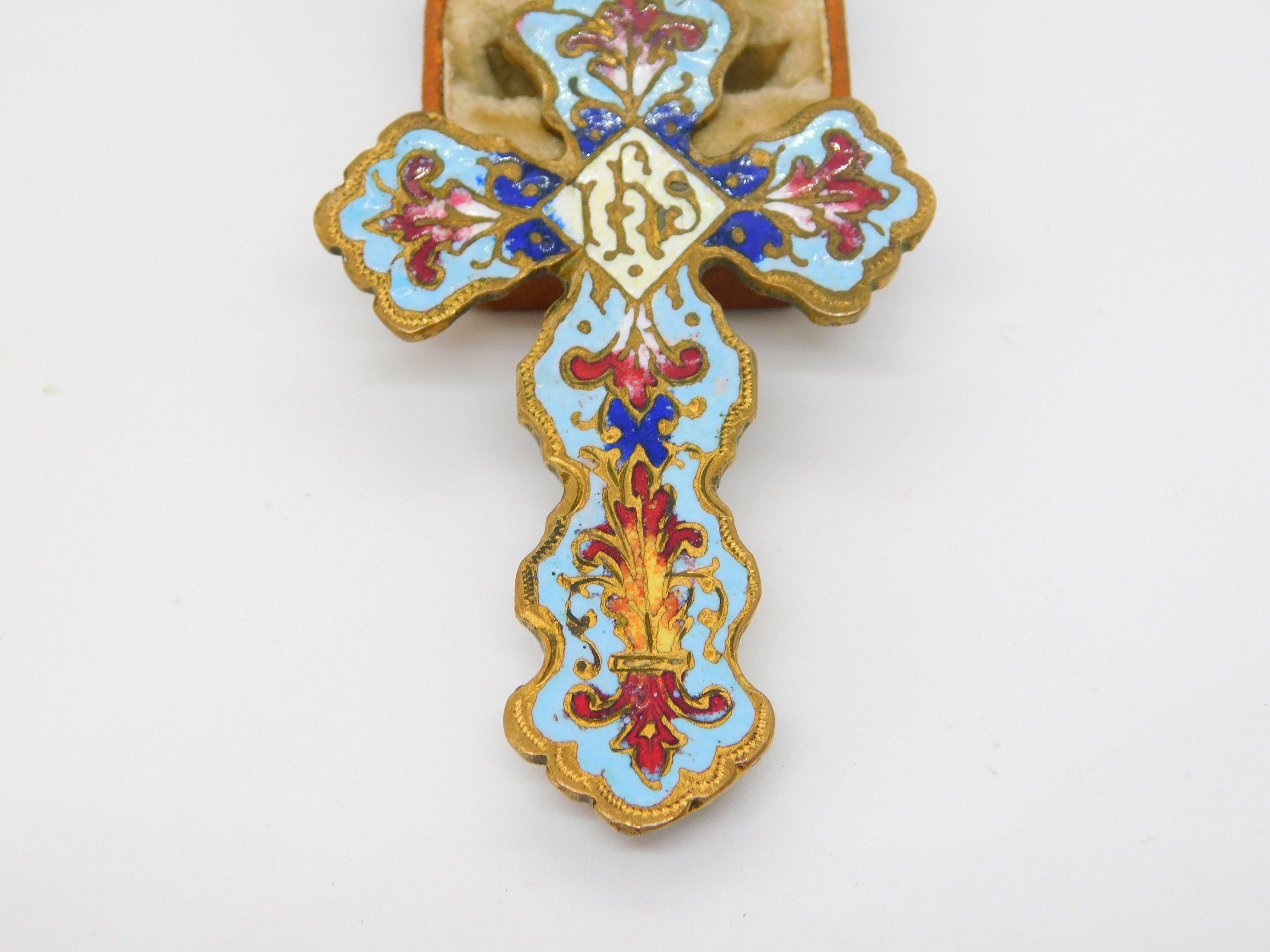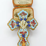 Victorian Gilt Metal Colorful Enamel 'IHS' Religious Cross Finial Antique c1860