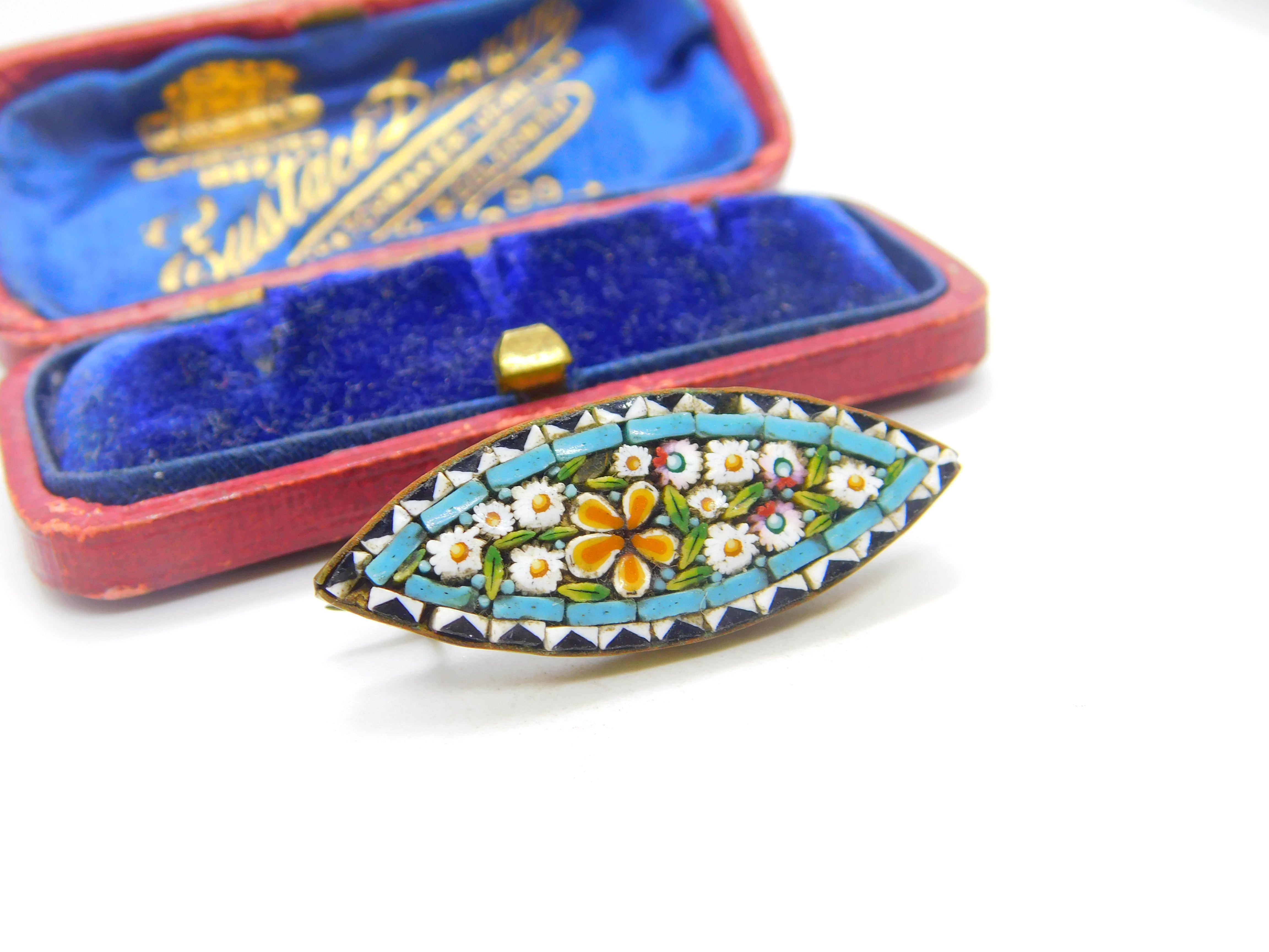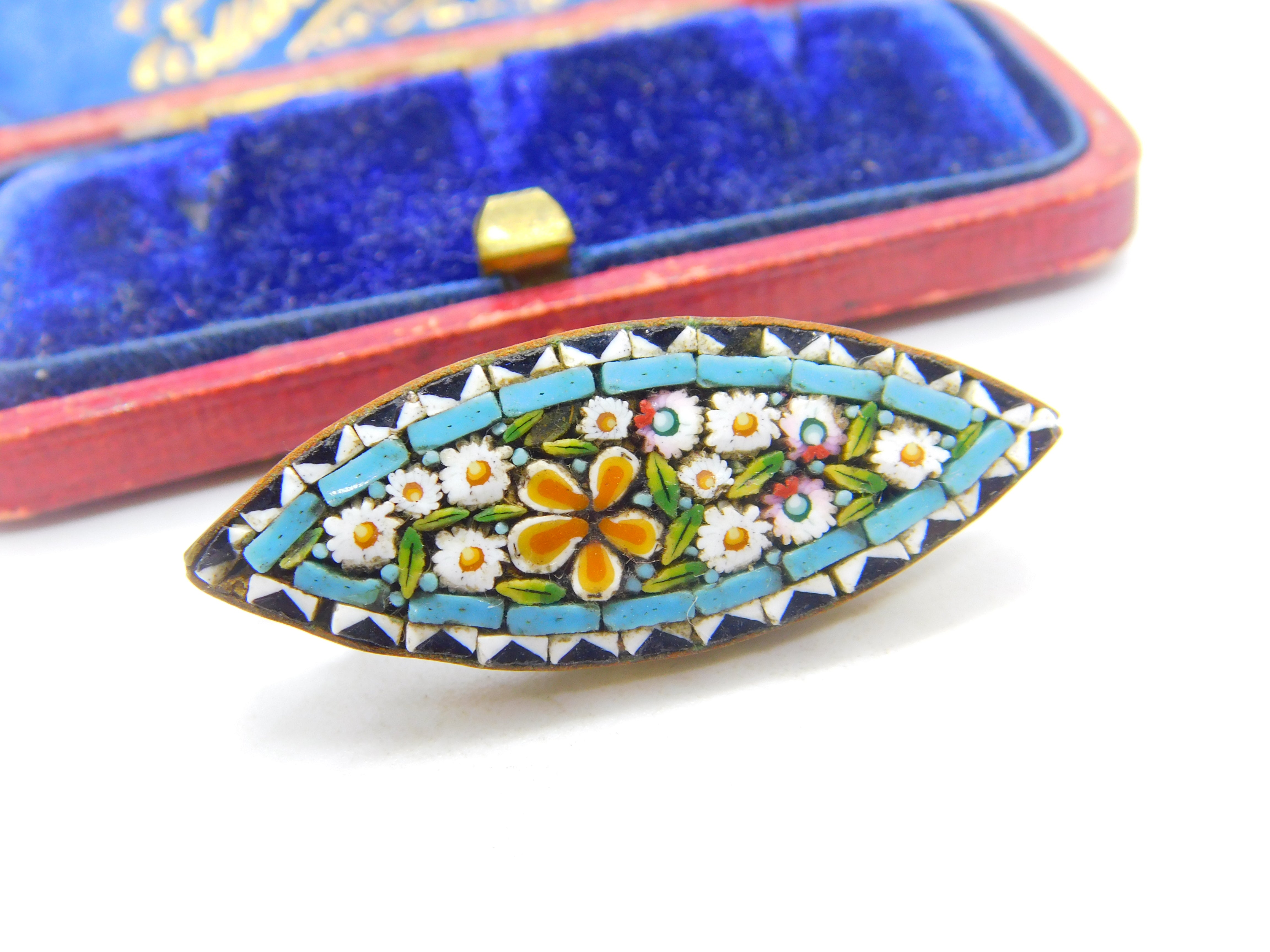 Details: A fantastic and wonderfully designed antique Victorian Italian gilt metal and colourful micro-mosaic brooch with lovely detailing c1860. This is a wonderful item that would make a perfect gift or addition to any collection. The BOX pictured is for PRESENTATION ONLY and is NOT included in the listings but used to frame the pictures unless specifically stated otherwise.