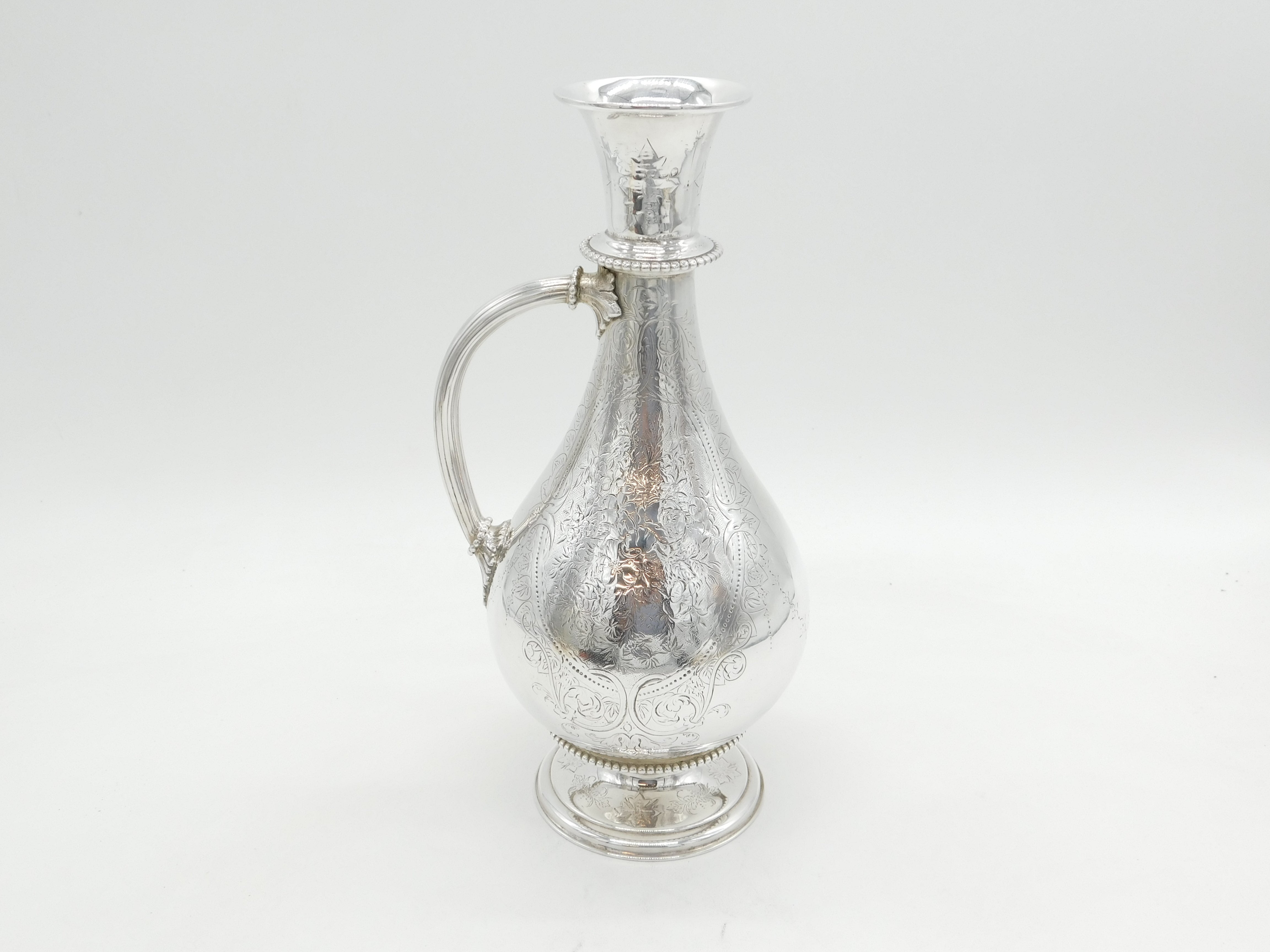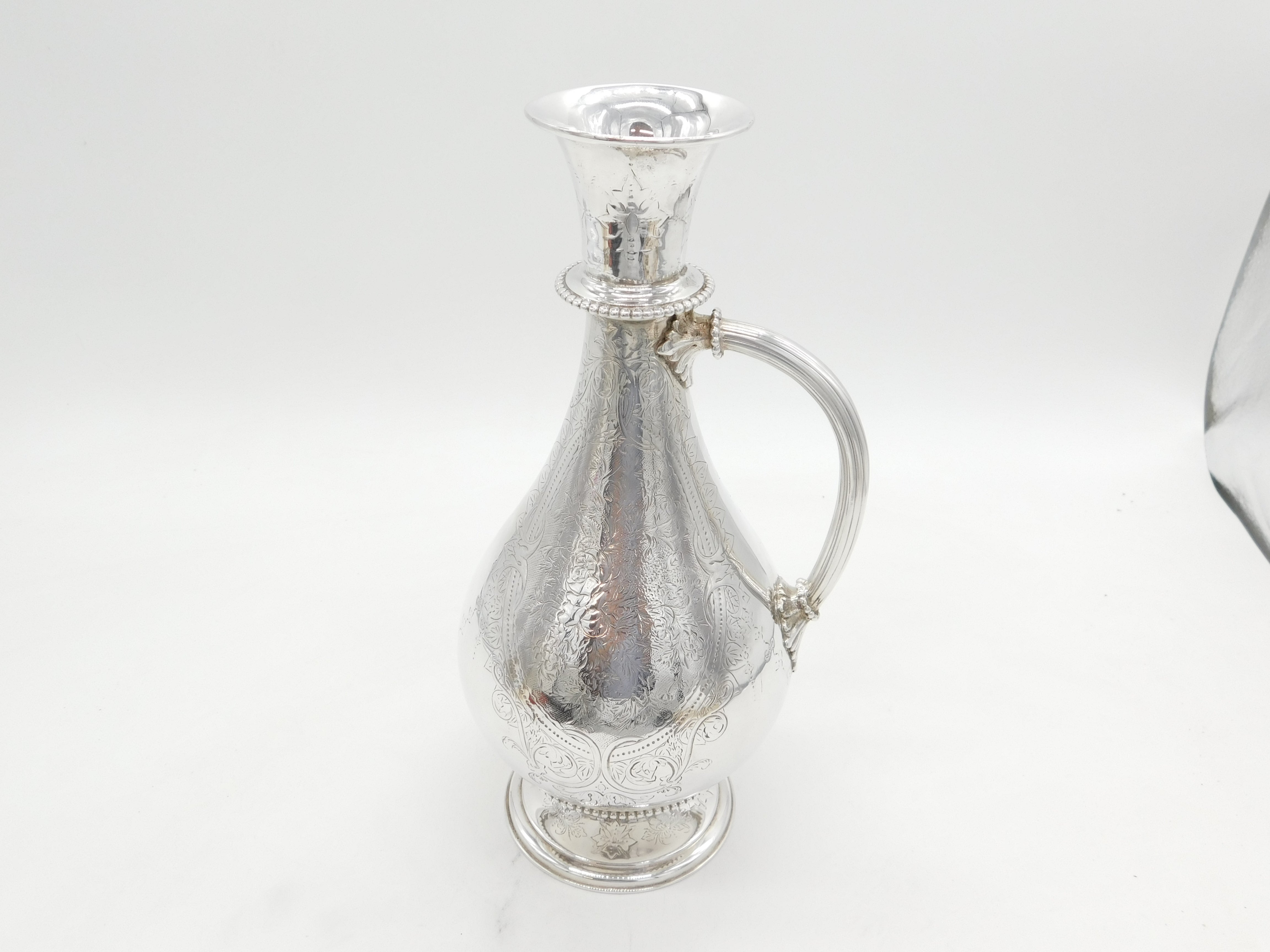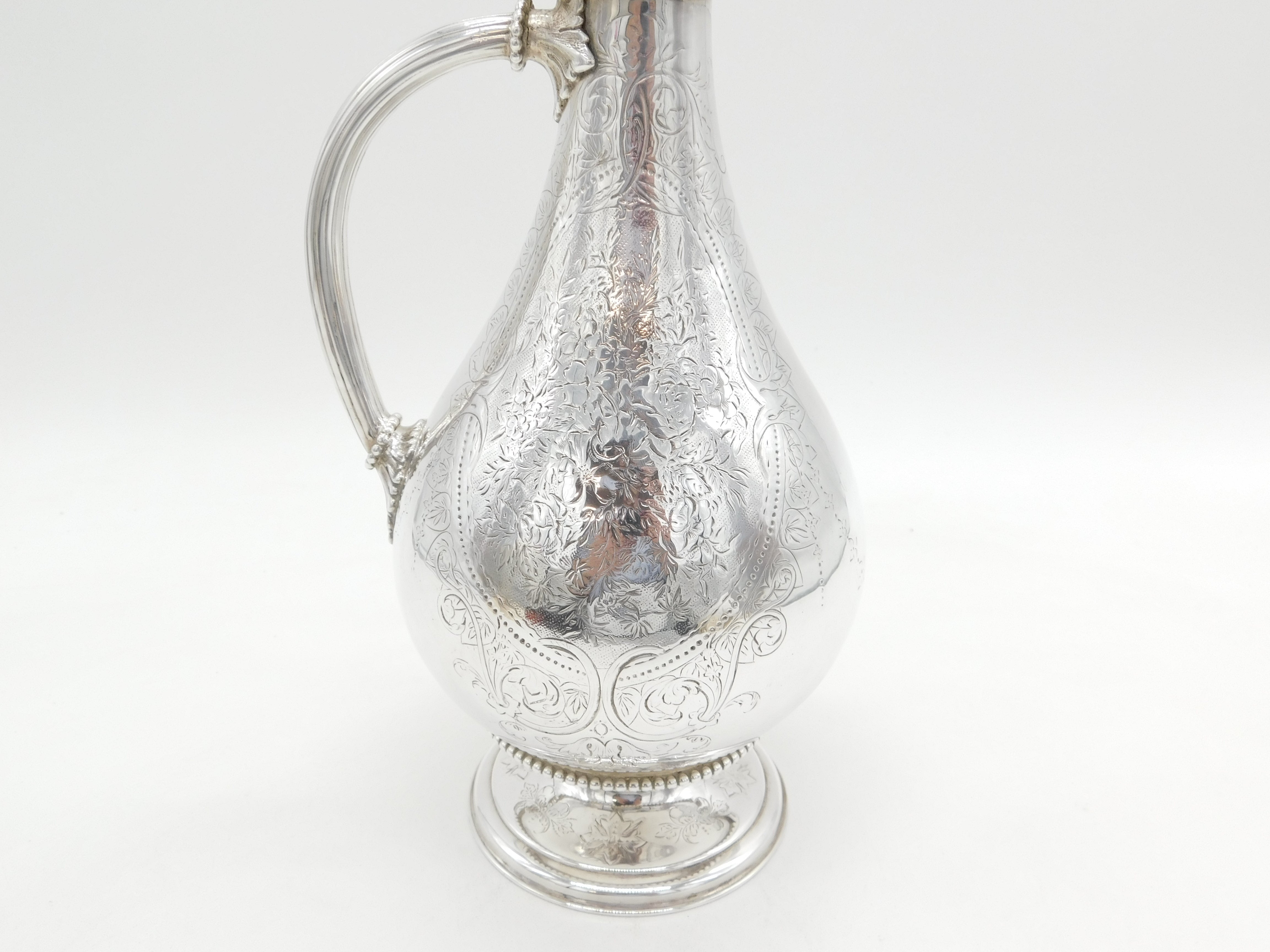 Victorian Large Sterling Silver Floral Decorated Wine Ewer Antique 1861 London