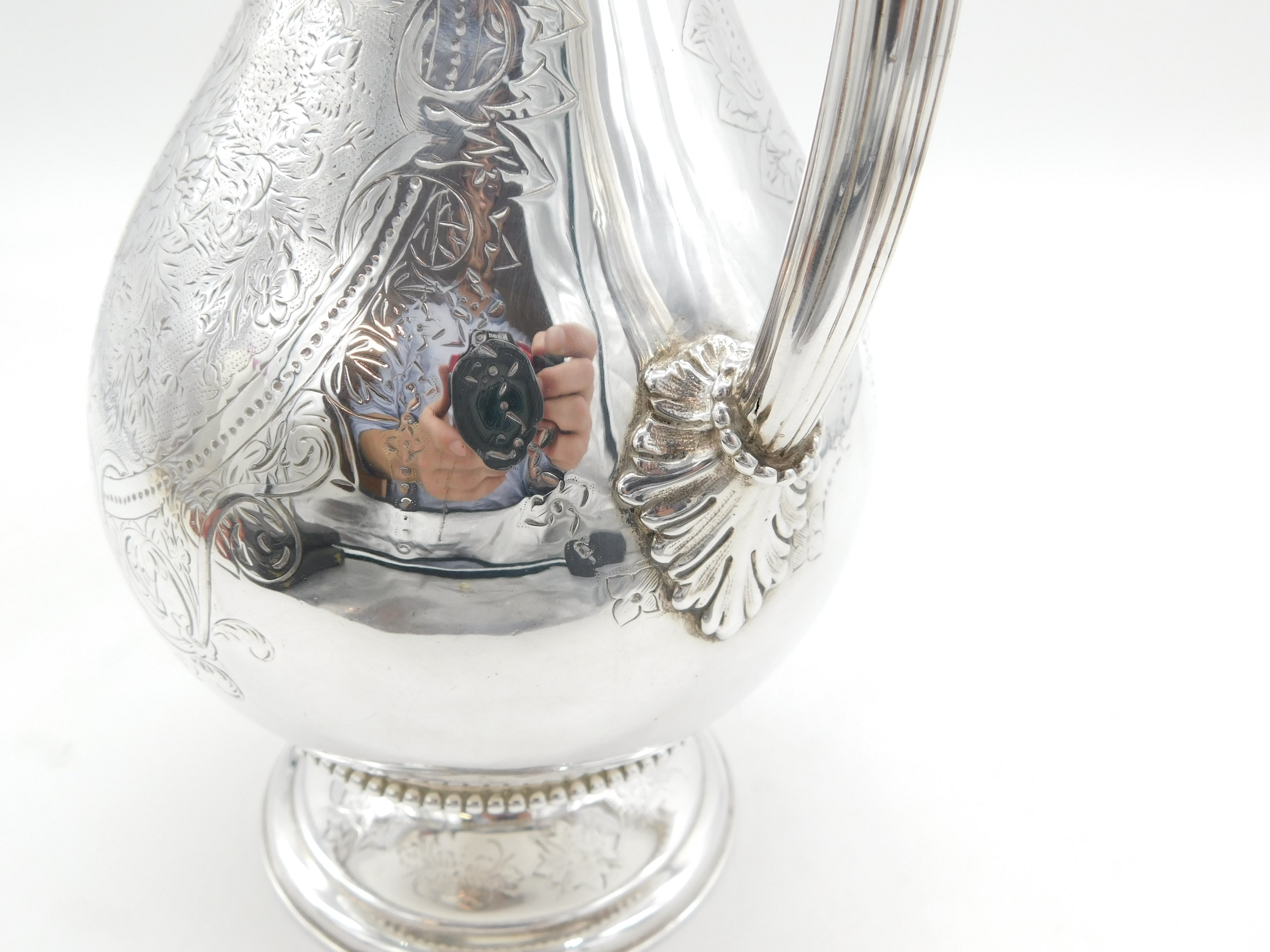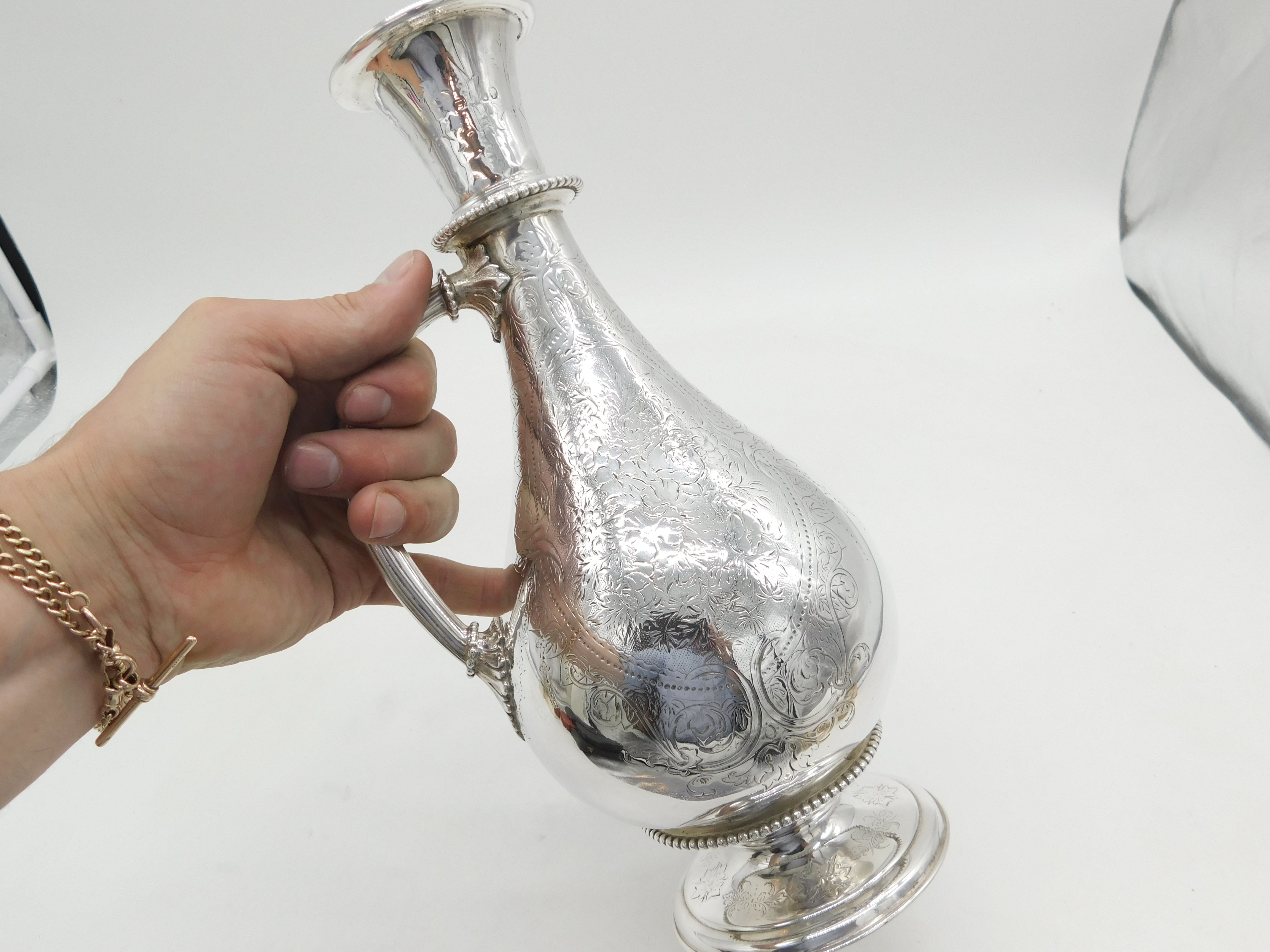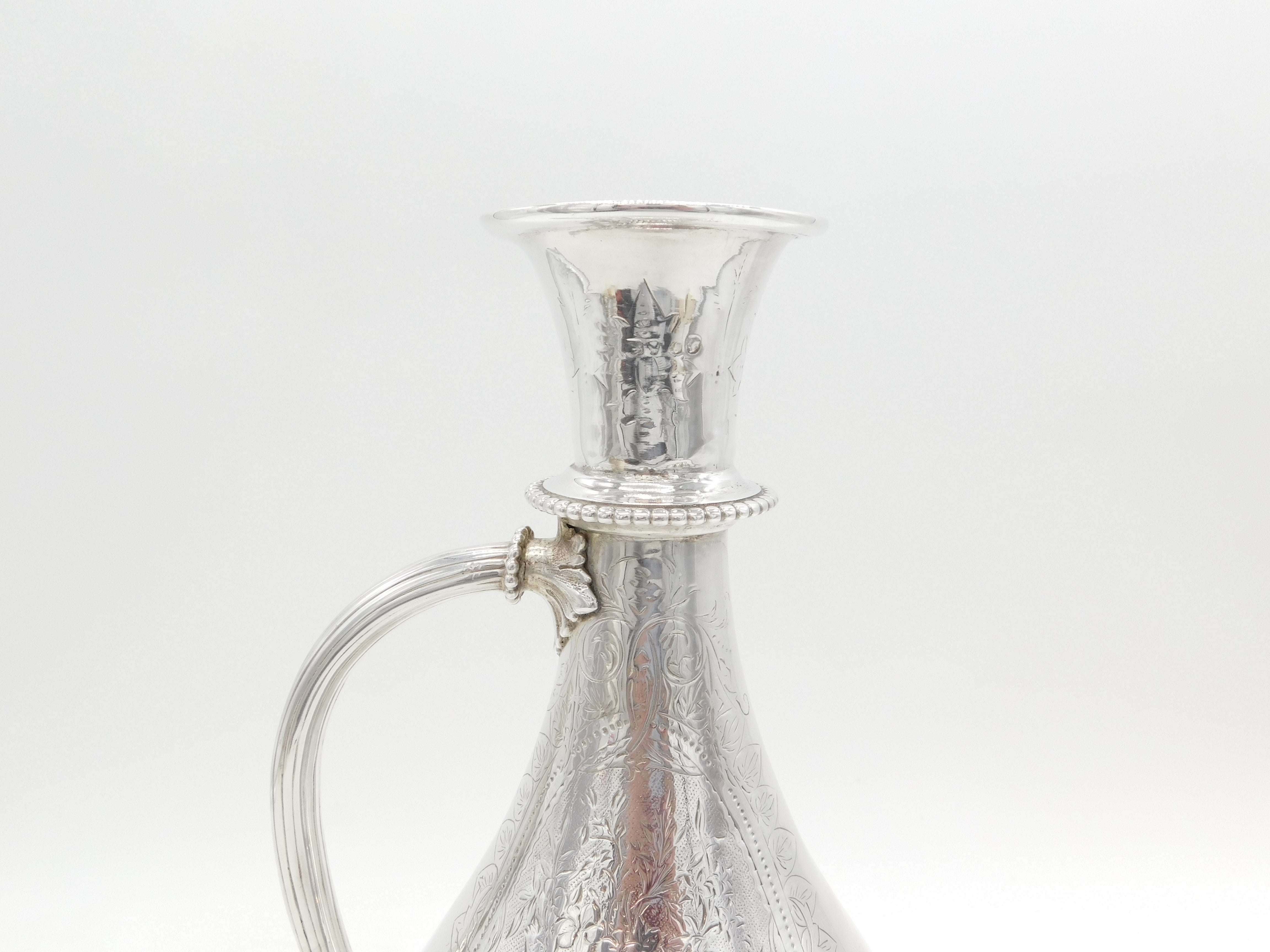 Victorian Large Sterling Silver Floral Decorated Wine Ewer Antique 1861 London