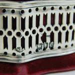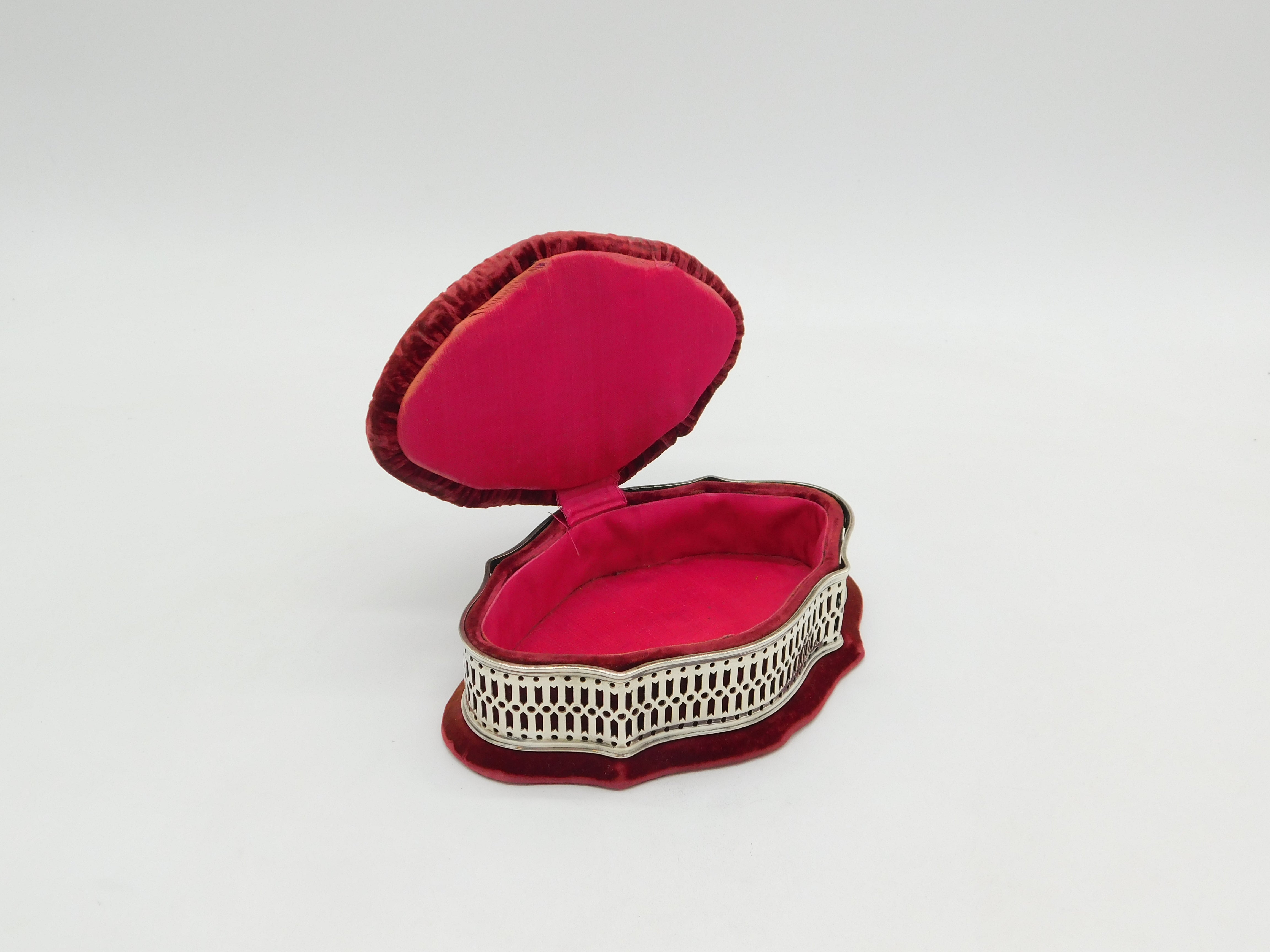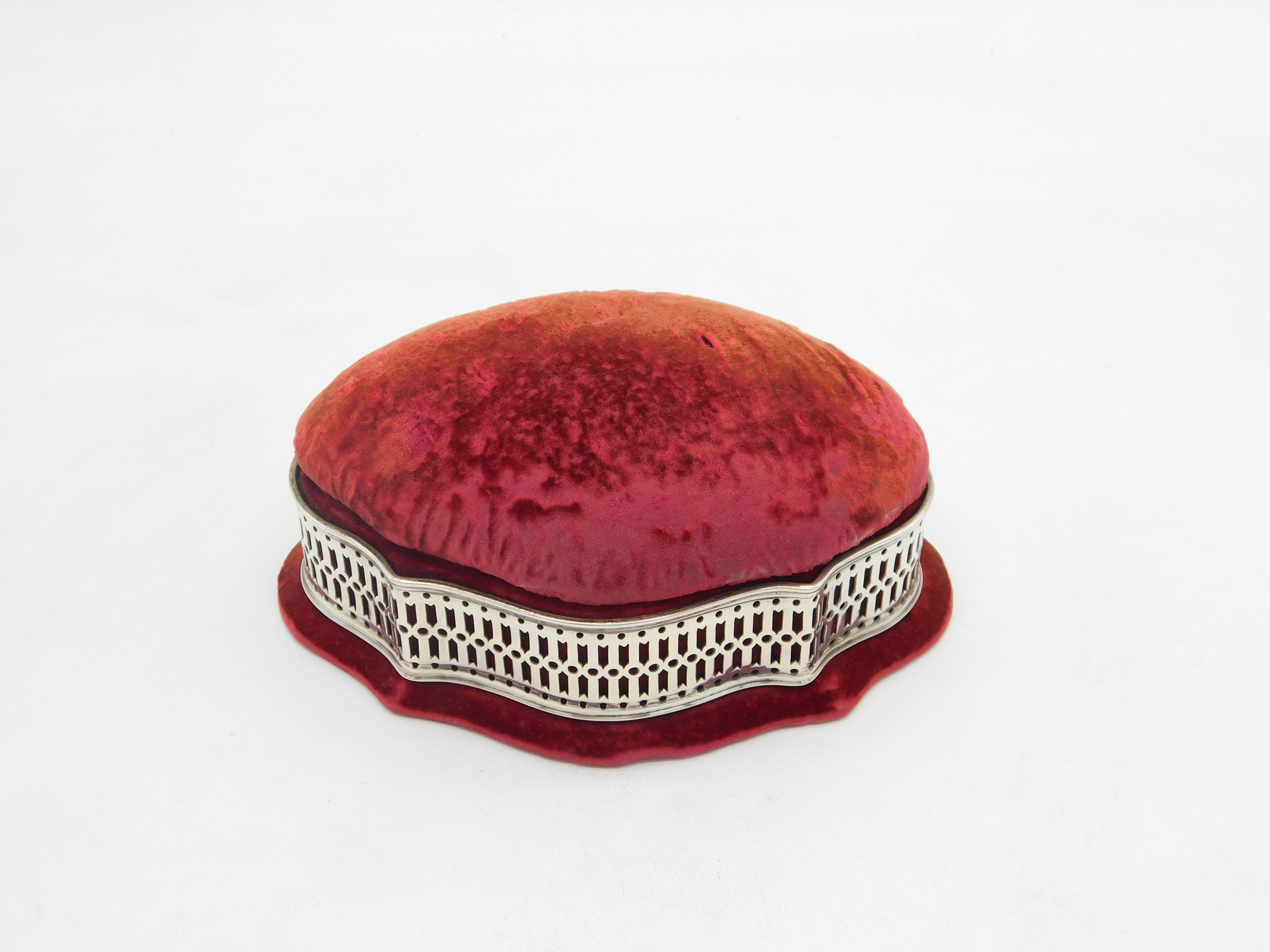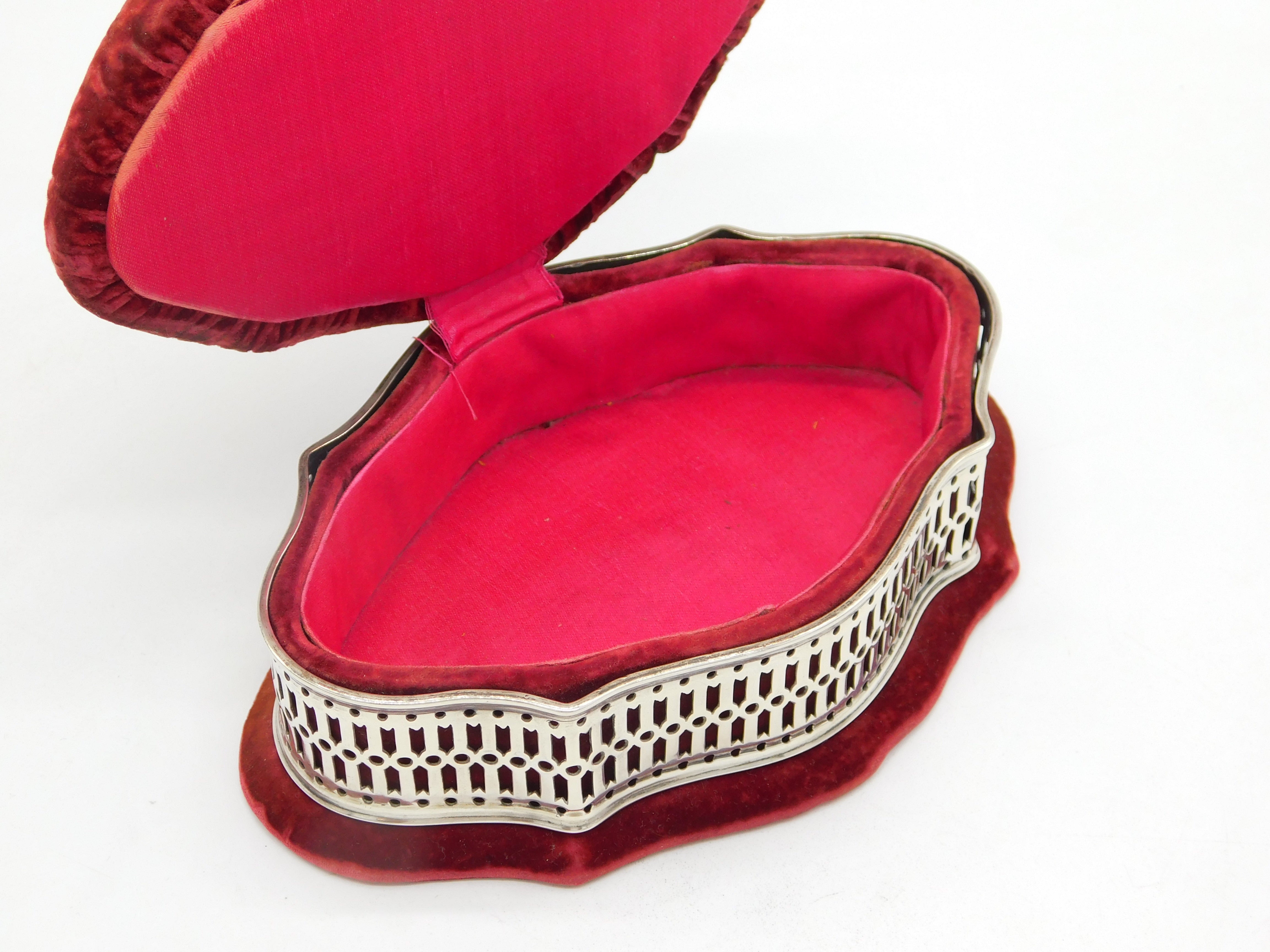 Details: A fantastic and wonderfully designed antique Victorian large sterling silver mounted opening jewellery box with pin cushion to the top and fabric lined interior, hallmarked London 1898 by William Comyns to the bottom edge, minor wearing to the velvet of the cushion on the top please note. This is a wonderful item that would make a perfect gift or addition to any collection.