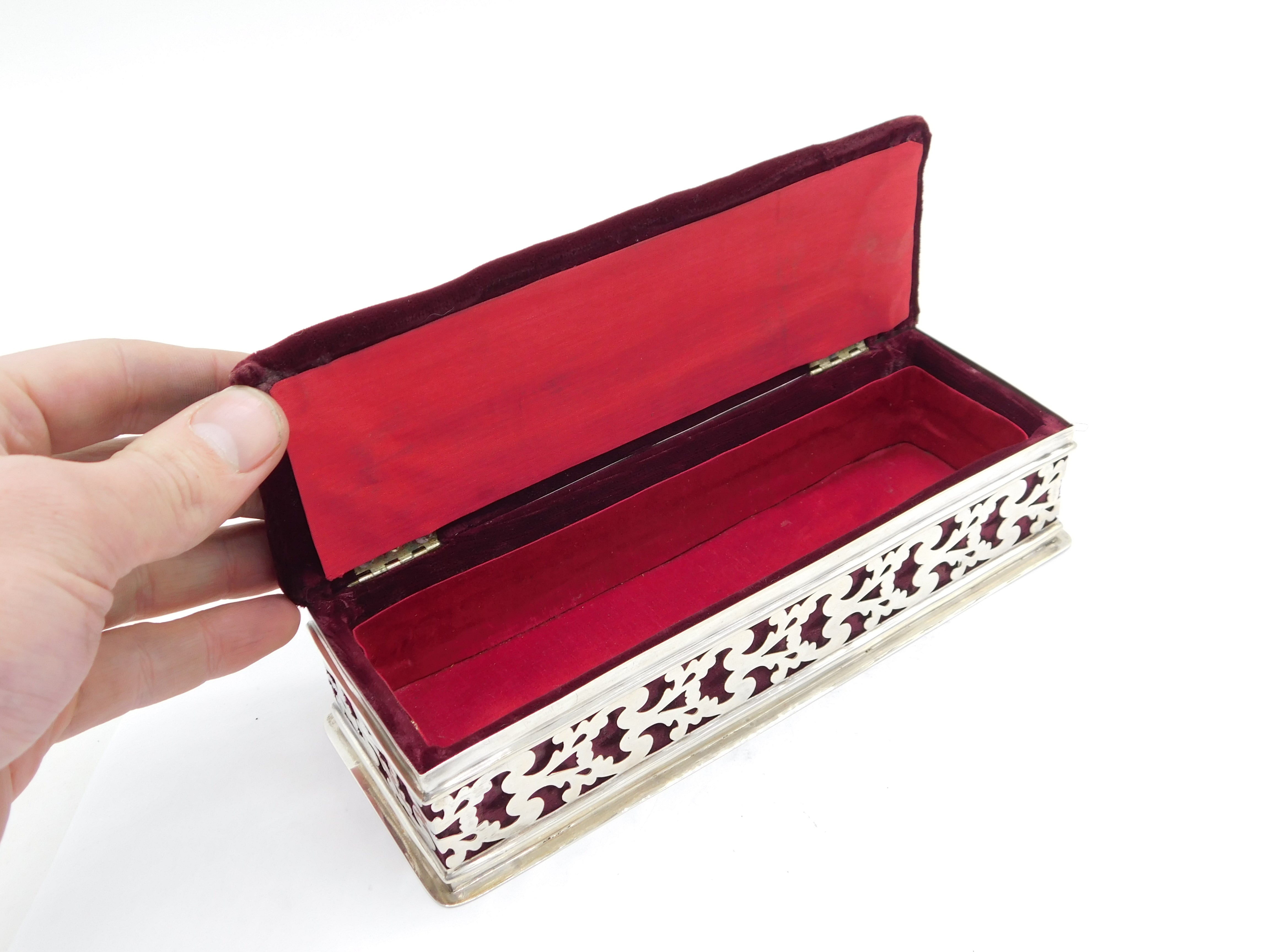 Victorian Large Sterling Silver Velvet Lined Jewellery Box Antique 1896 London