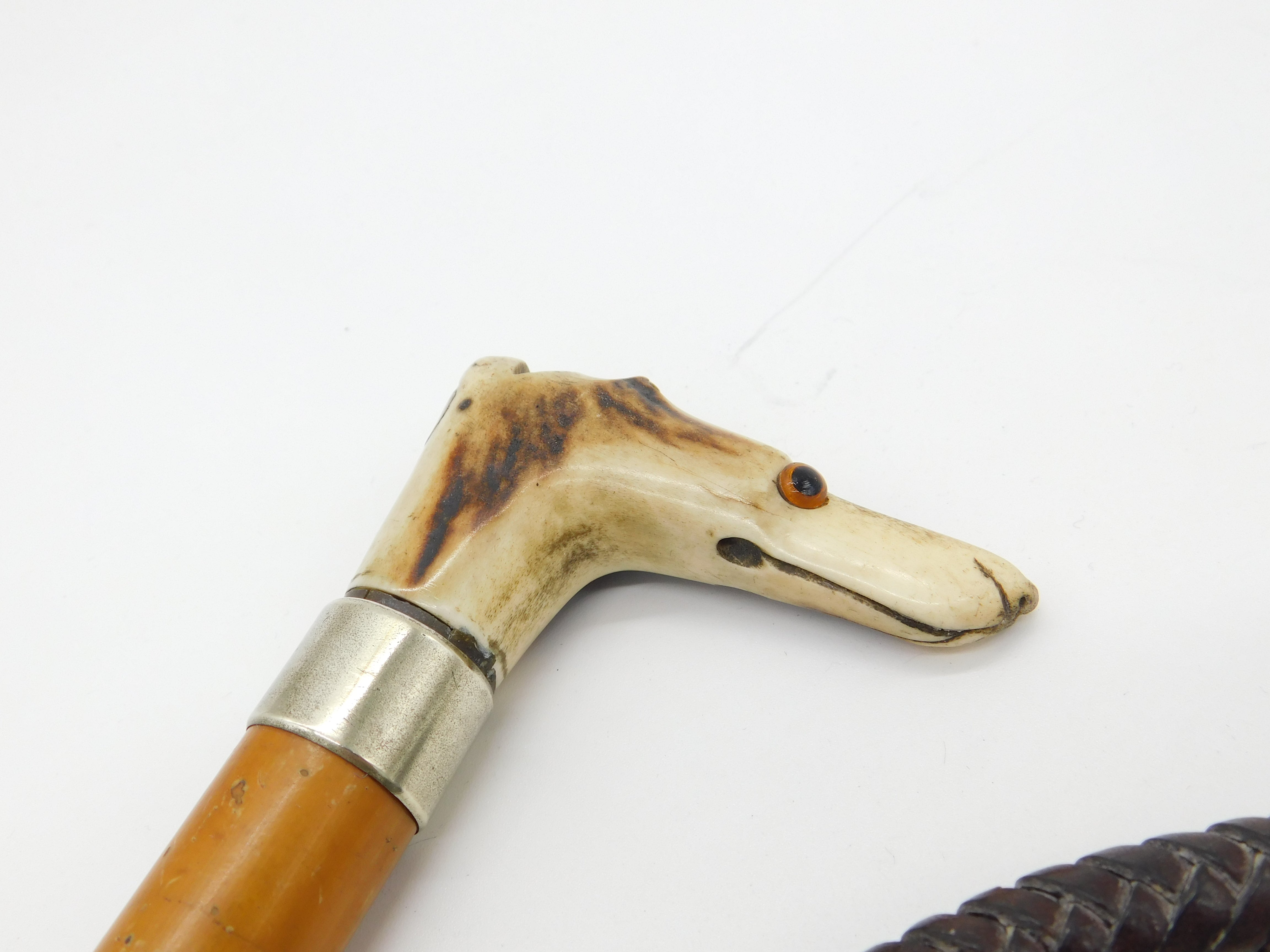 Victorian Leather Dog Form Beagling Crop Whip With Dog Whistle Antique c1890