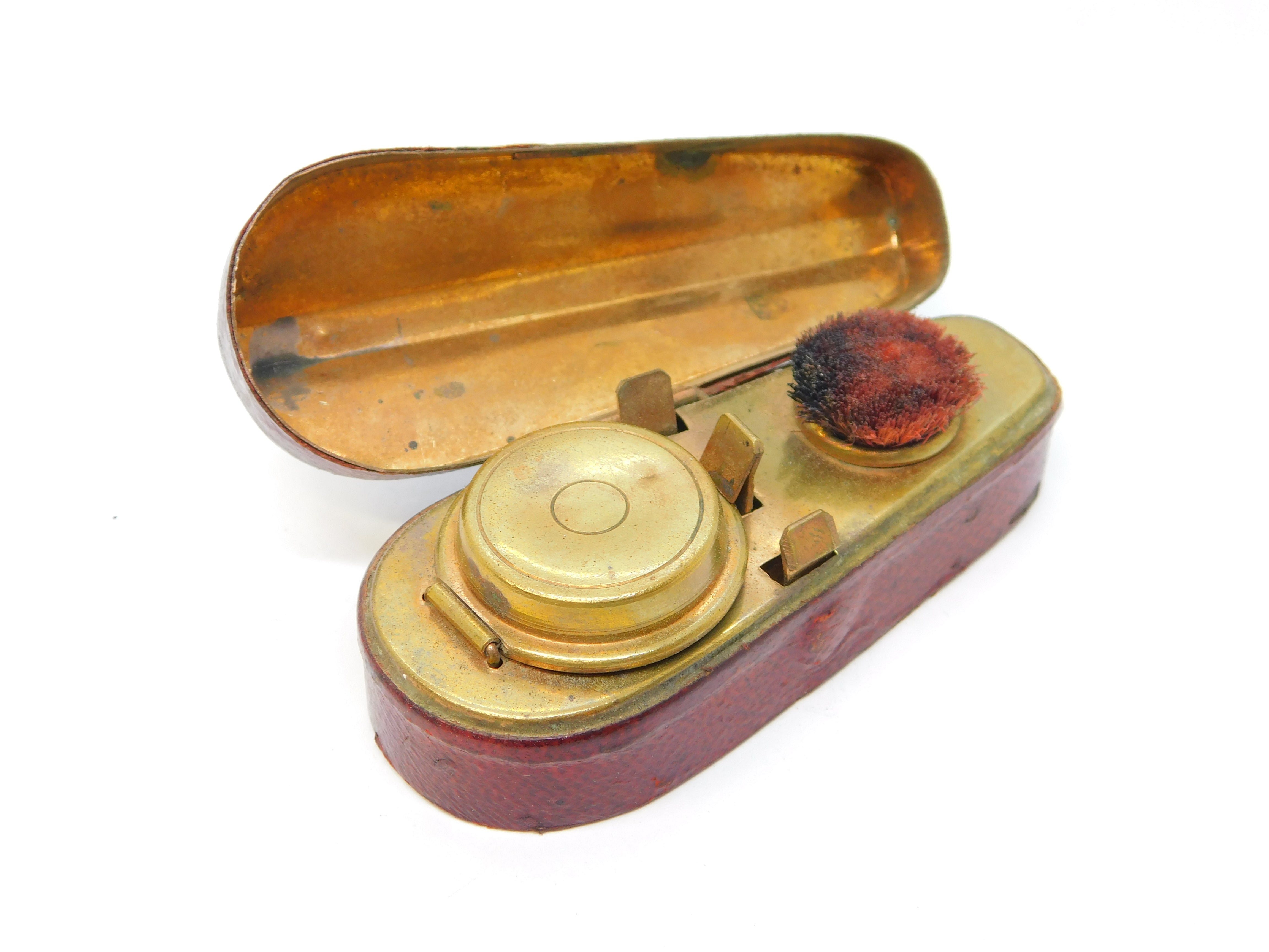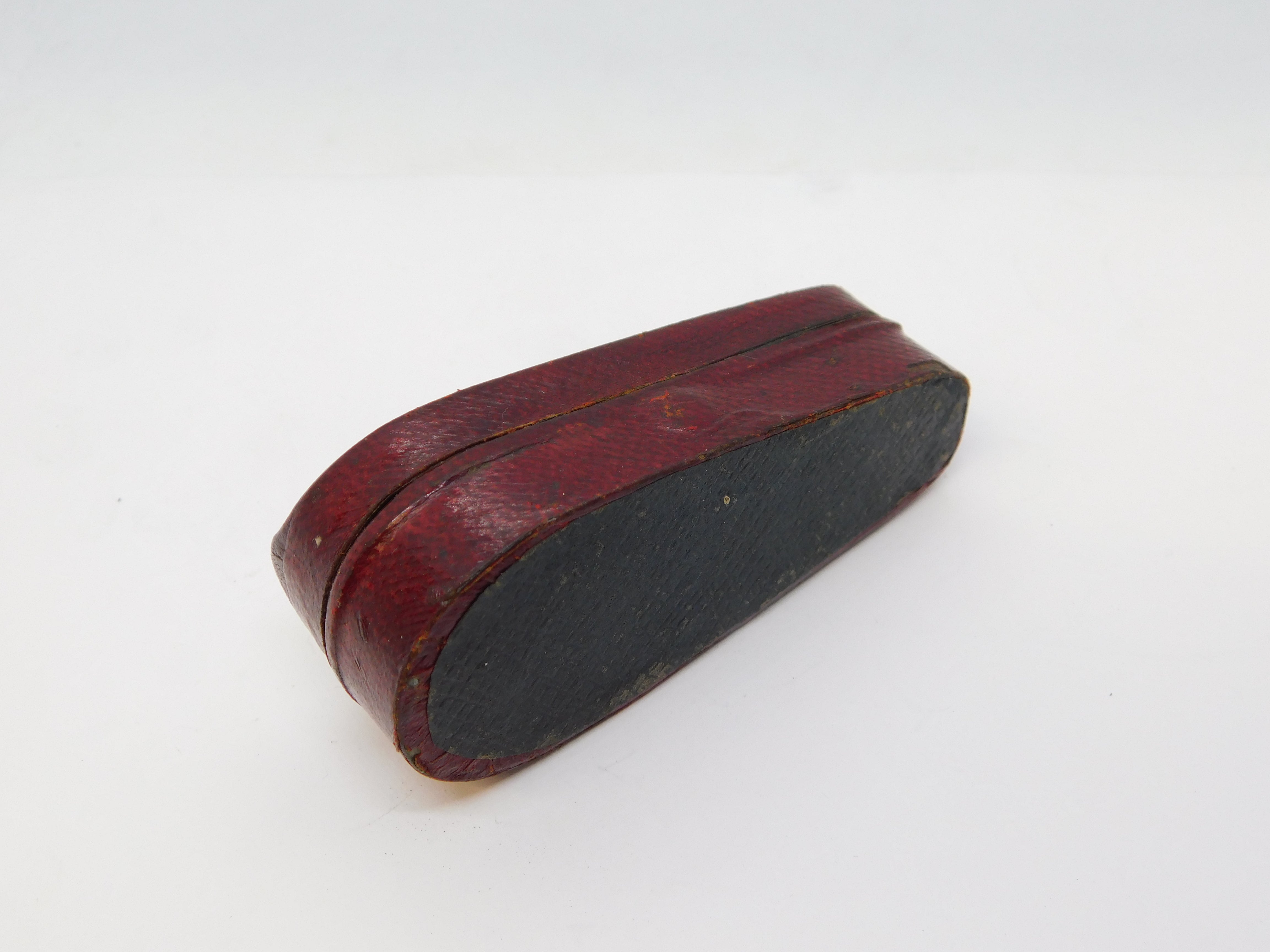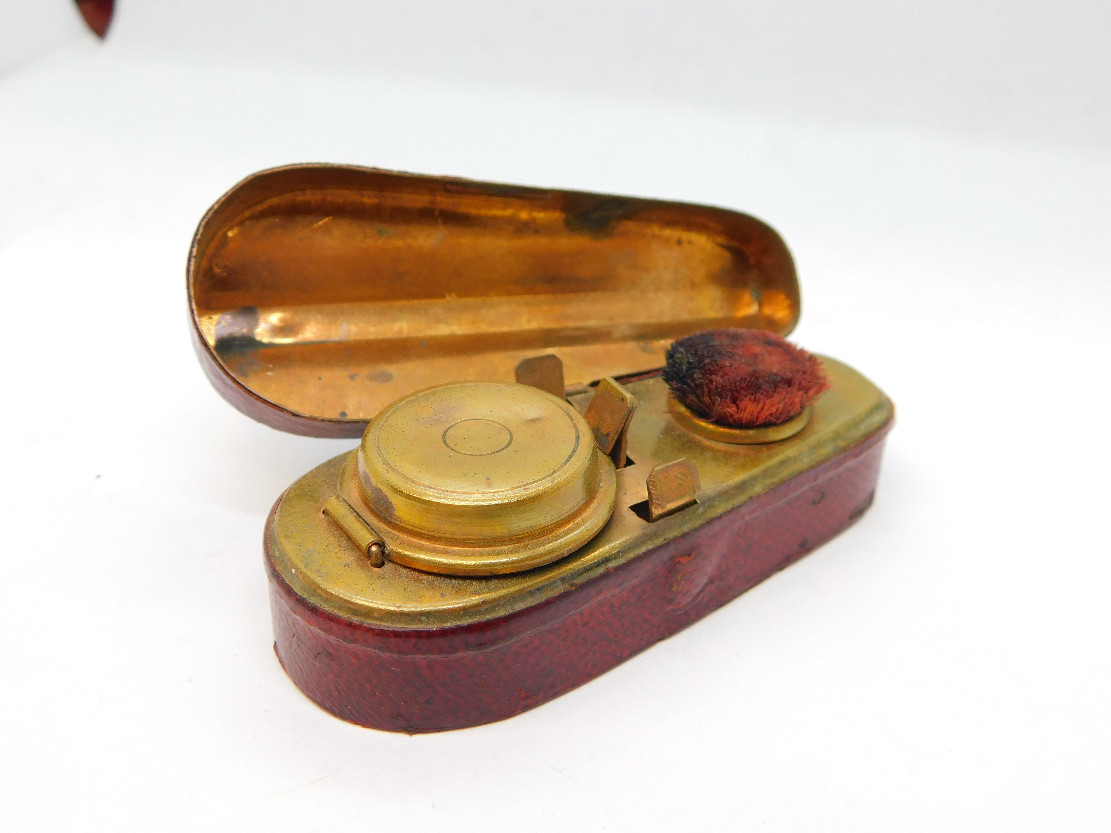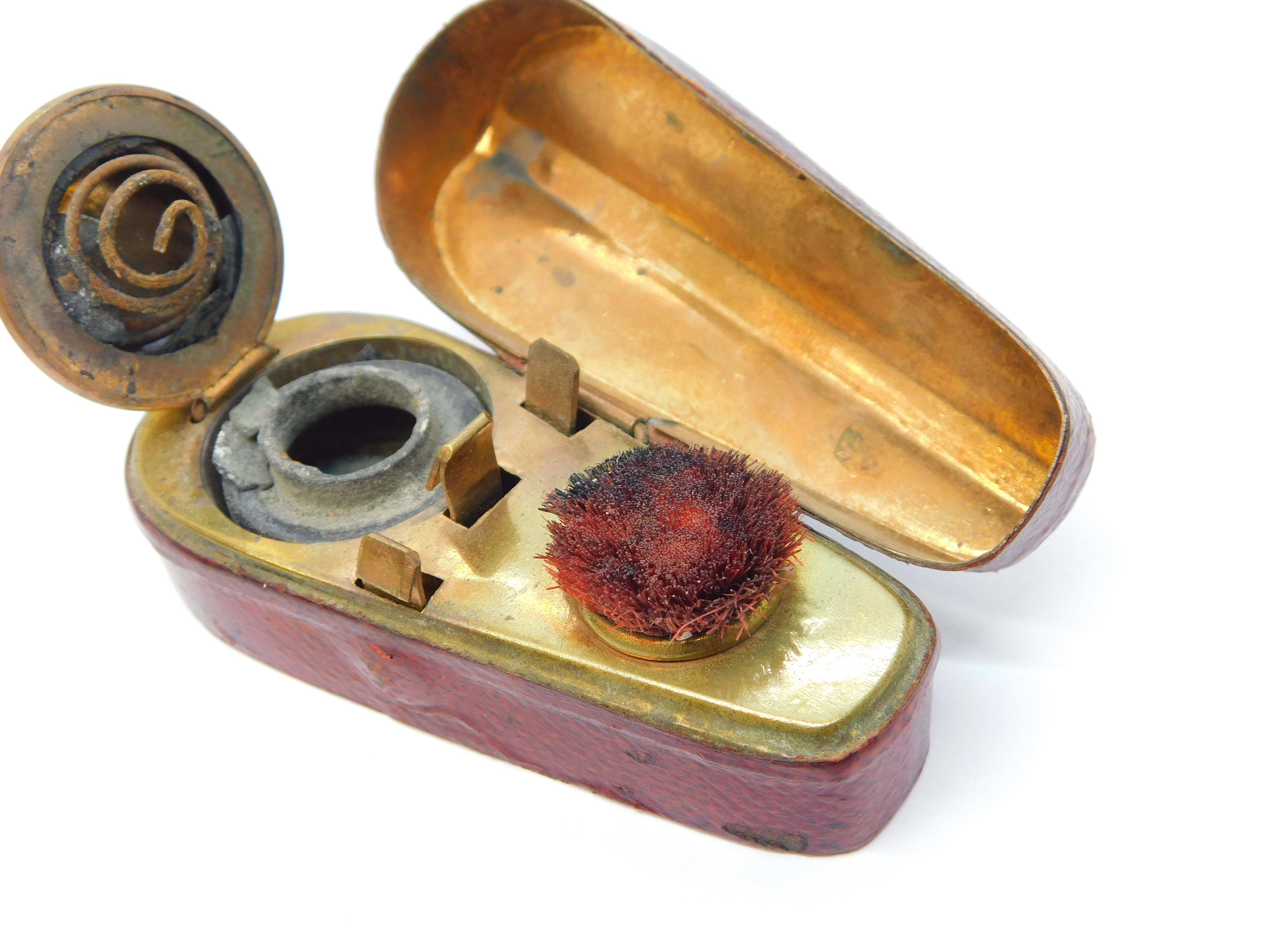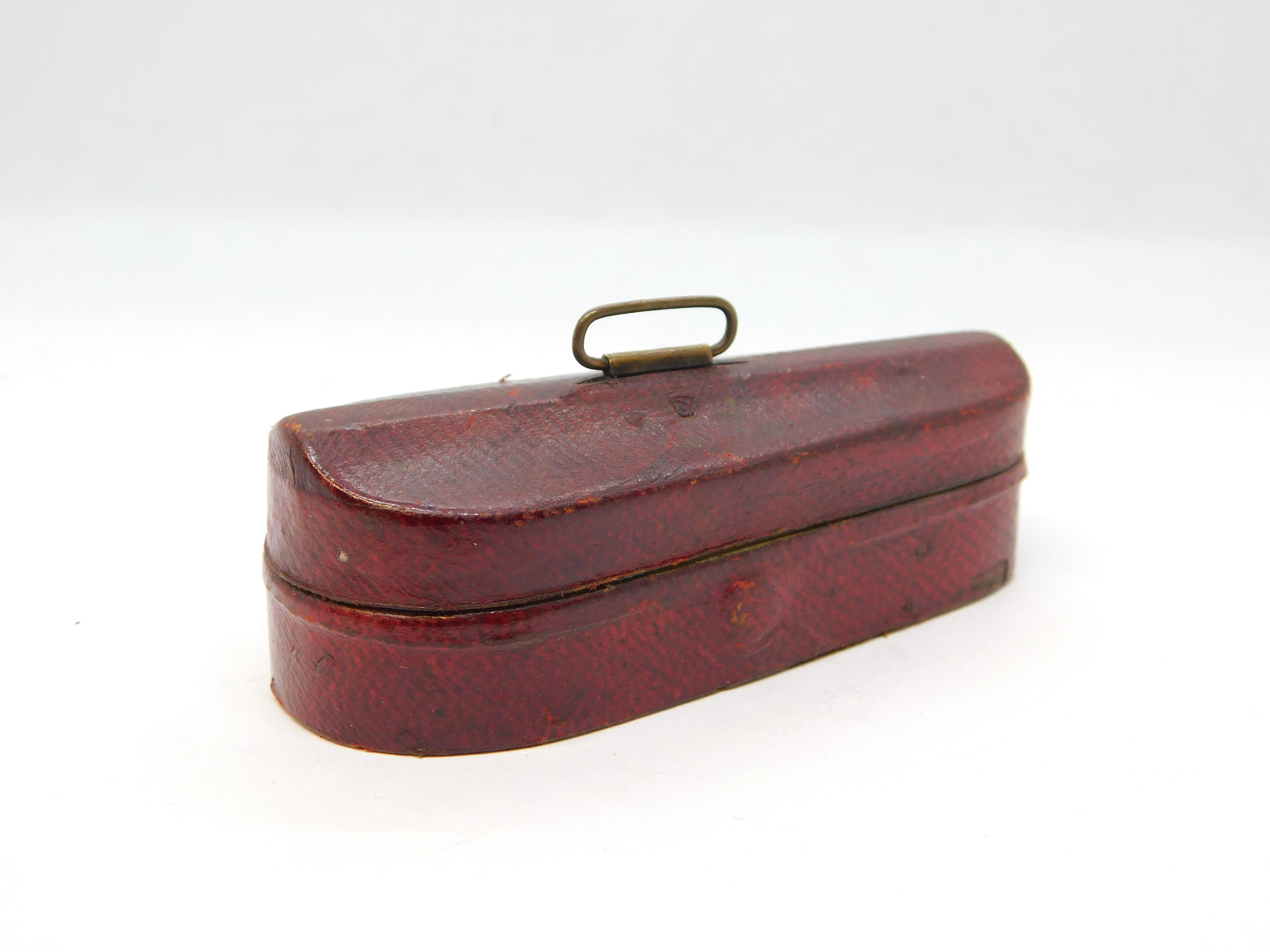 Details: A fantastic and wonderfully designed antique Victorian red tooled leather novelty travelling inkwell in the form of a violin case with superb detailing and condition c1850. This is a wonderful item that would make a perfect gift or addition to any collection. We are more than happy to provide XRF reports for items upon request.