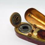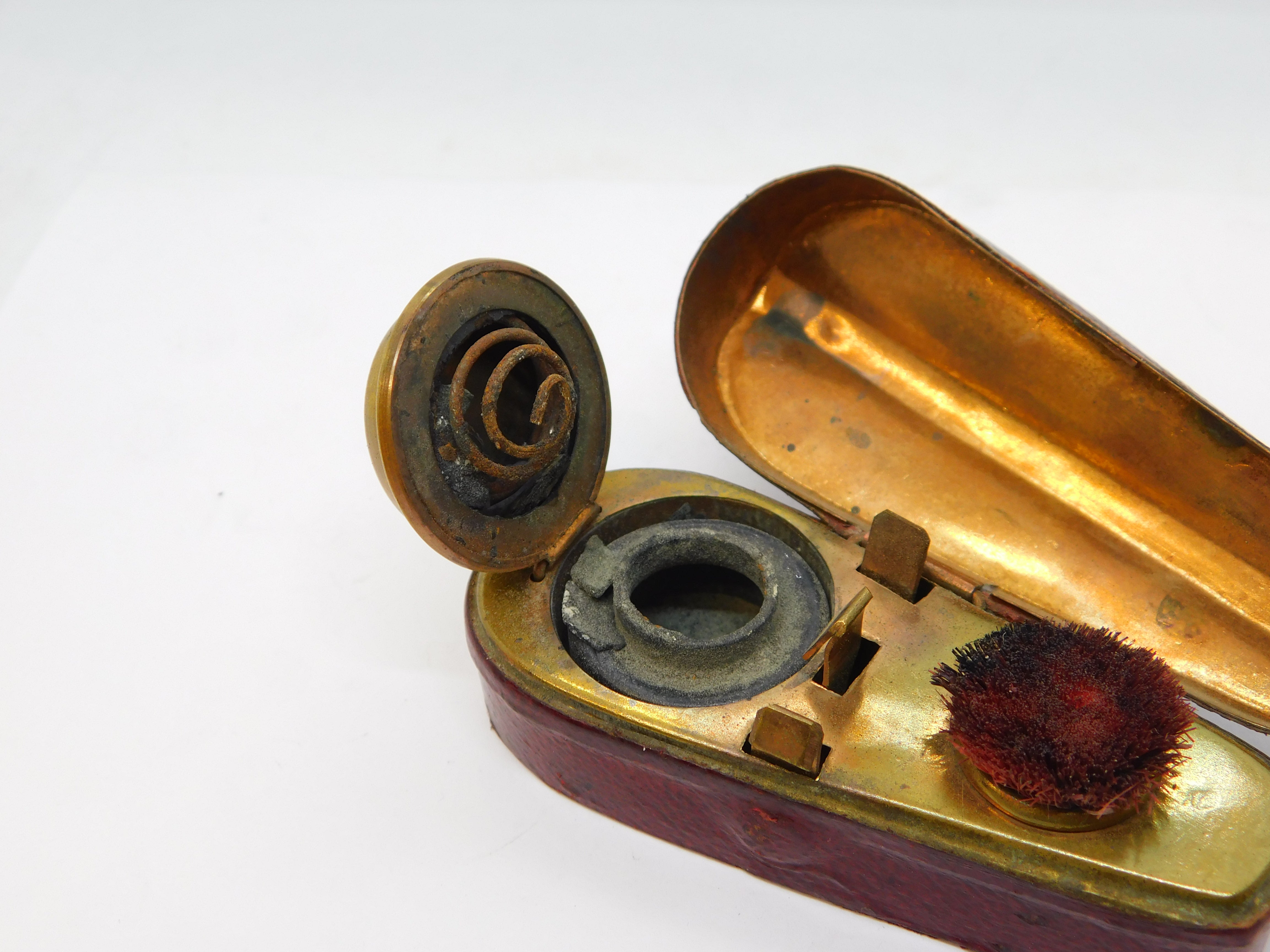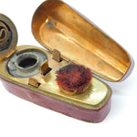 Victorian Novelty Tooled Leather Violin Case Travelling Inkwell Antique c1850