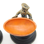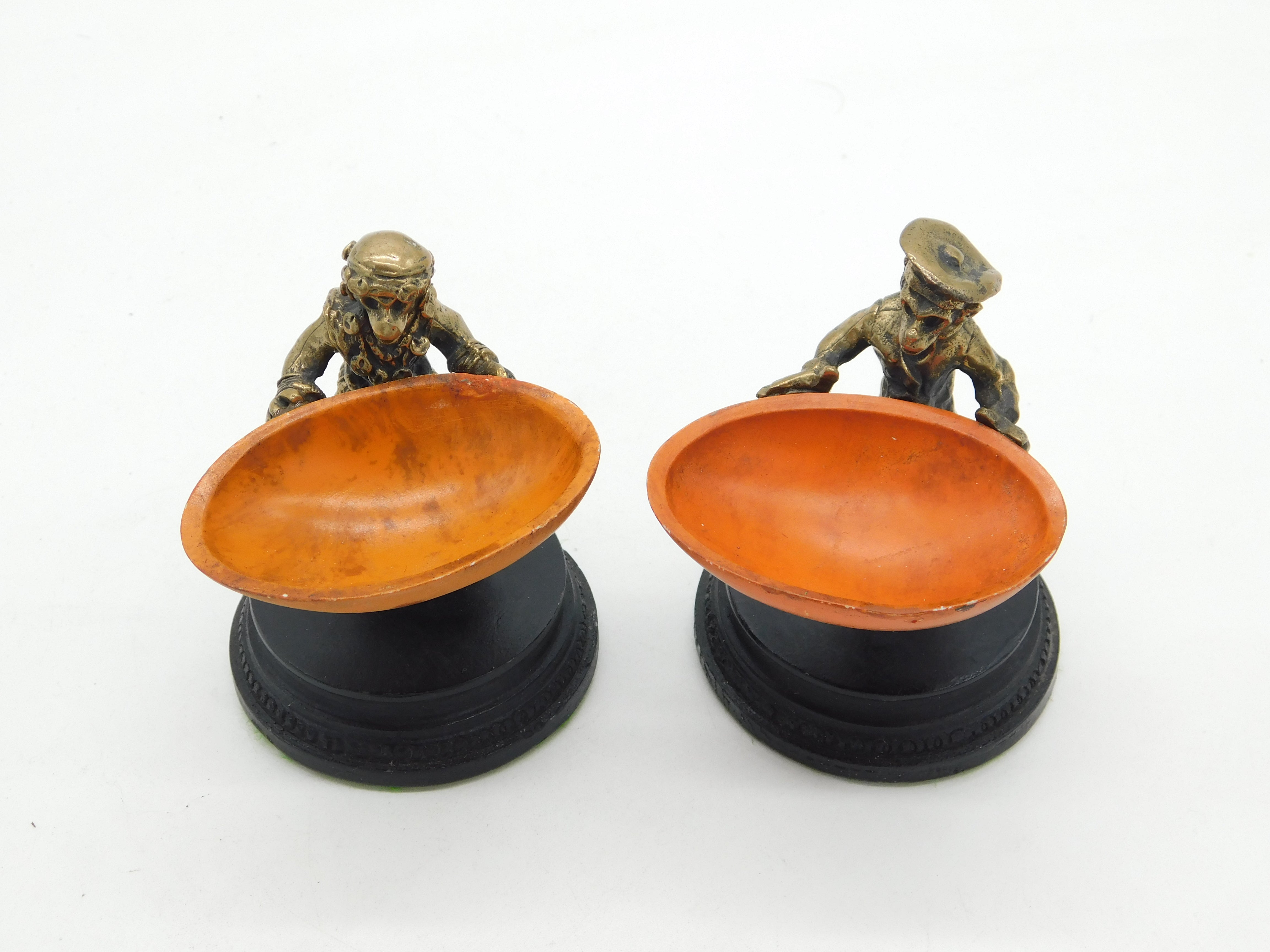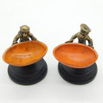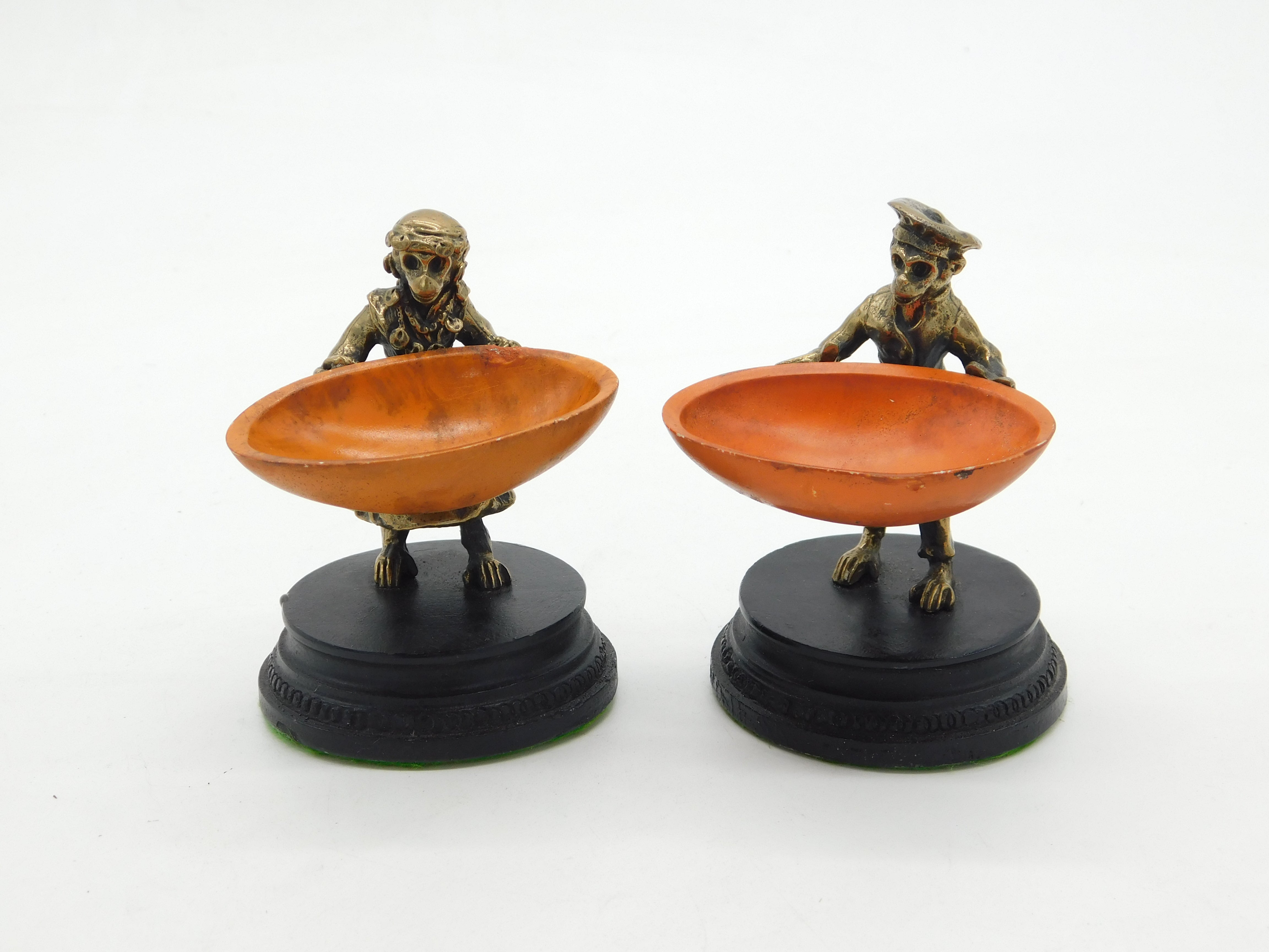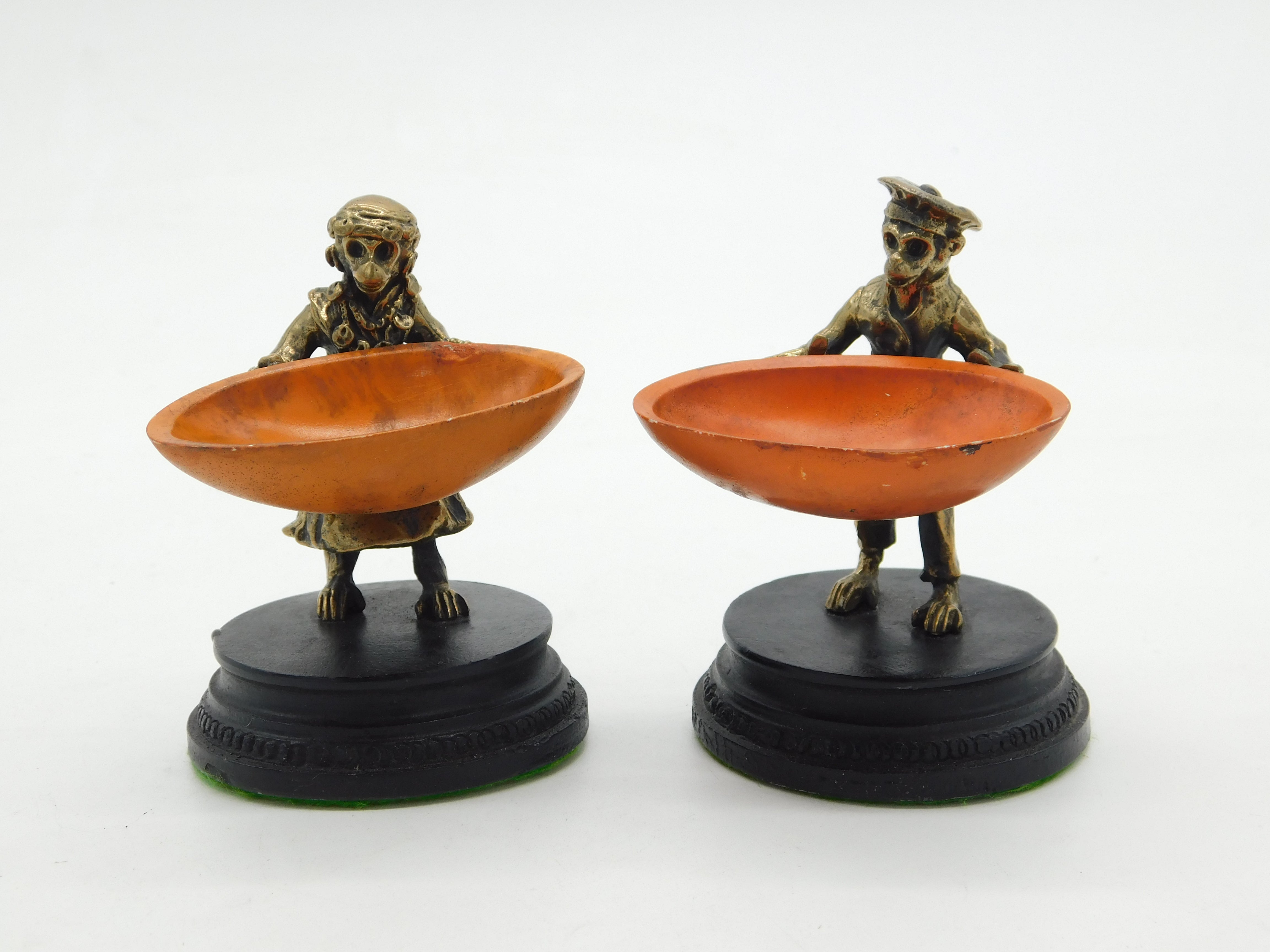 Victorian Pair of Cast Bronze Mr & Mrs Monkey Novelty Salt Cellars Antique c1860