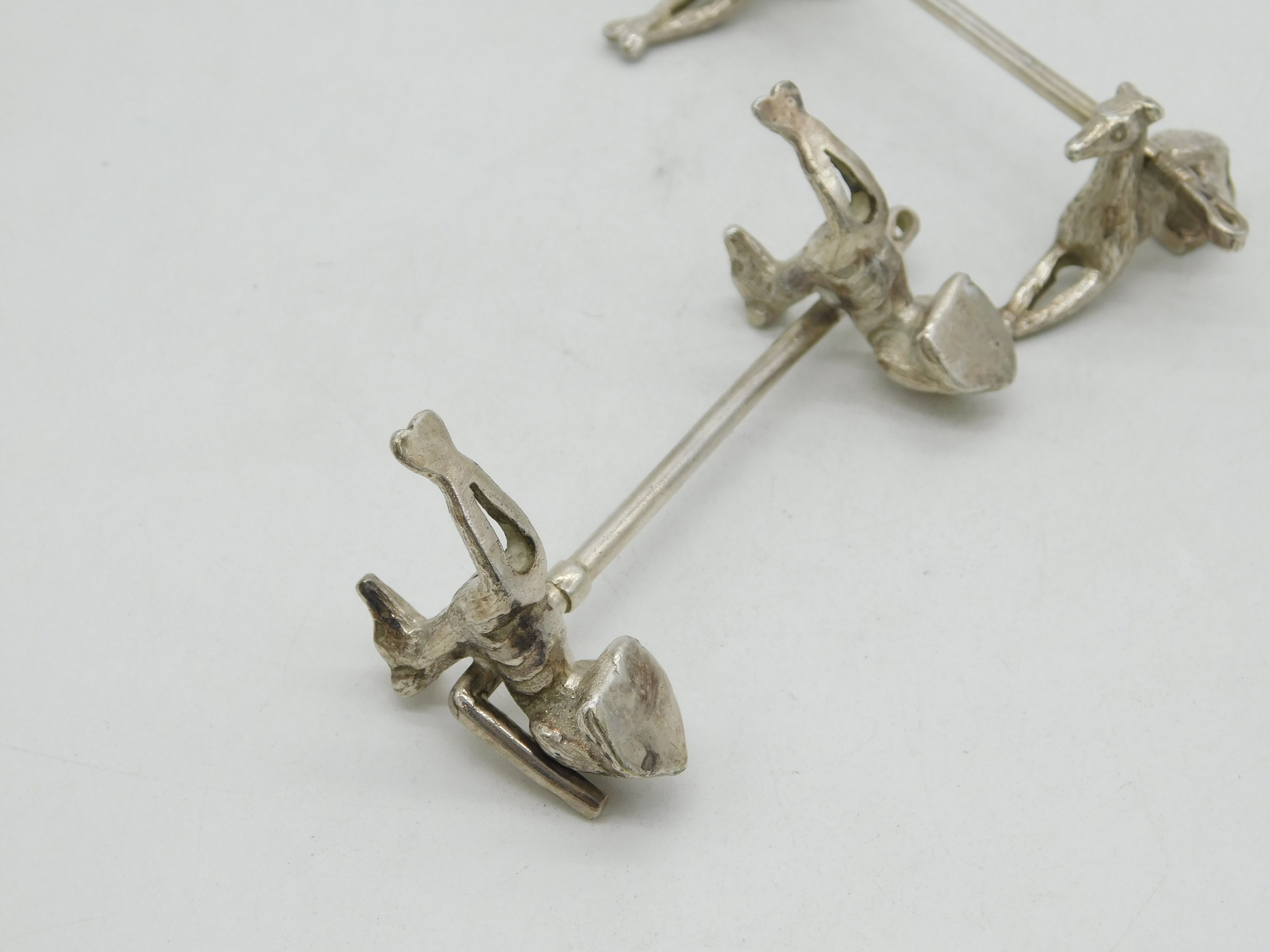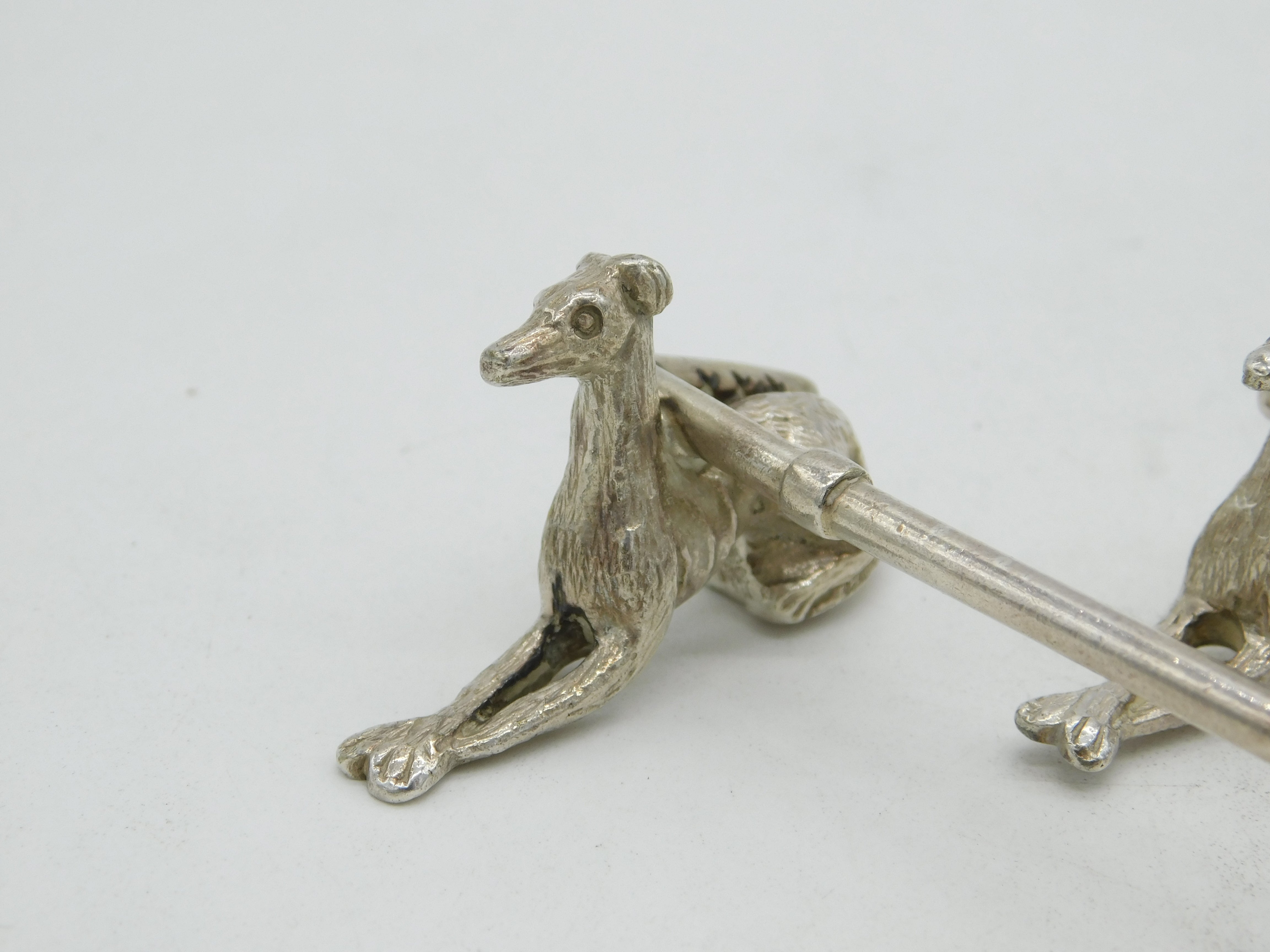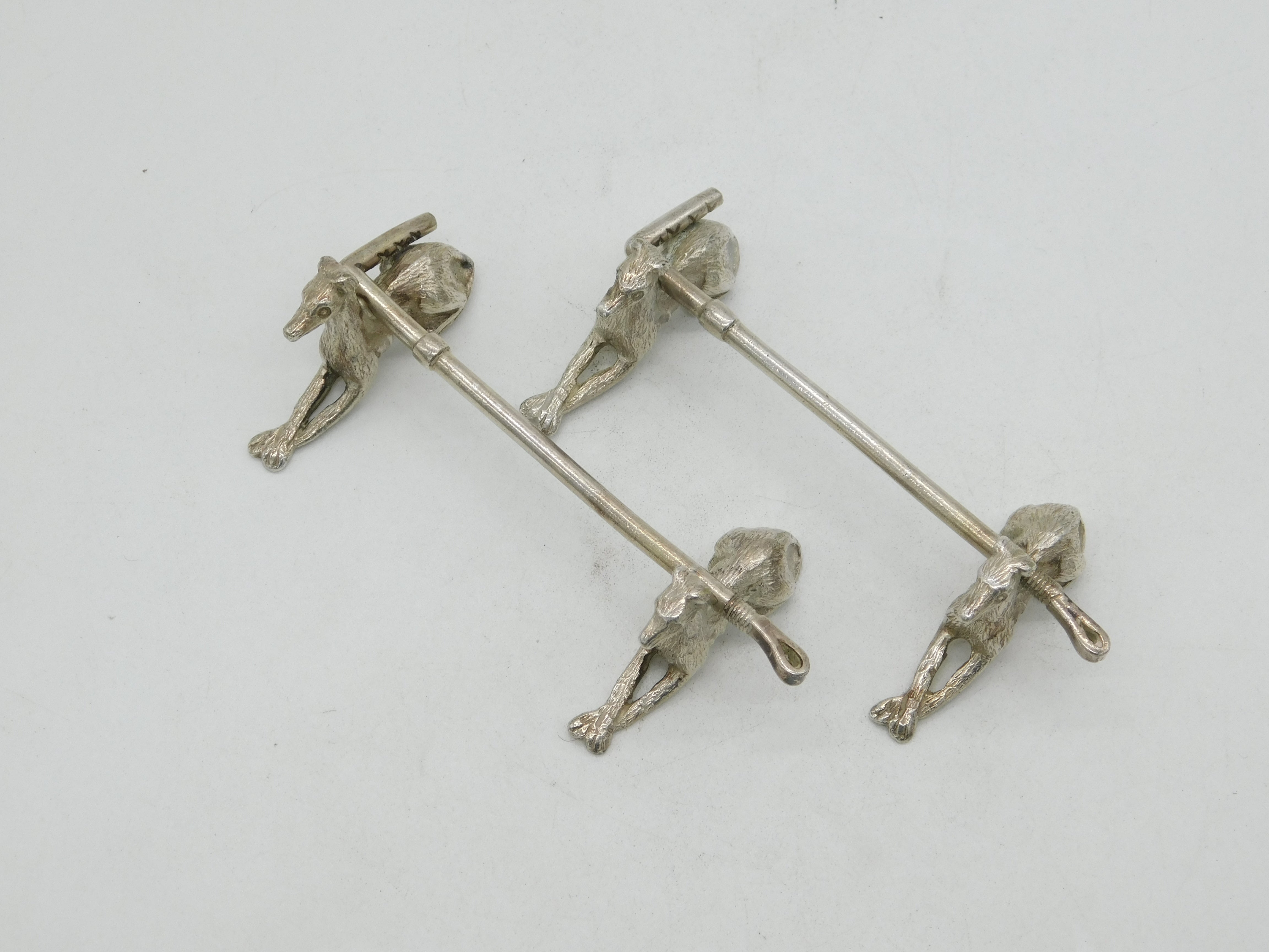 Victorian Pair of Silver Plated Hound & Crop Hunting Knife Rests Antique c1880
